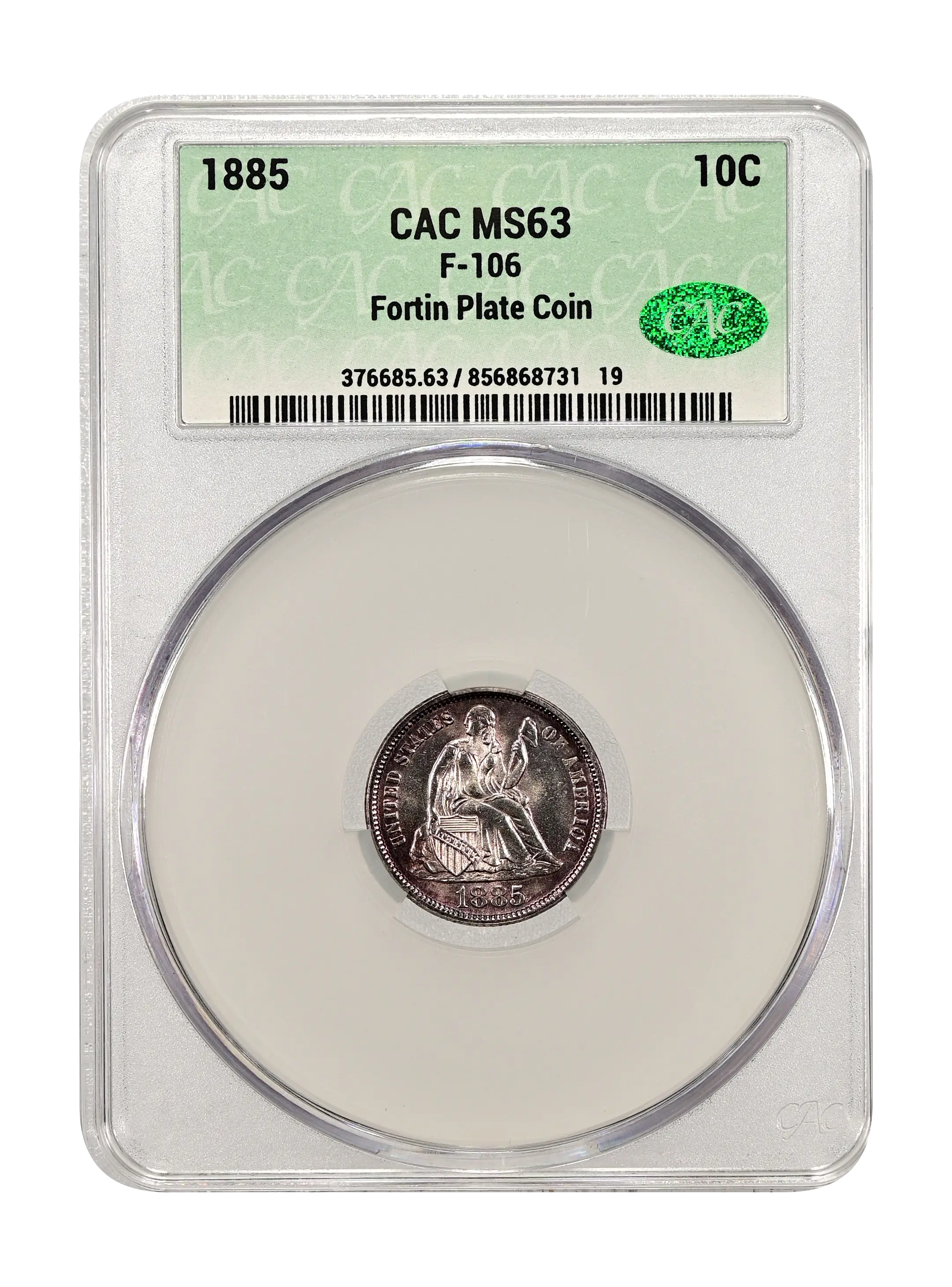1885 F-106 10c CAC MS63