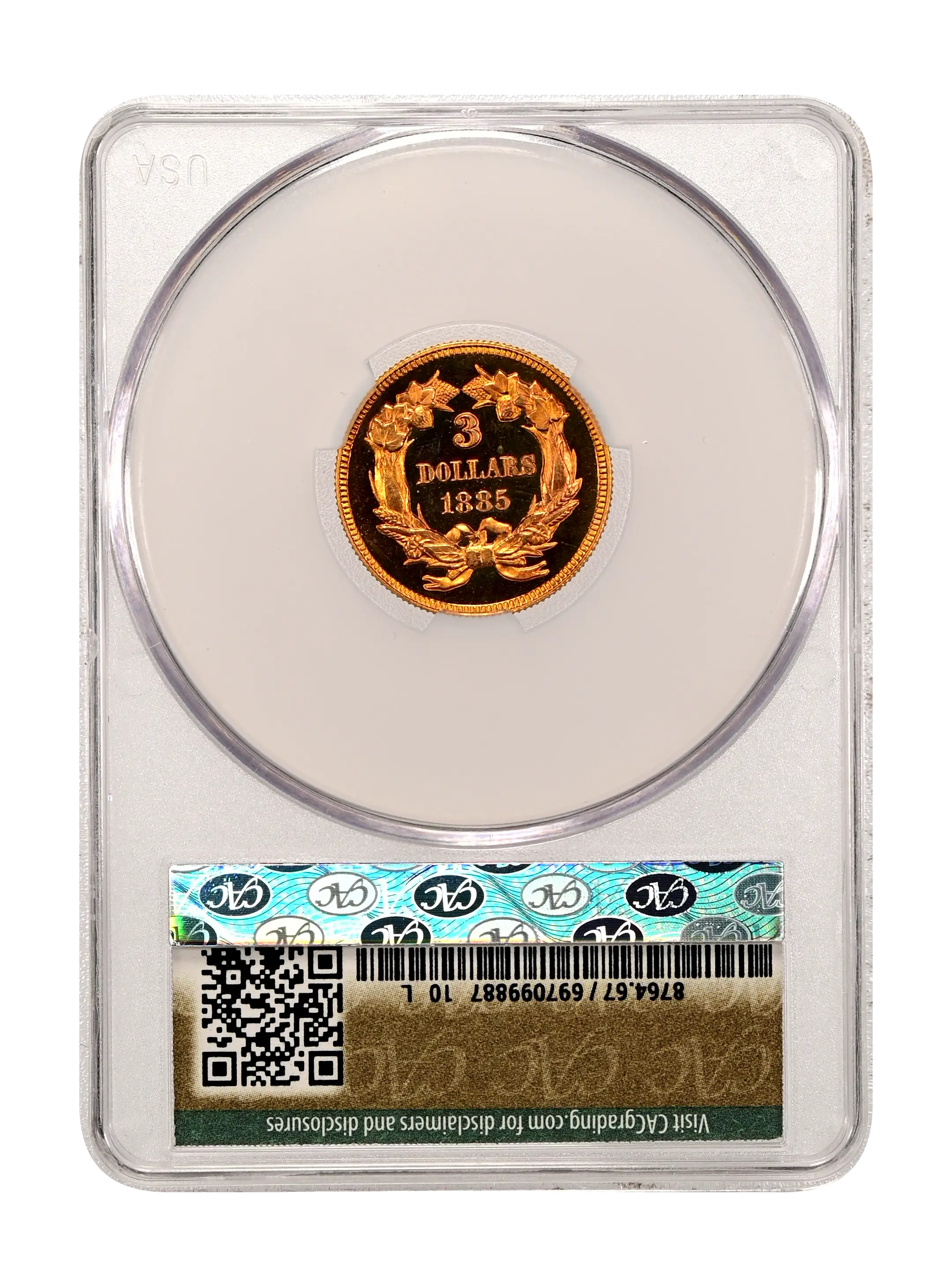 1885 Three-Dollar Gold Piece. Proof-67 Cameo (NGC). CAC.
