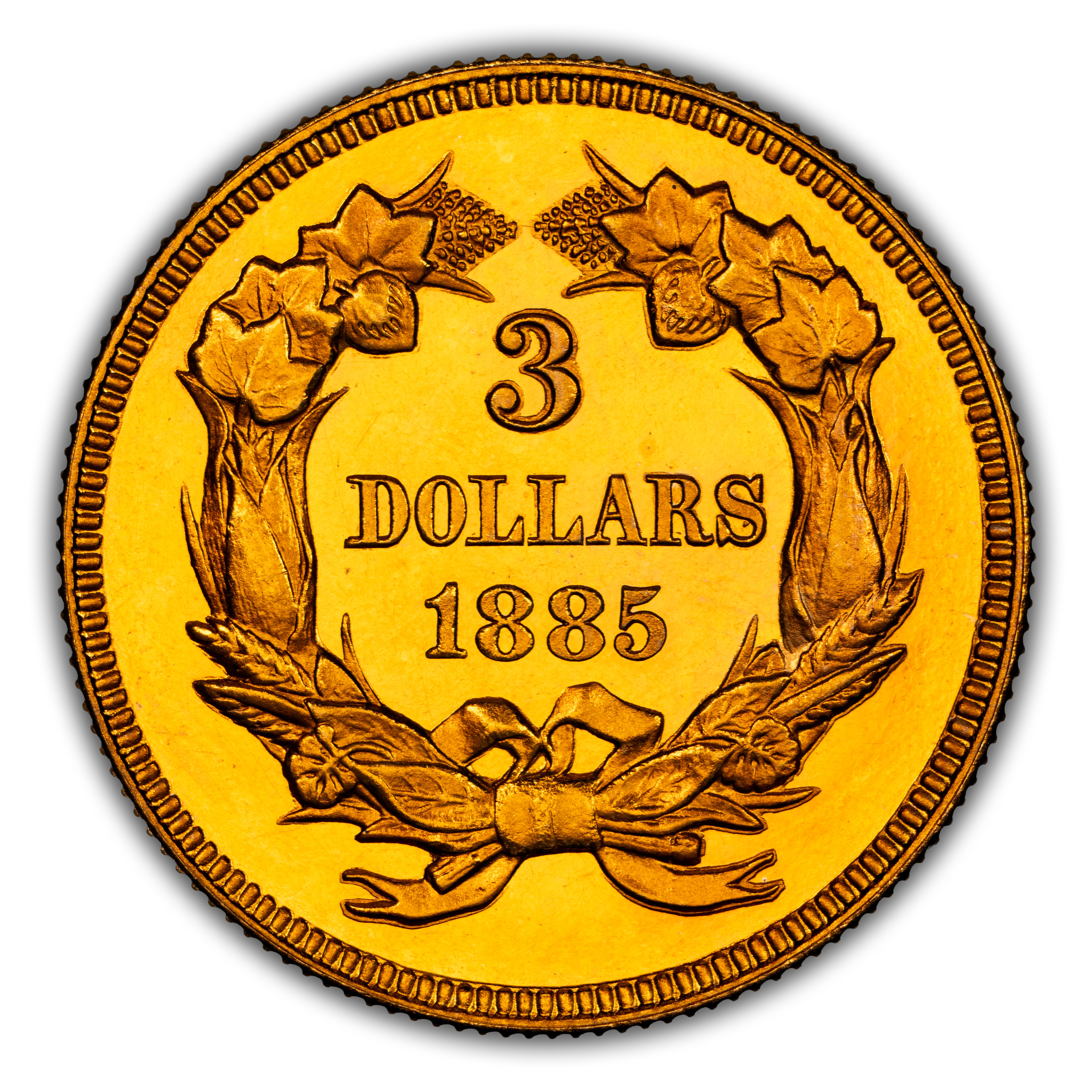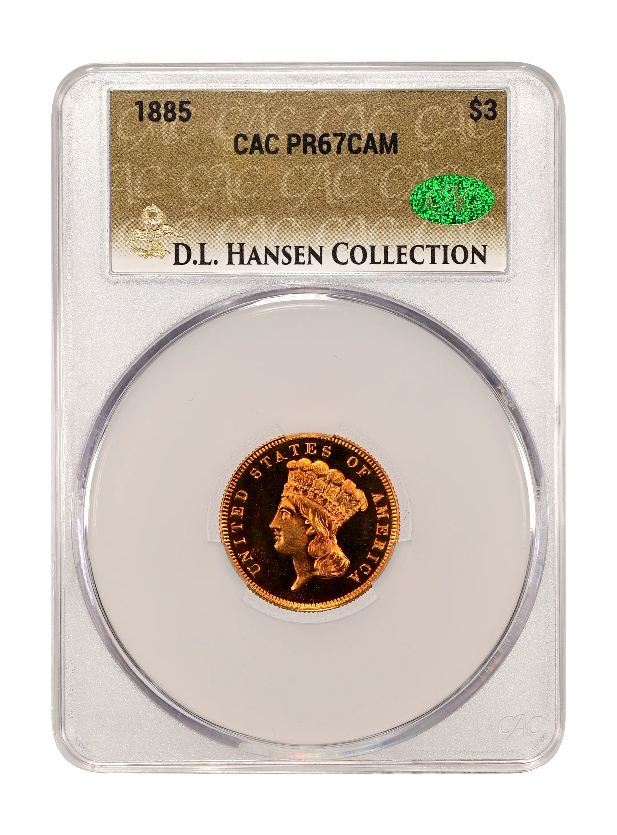 1885 $3 PCGS Proof 64 CAM ex: D.L. Hansen