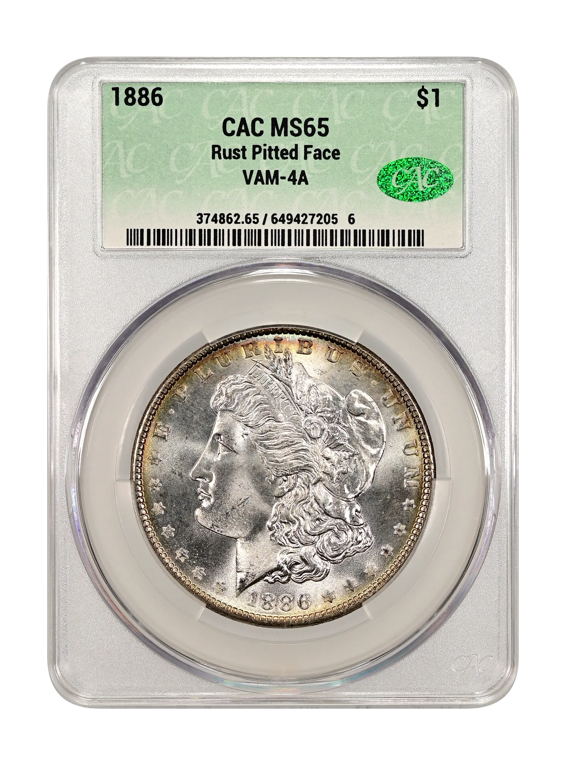 1886 Rust Pitted Face $1 VAM-4A CAC MS65