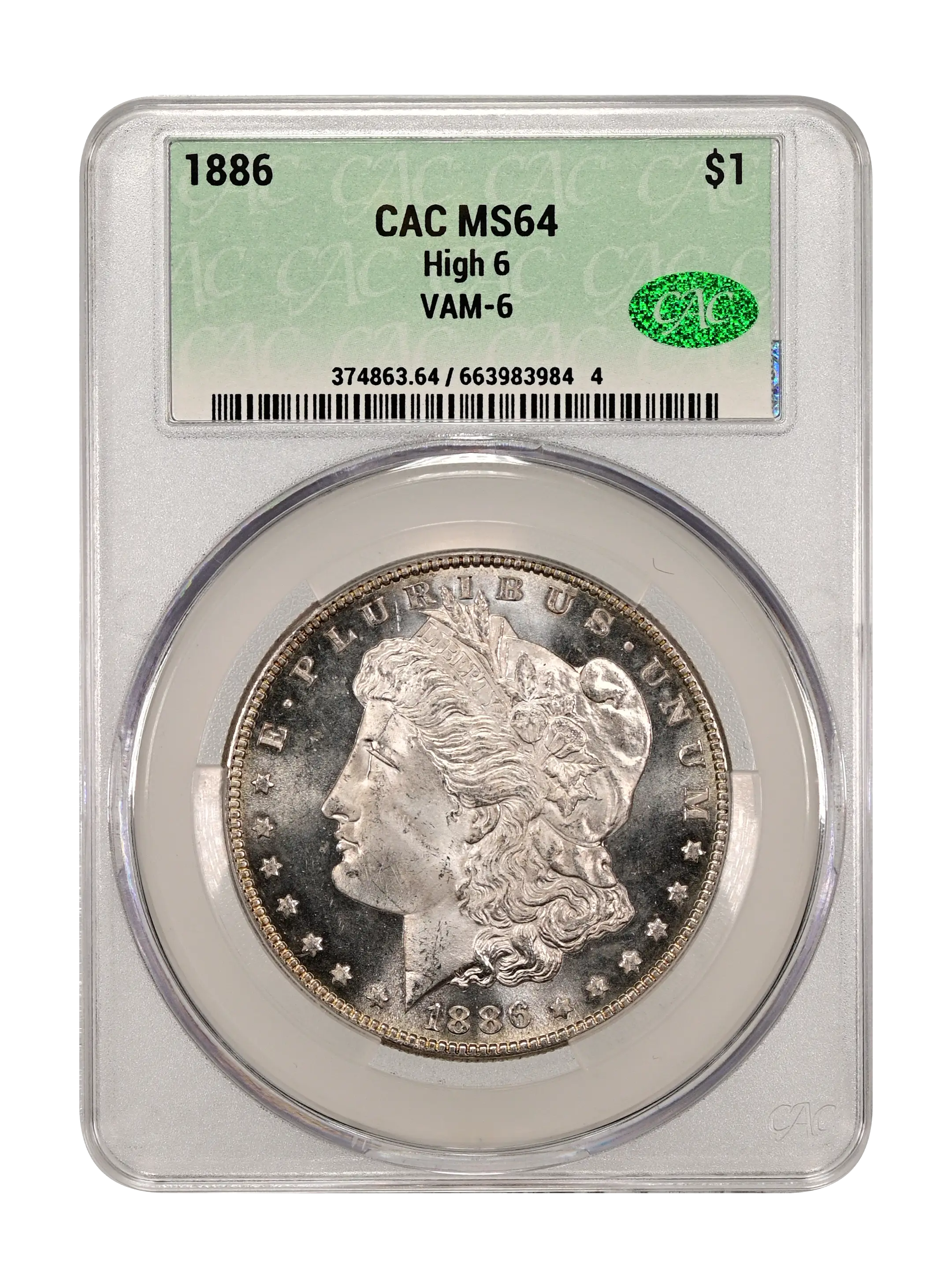 1886 High 6 $1 VAM-6 CAC MS64