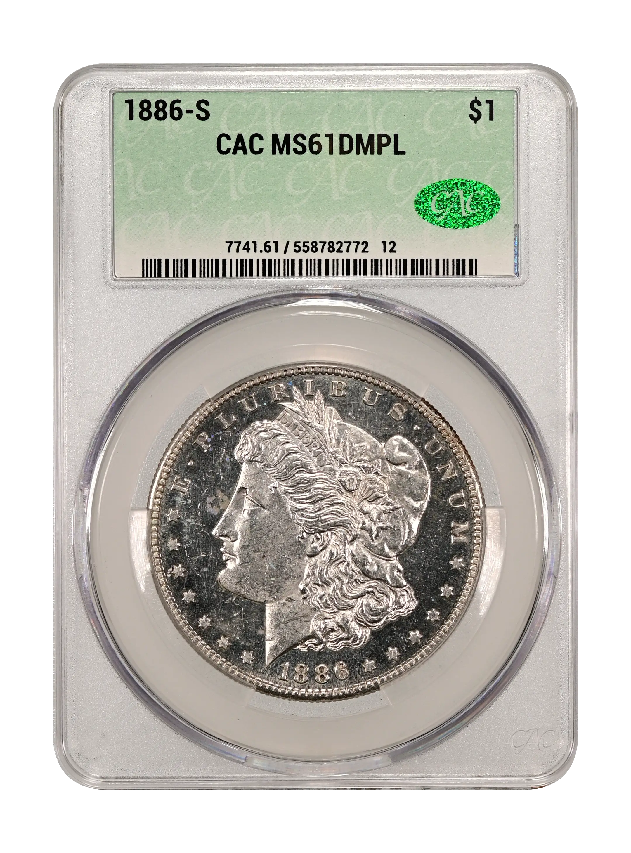 1886-S $1 MS64 Deep Mirror Prooflike PCGS. CAC....
