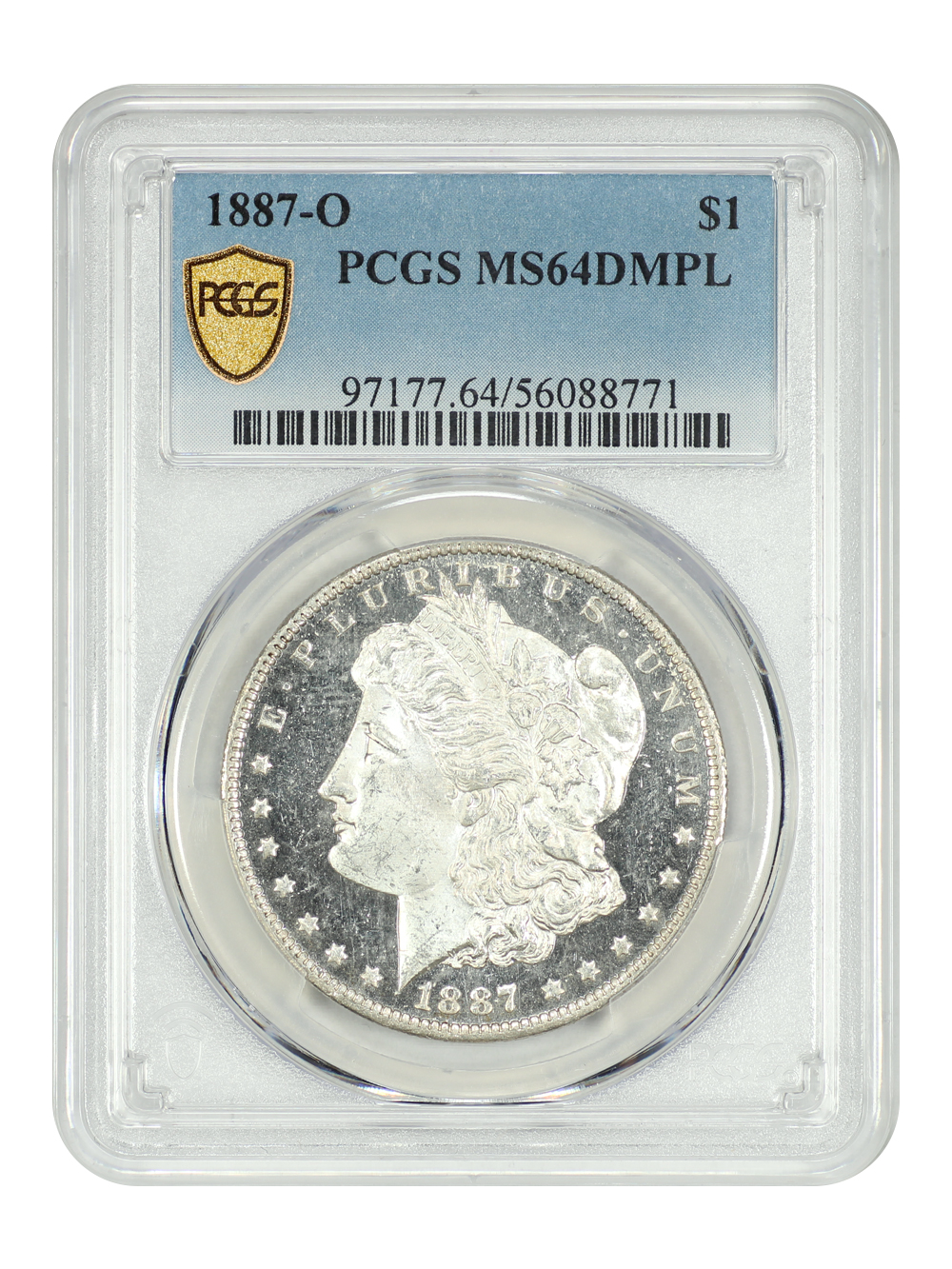 1887-O $1 PCGS/CAC MS64 DMPL (PCGS Rattler Holder)