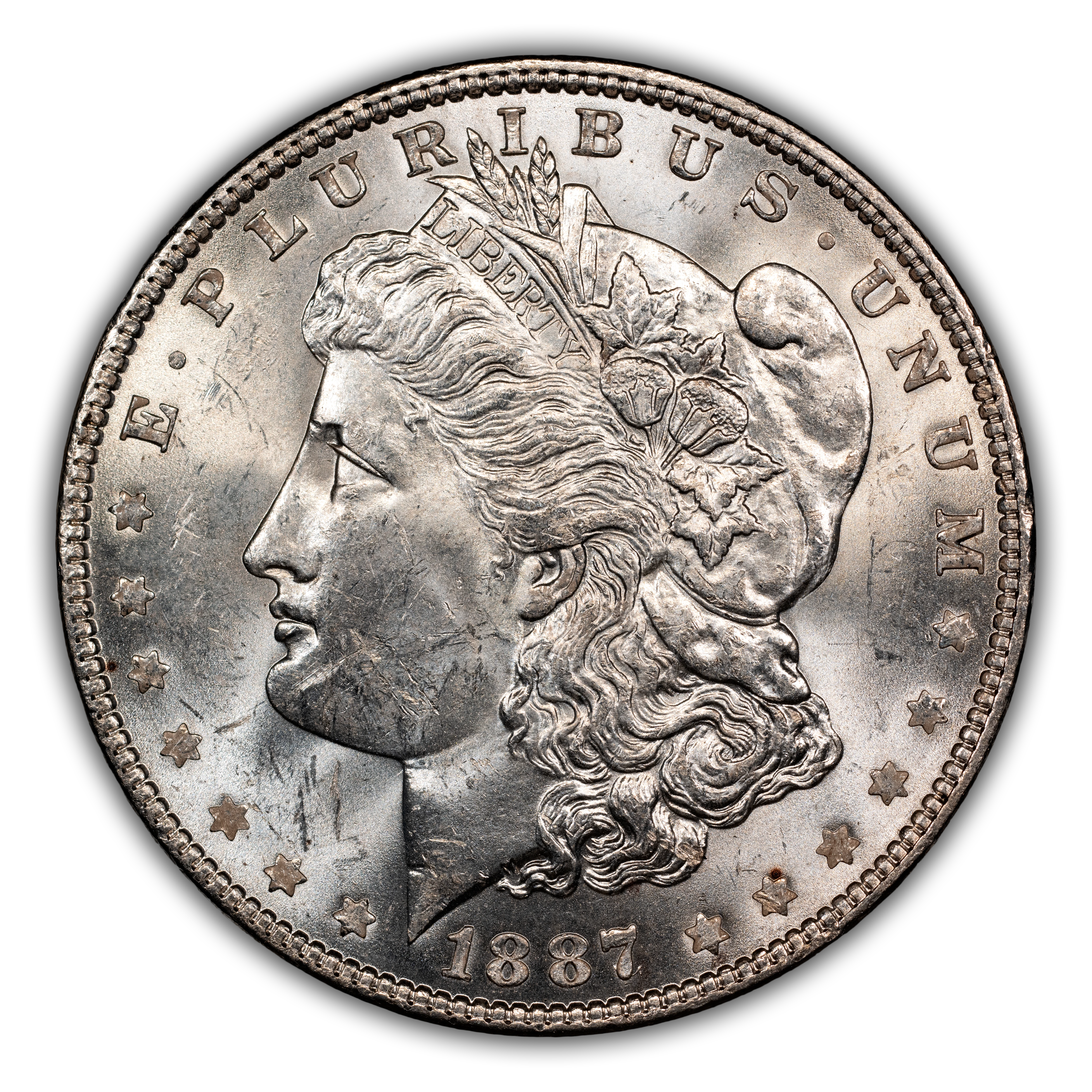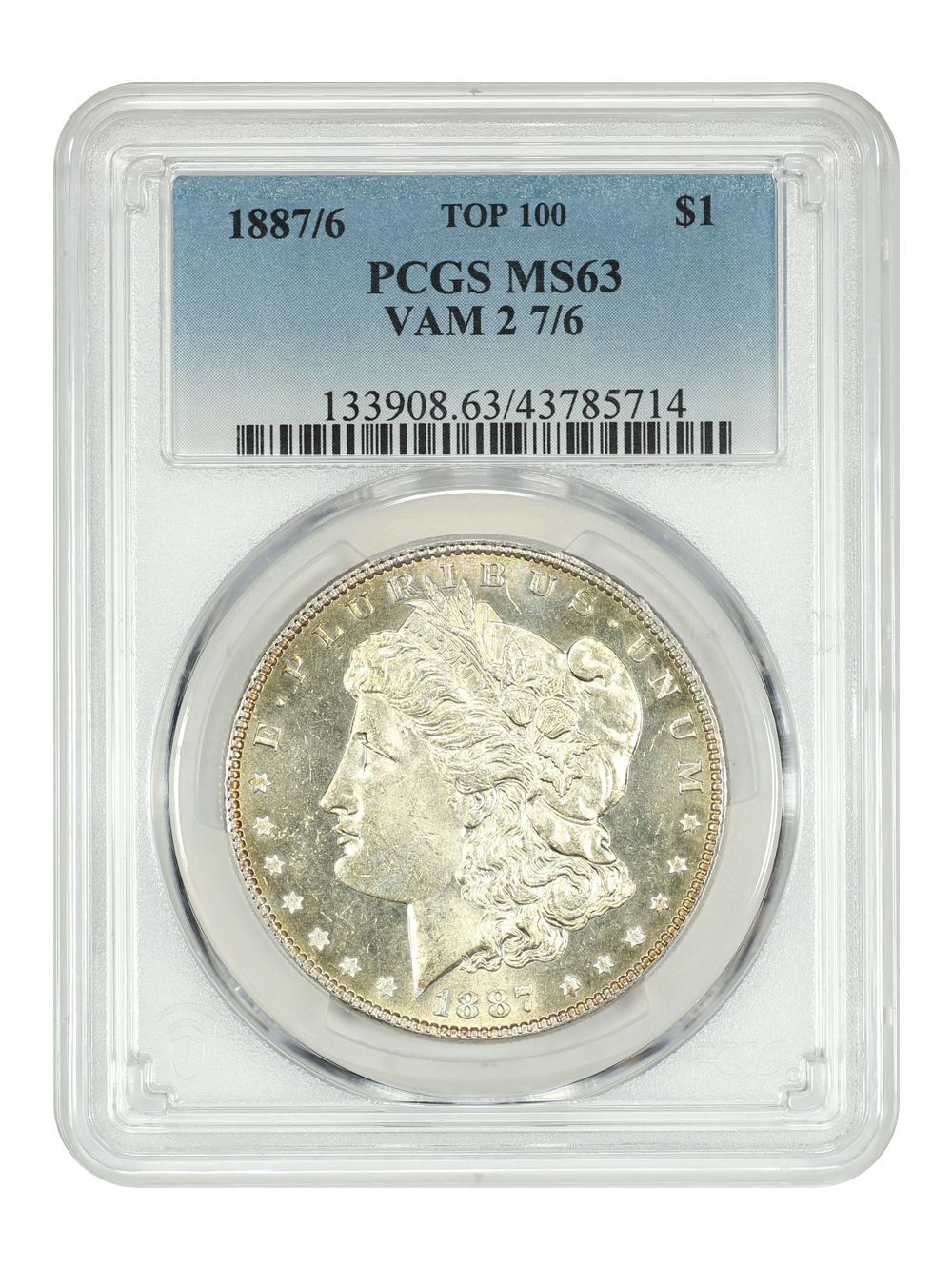 Top 100 VAM: 1887 $1 PCGS MS63 (VAM-2, 7/6)
