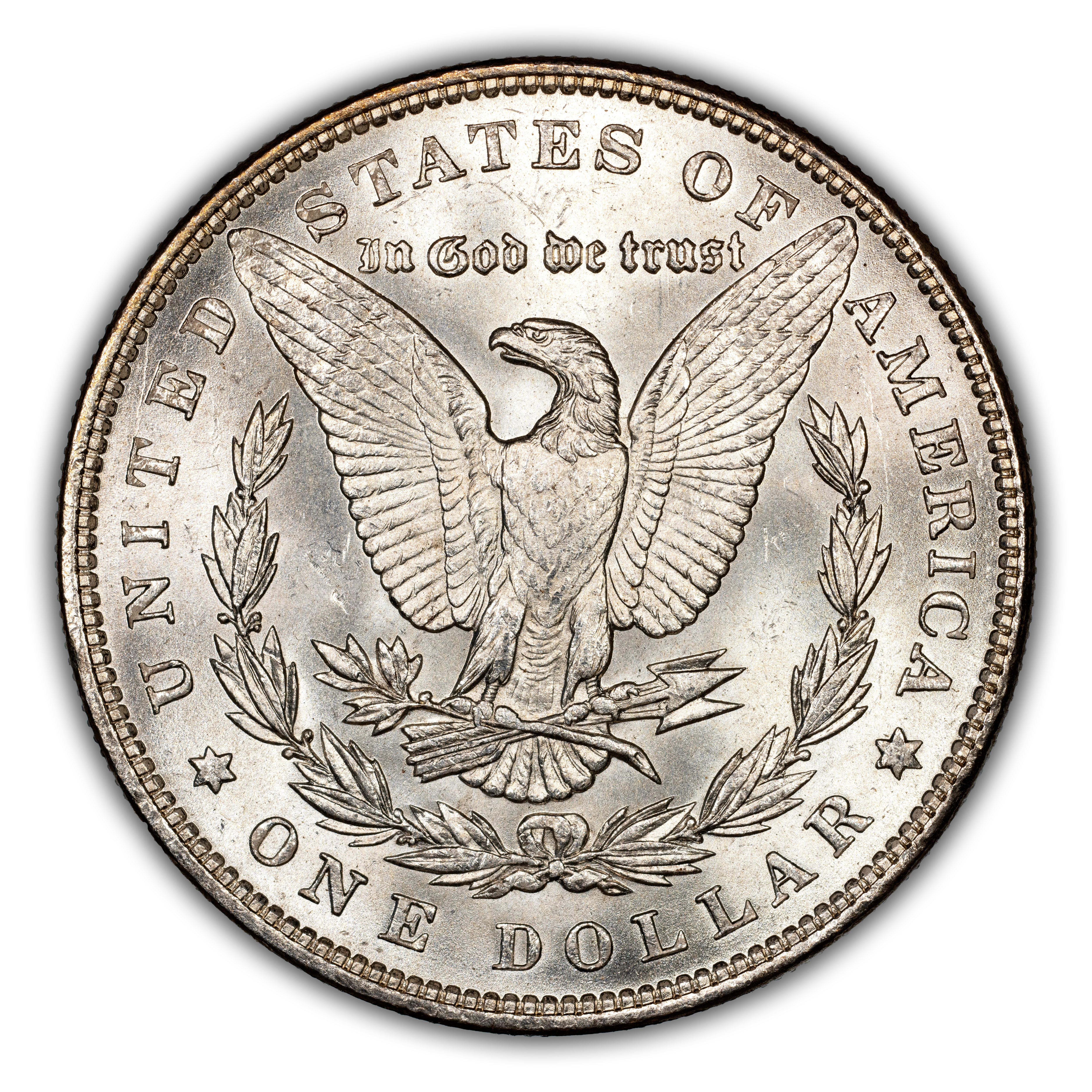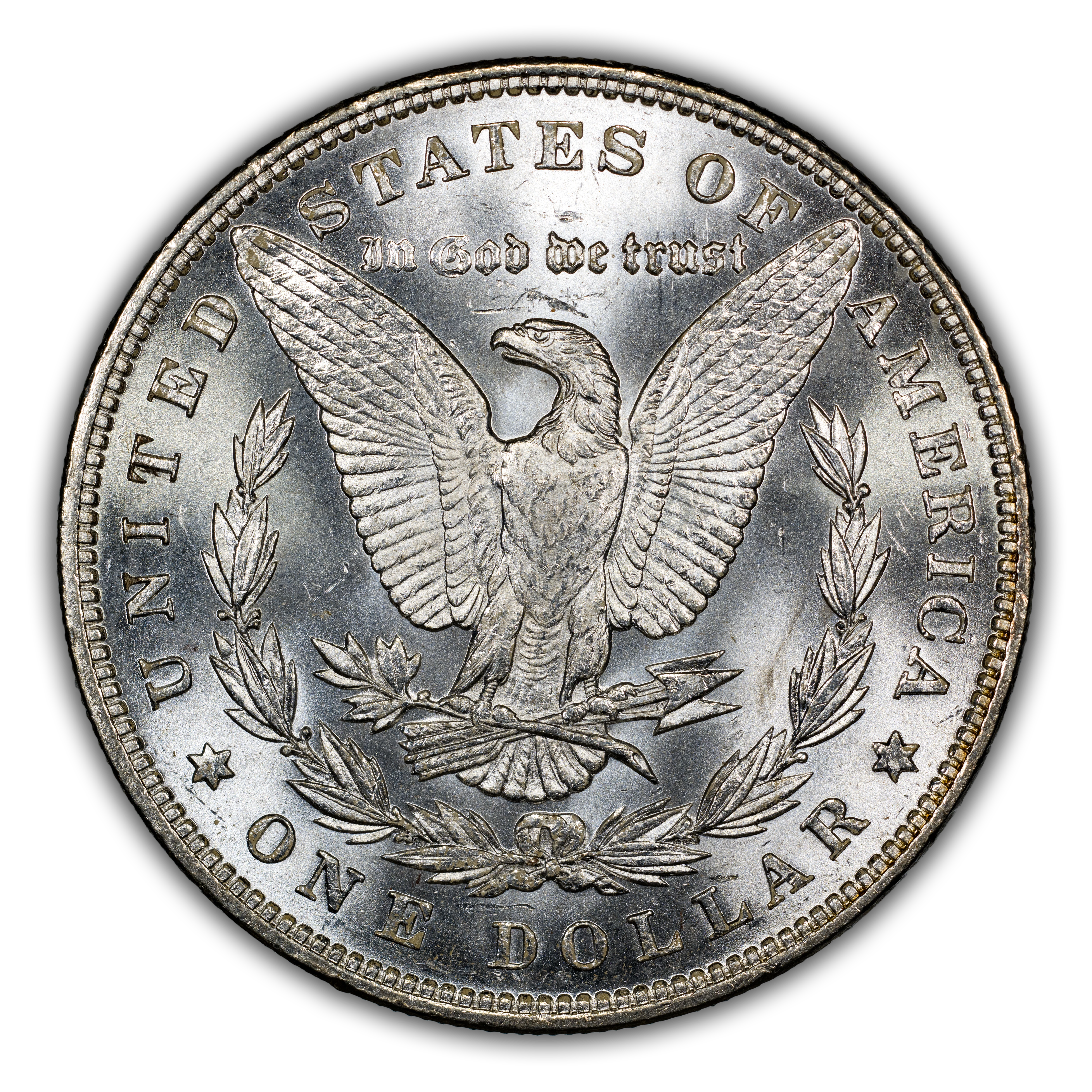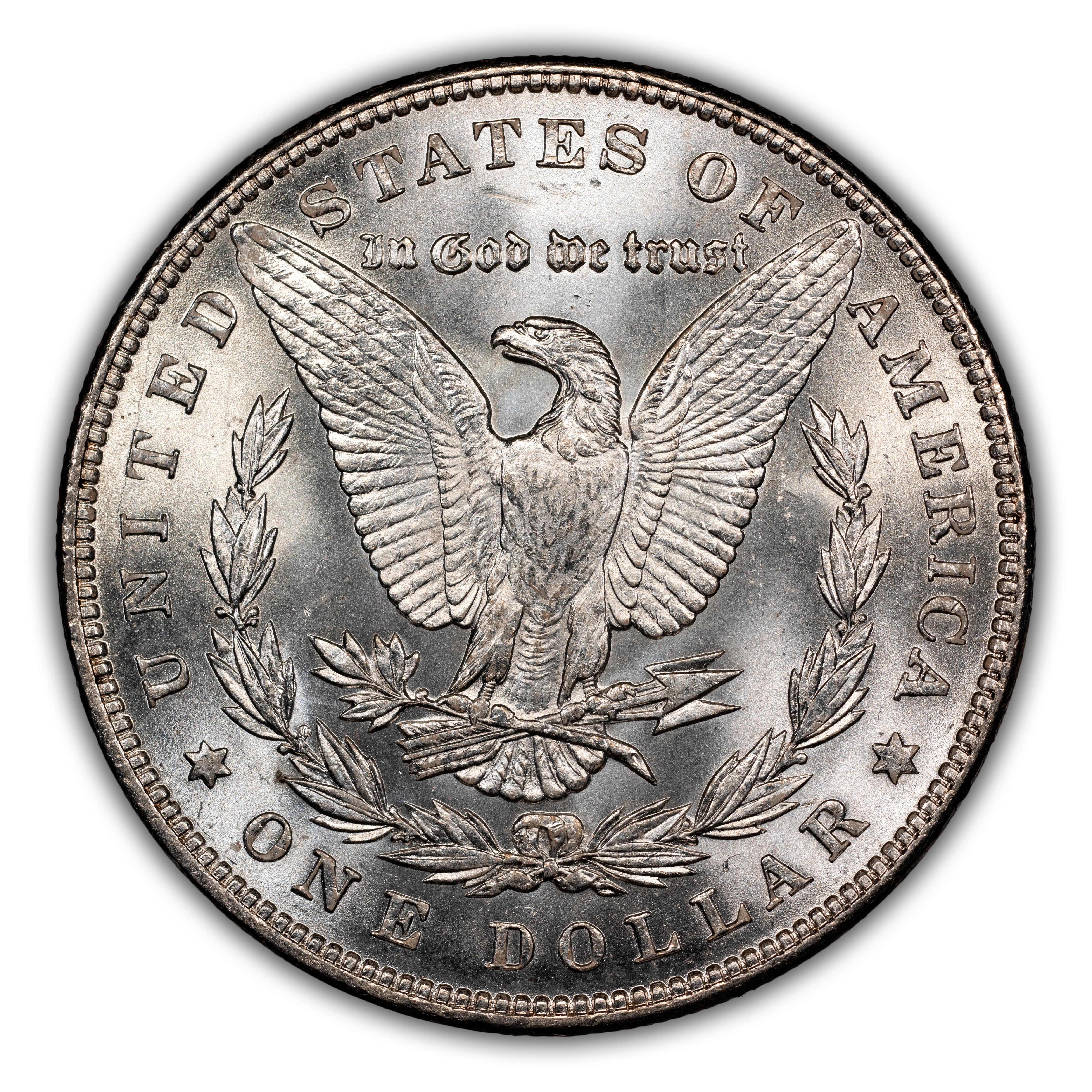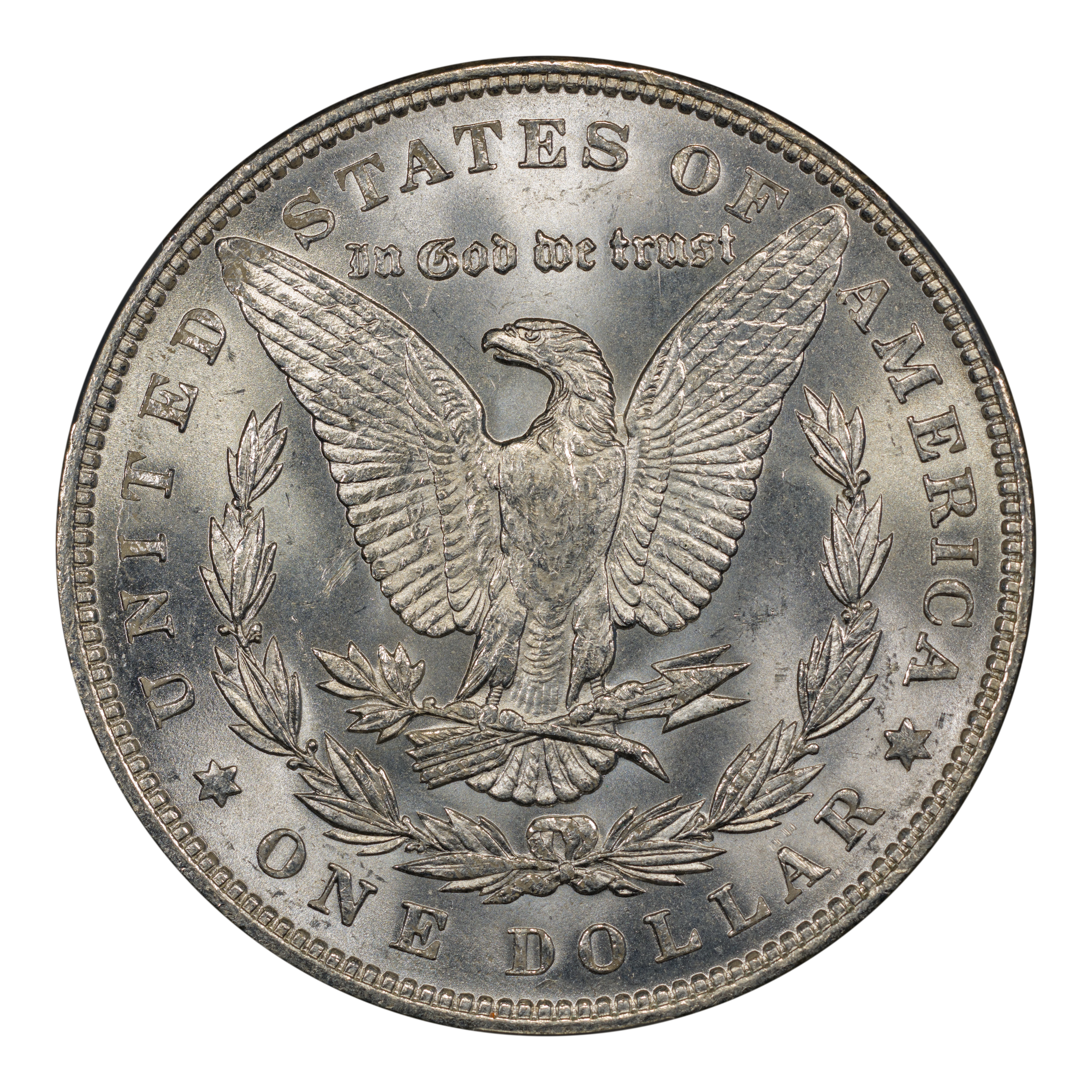 Reverse: The heraldic eagle is centered holding a bunch of arrows and branch surrounded by and olive leaves. The words UNITED STATES OF AMERICA * ONE DOLLAR frame the periphery. Mint mark, if any, appears above the letters DO of DOLLAR.