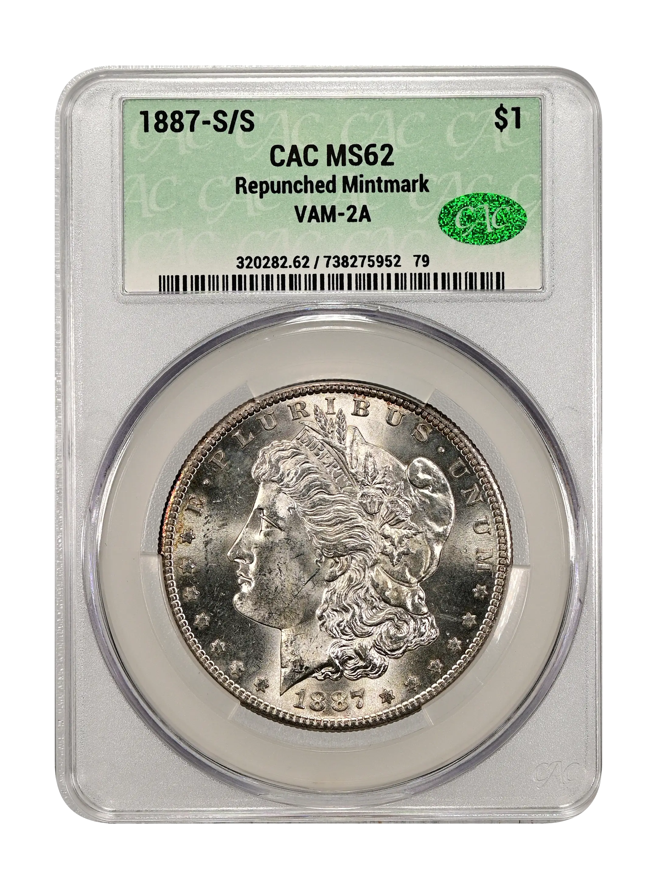 1887-S/S Repunched Mintmark $1 VAM-2A CAC MS62