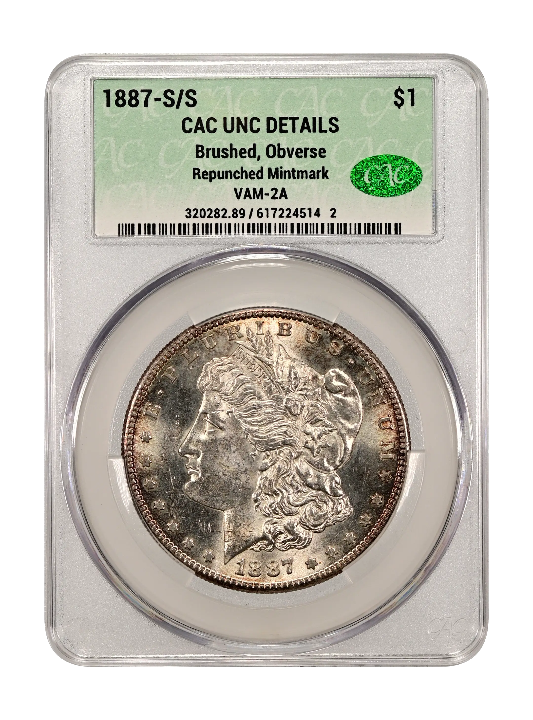 1887-S/S Repunched Mintmark $1 VAM-2A CAC UNC DETAILS