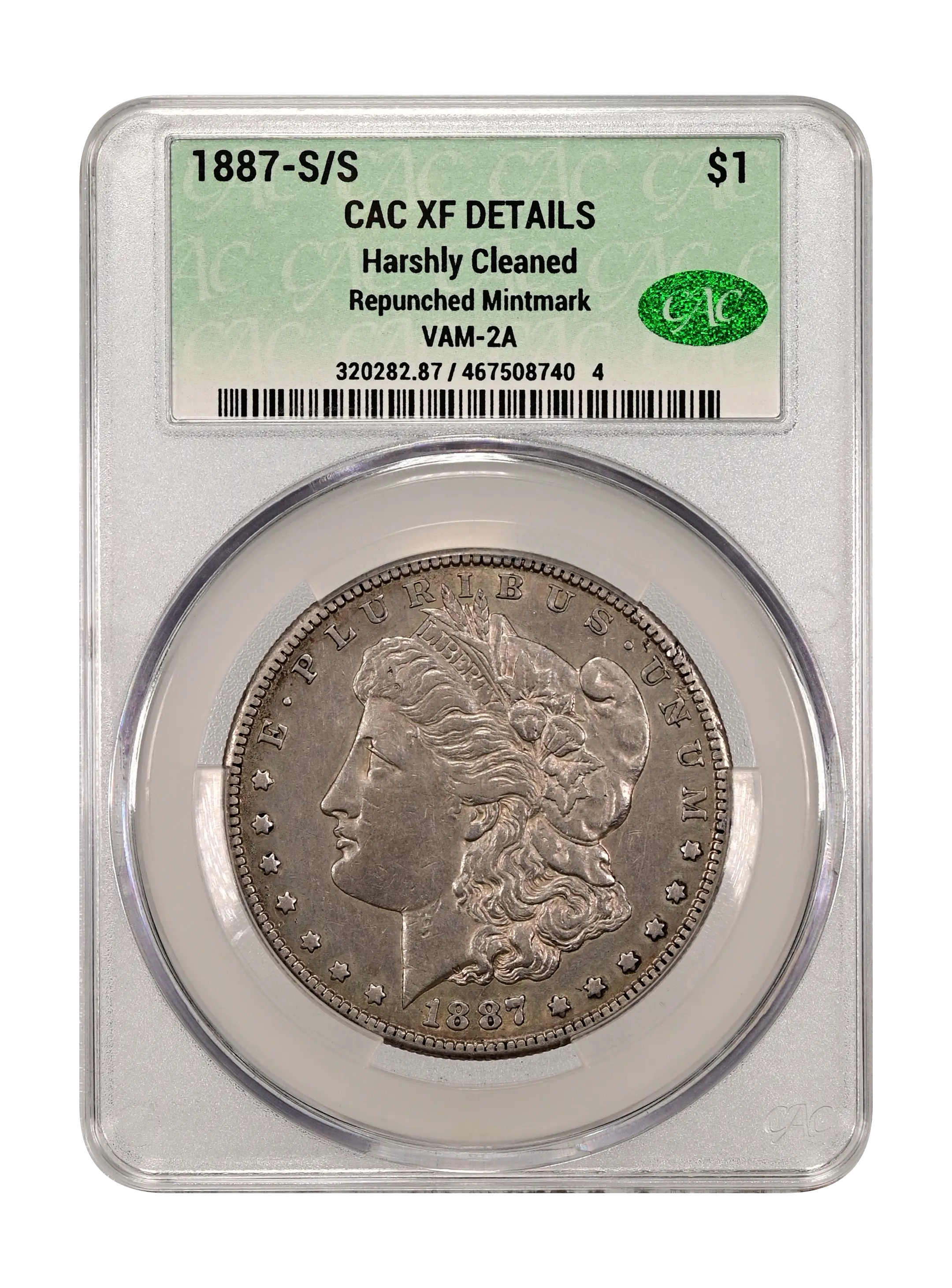 1887-S/S Repunched Mintmark $1 VAM-2A CAC XF DETAILS