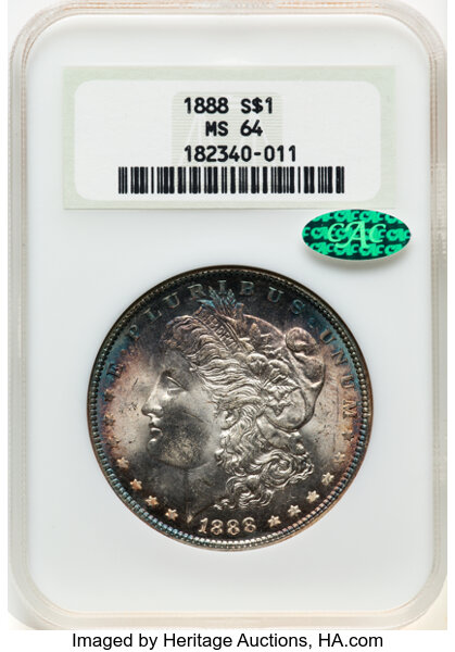 1888 $1 CAC MS64