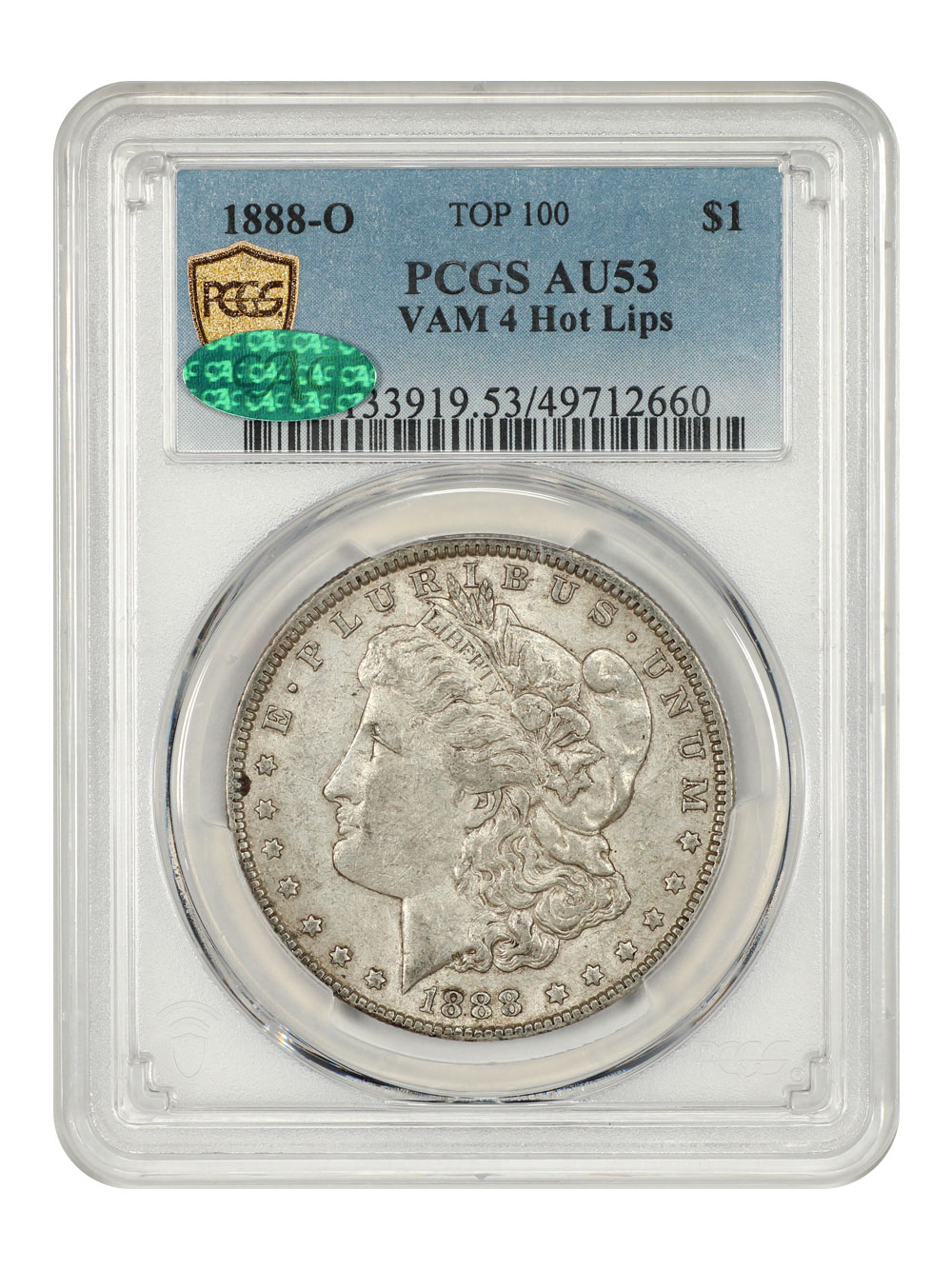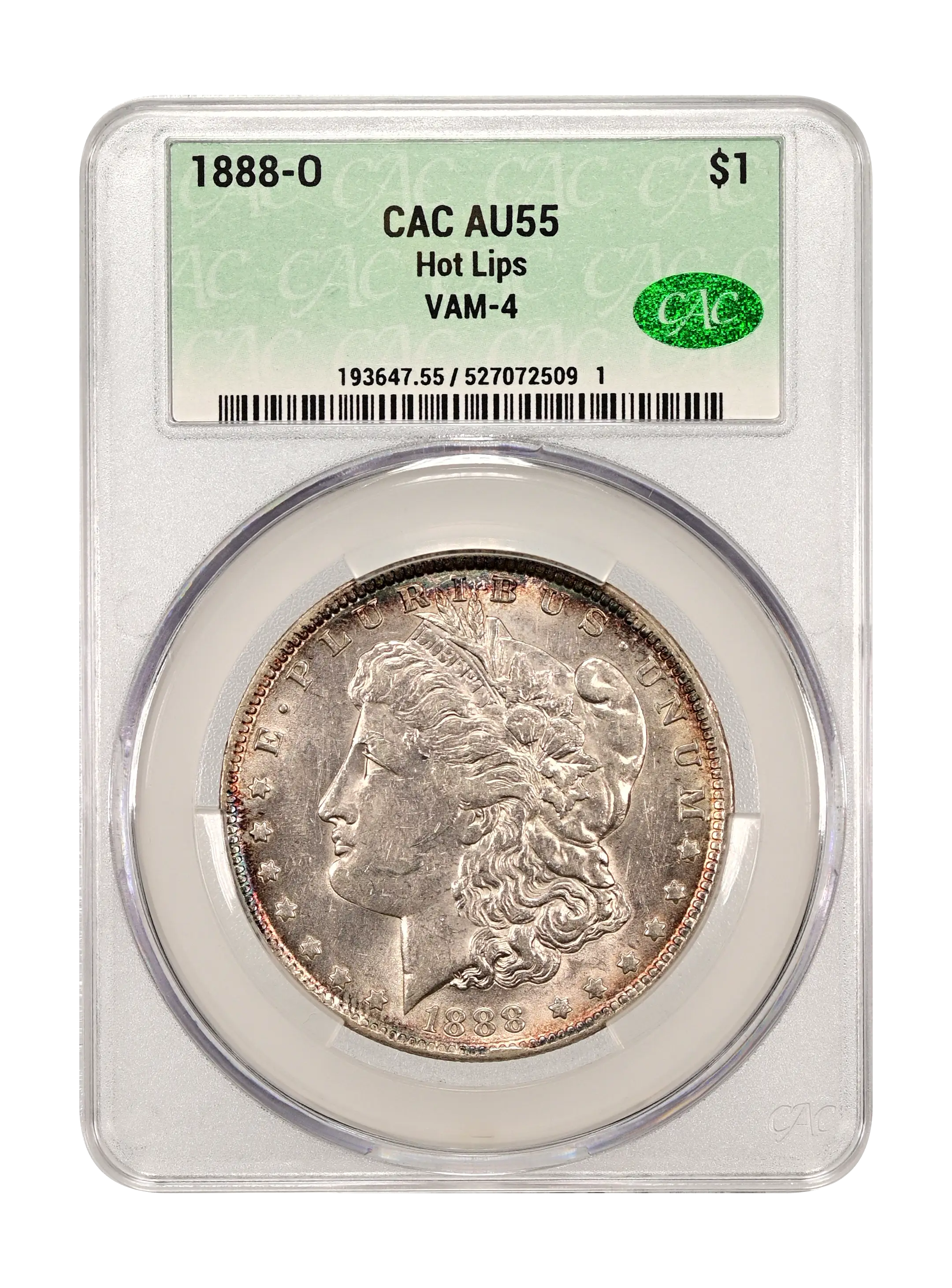 1888-O Hot Lips $1 VAM-4 CAC AU55