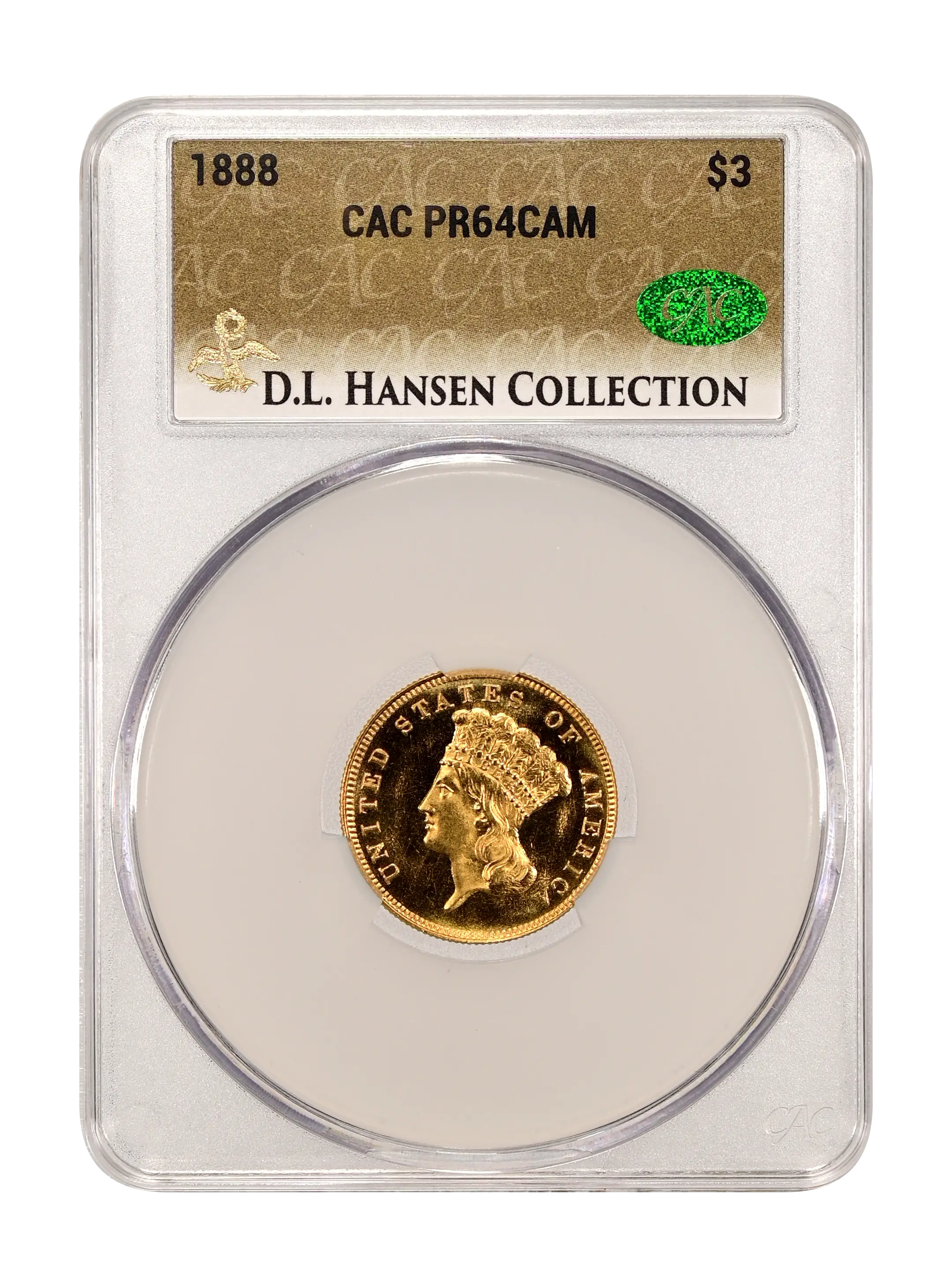 1888 $3 PCGS Proof 64 CAM ex: D.L. Hansen