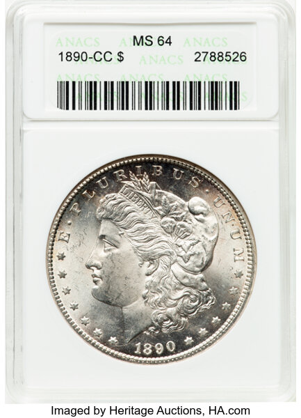 One of the scarcest CC-mint Morgan dollars, the 1890-CC is a popular coin that is well sought by collectors. While plenty of pieces can be found in the marketplace on any given day, the overall demand outstrips supply and thus premiums run high on this piece. They are readily available through approximately MS64, though supplies drop sharply in the MS65 level and this piece is downright rare in MS66. PLs and DMPLs follow a similar availability bell curve, though with far fewer numbers of these relative to the number of typical MS examples in any given level.