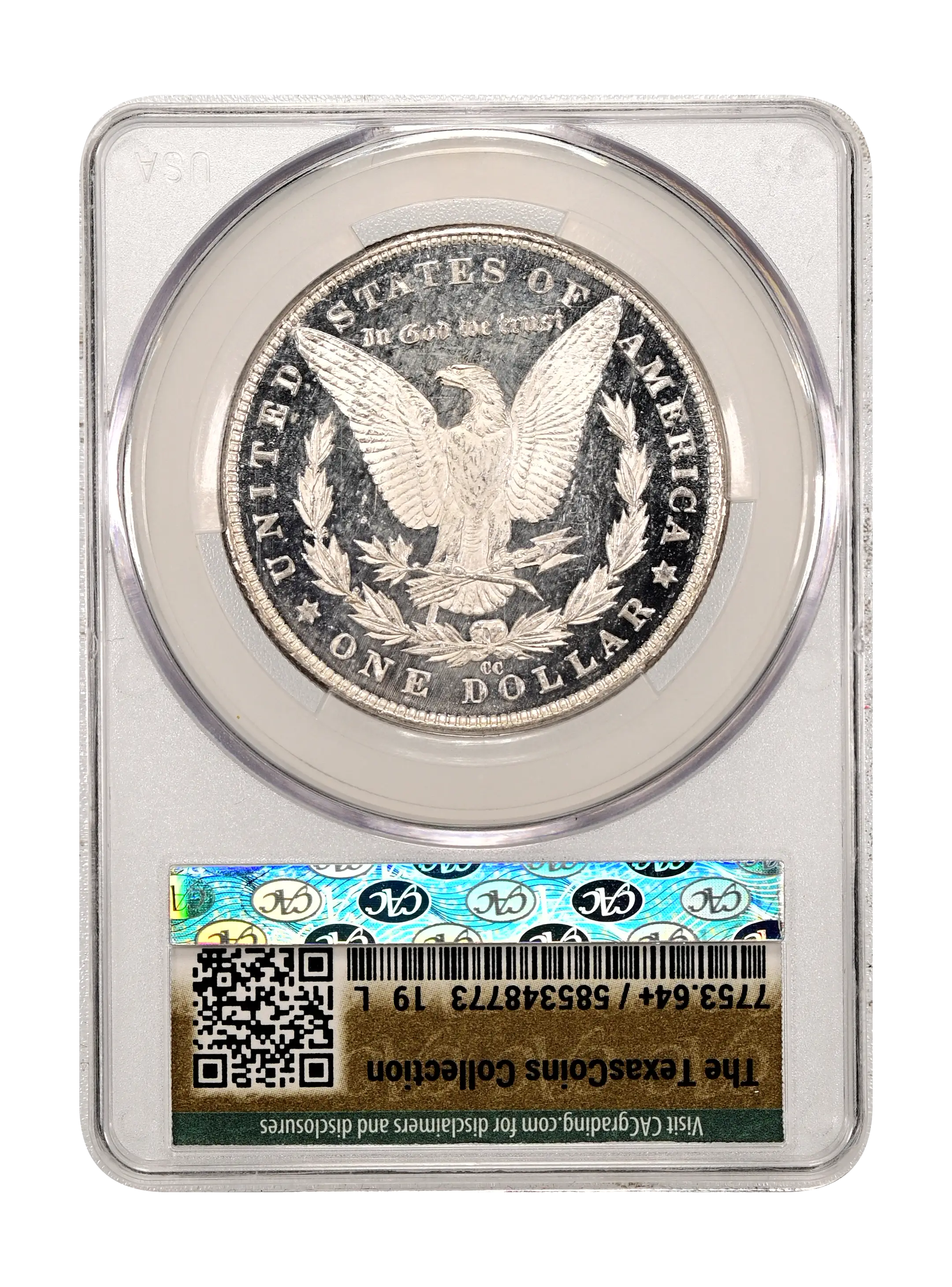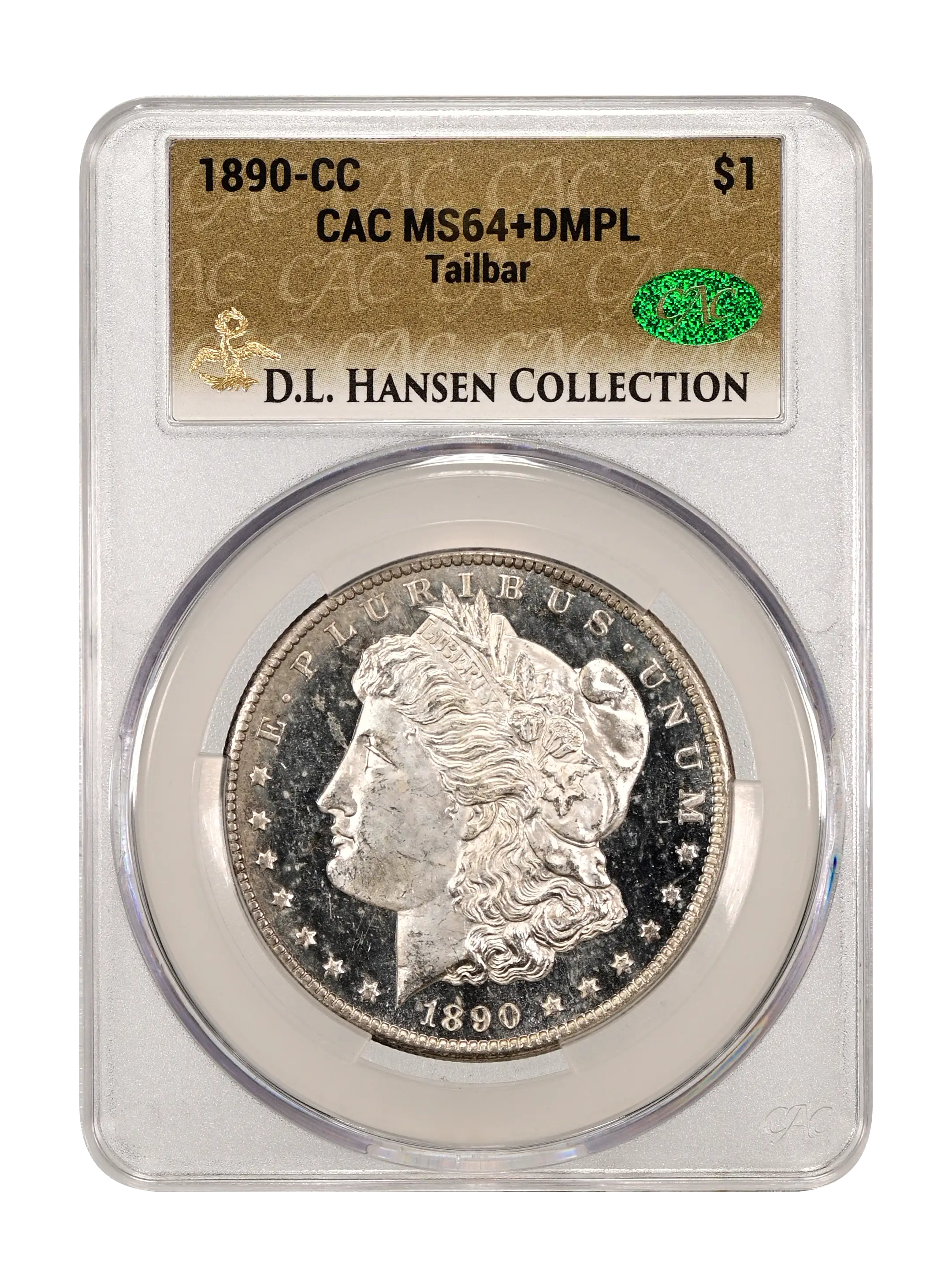 1890-CC Tailbar $1 DMPL CAC MS64+DMPL