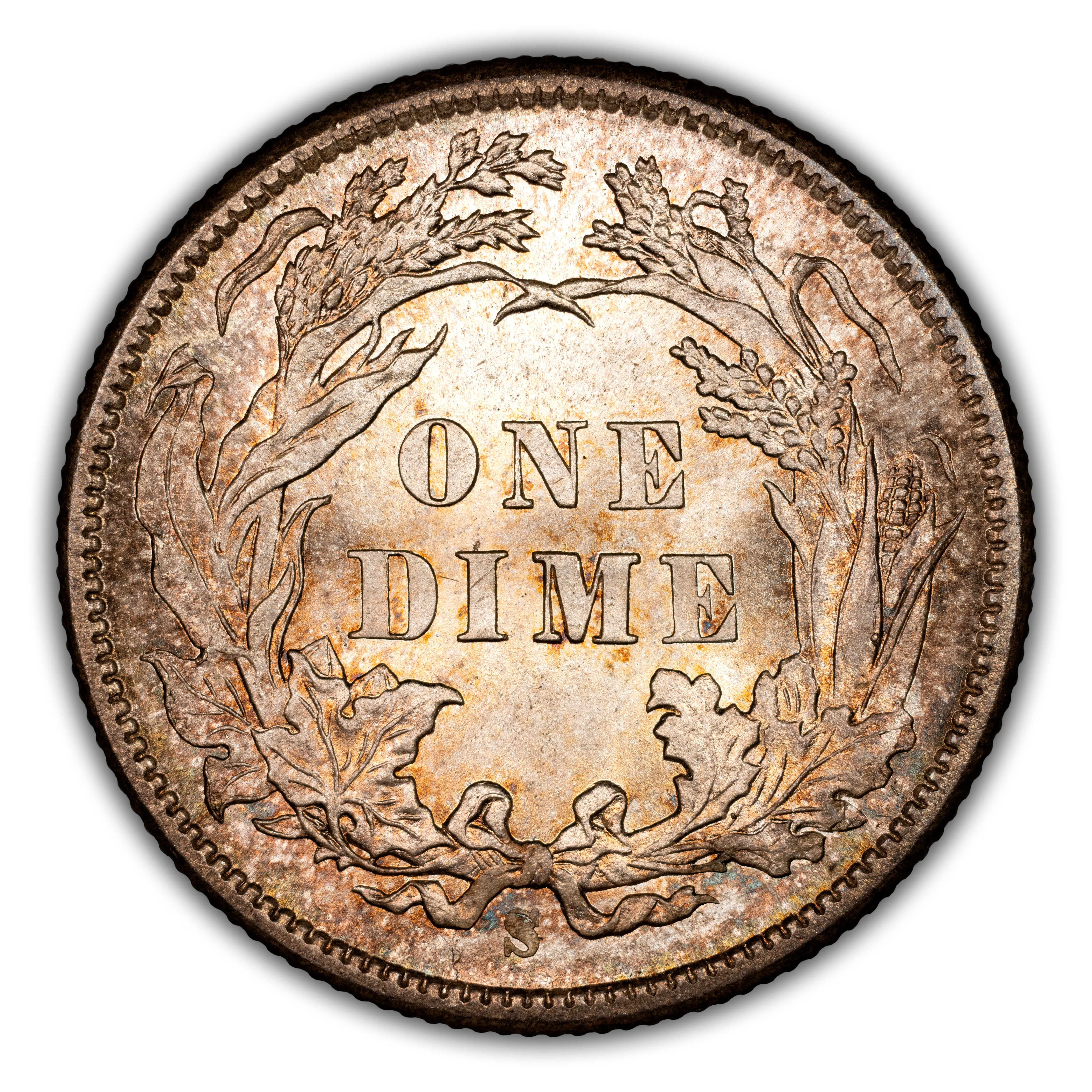 1890-S 10c NGC/CAC MS64 - Colorful Toning