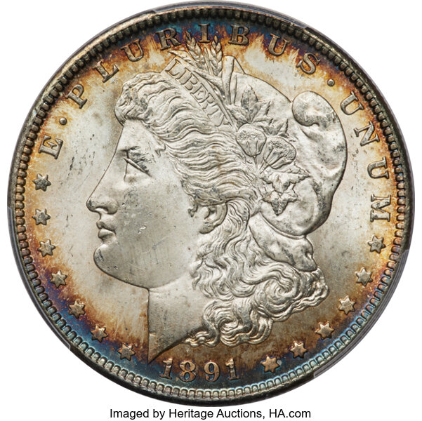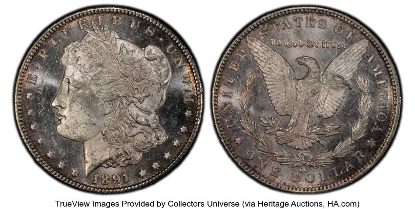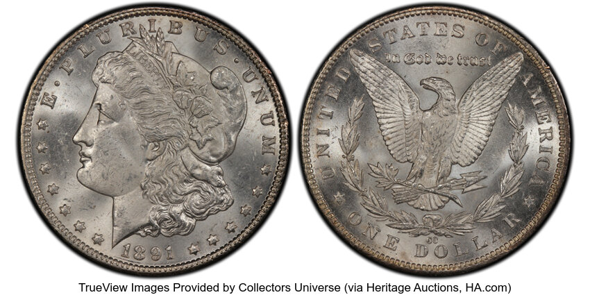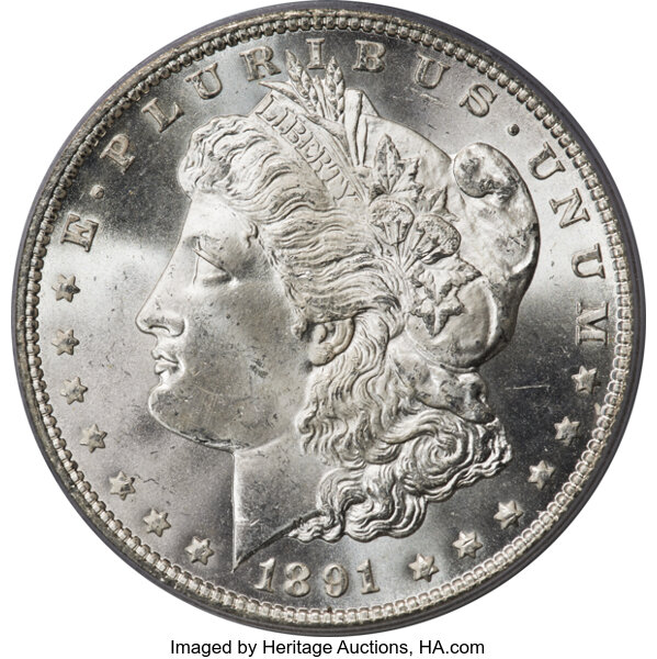The 1891-CC Morgan dollar is one of the more widely available Carson City Morgan dollars in terms of overall availability, and it is plentiful in the lower MS grades. However, due to hit-or-miss strike quality issues Gems are difficult, with substantially smaller numbers of MS65s than MS64s, and in MS66 or higher this coin is quite rare. PLs and DMPLs, while available, are very scarce and they are rare in the MS65 levels or higher.