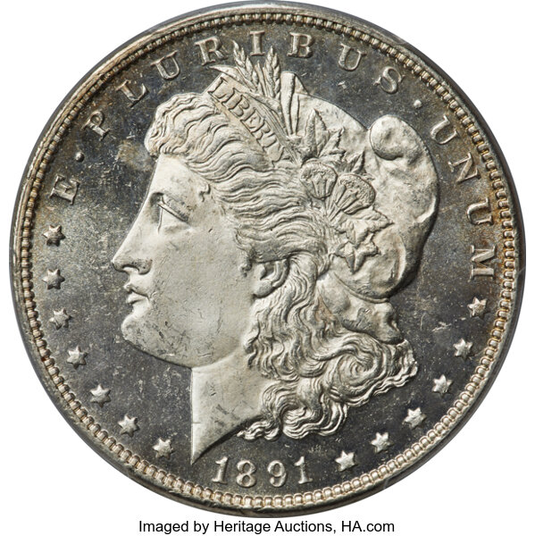 1891 Morgan Silver Dollar. MS-62 DMPL (PCGS).