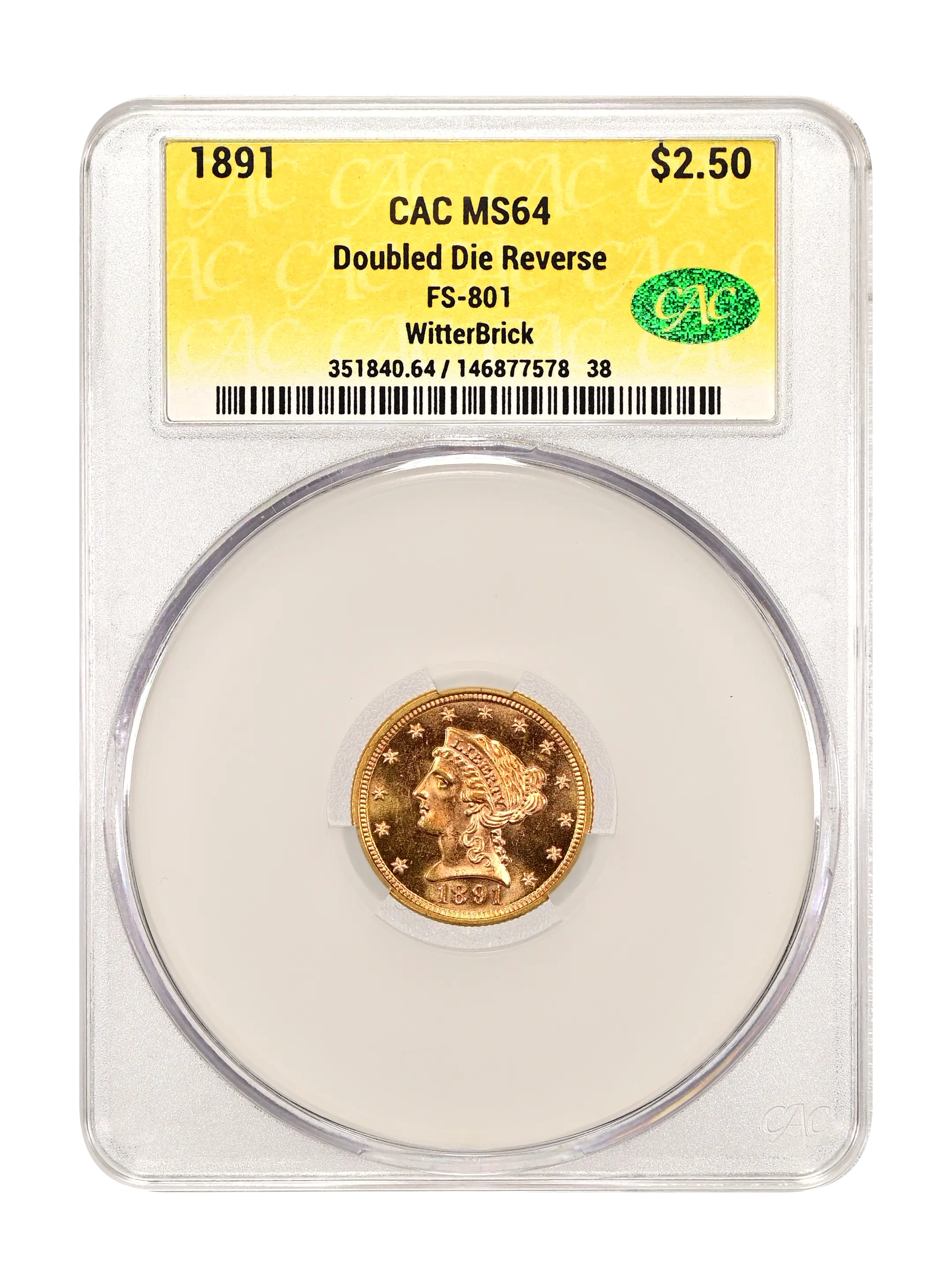 1891 Doubled Die Reverse $2.50 FS-801 CAC MS64