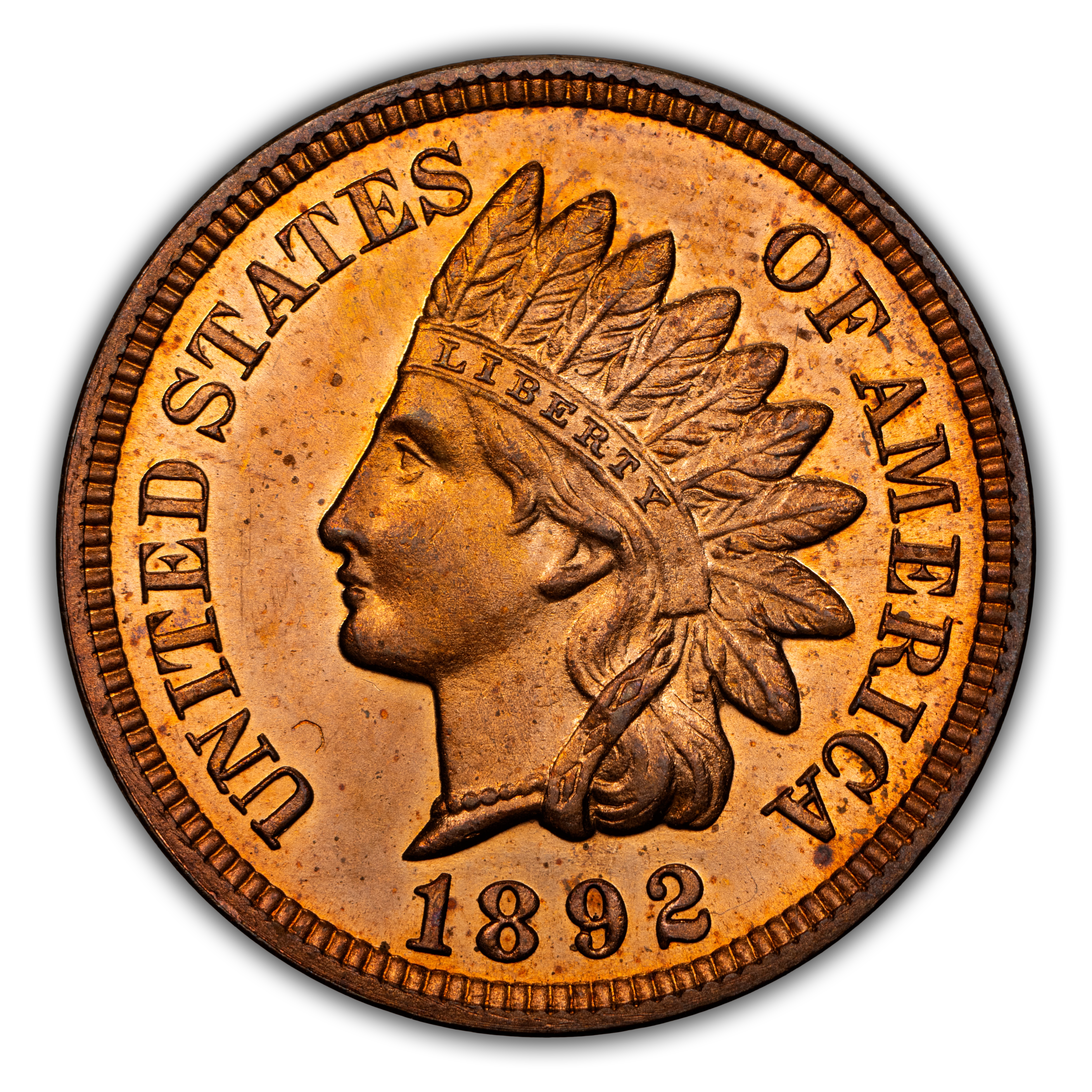 At a mintage as high as 2,745, the 1892 proof Indian Cent makes for a beautiful type coin. Brown pieces are common along with red-brown except for the finest gems which are scarce. Full red gems are scarce also with the finest ones being very rare. Any grade with a cameo is at the very least, scarce with high Mint State grades being rare. Look for attractively toned brown pieces or blazing red surfaces as those are the most desirable and are not very hard to find.