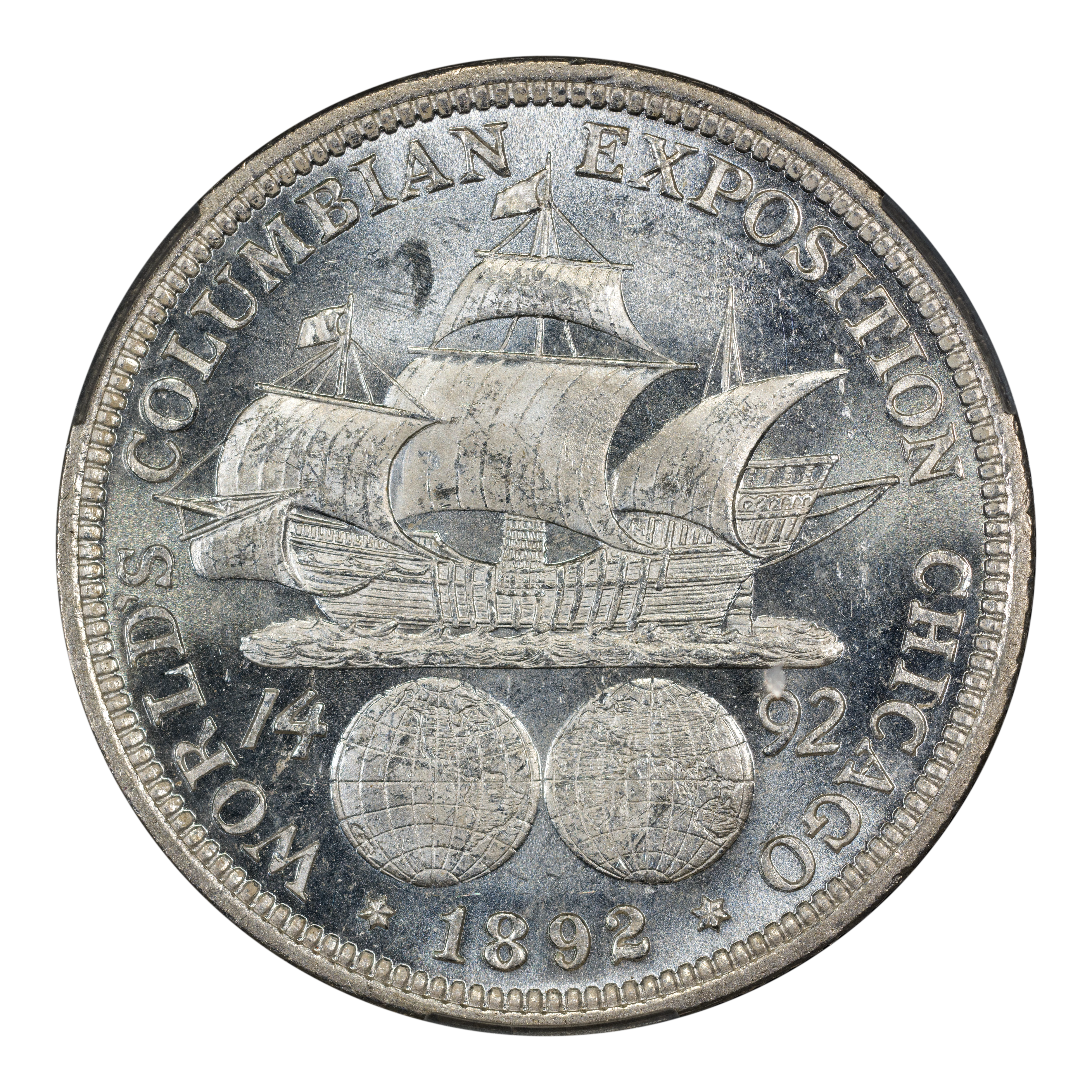 Proof-like surfaces. The 1892 Columbian Exposition half dollar was the first commemorative coin struck by the United States Mint. The coin was produced for sale at the World's Columbian Exposition in Chicago, marking the 400th anniversary of the Christopher Columbus' transatlantic expedition to the New World in 1492. The Columbian Exposition was slated to open in 1892, but delays postponed the Chicago World's Fair until 1893. The Columbian half dollars, marketed as souvenir coins, were sold for $1 apiece and were hugely popular with the public.