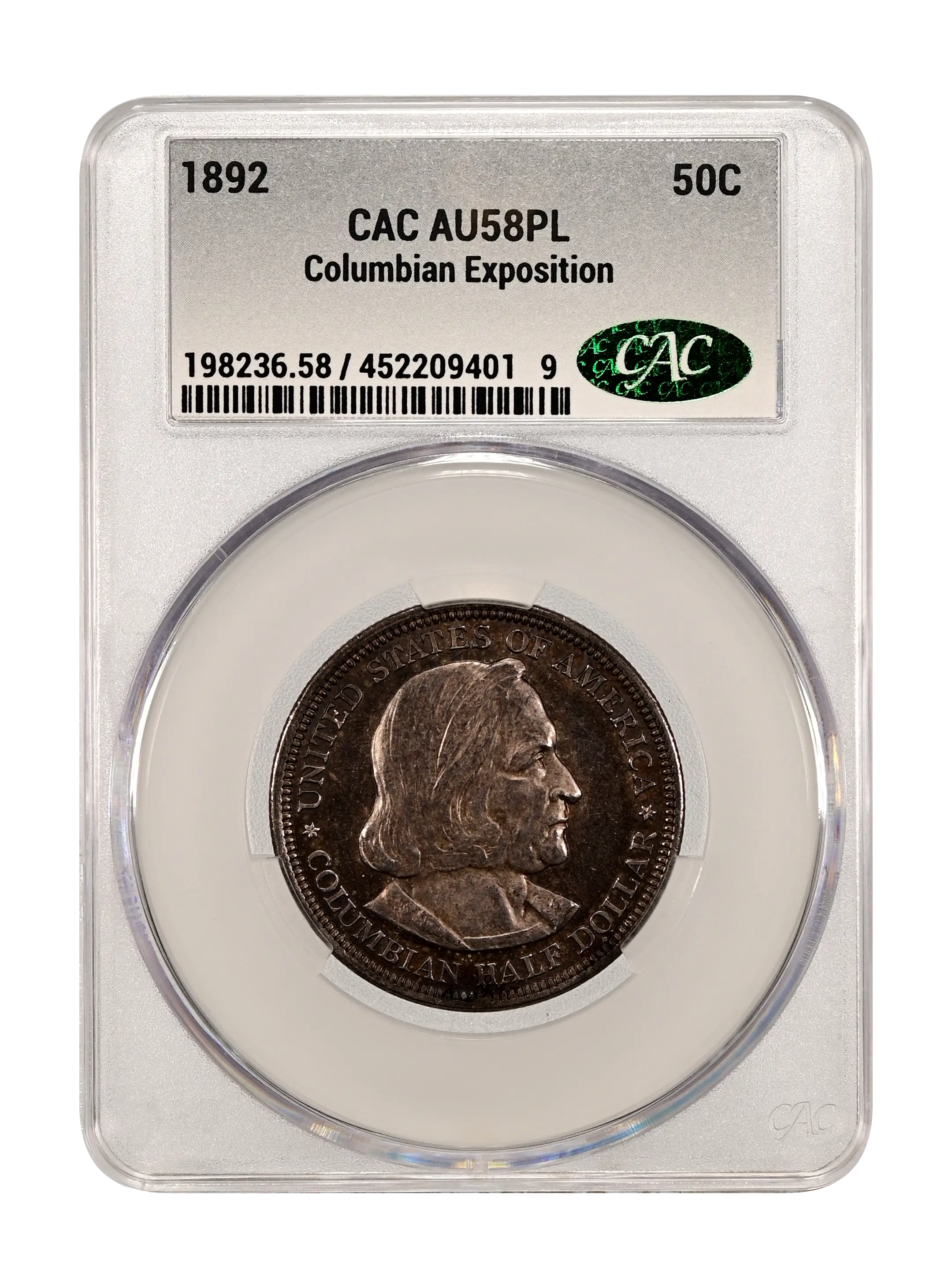 1892 Columbian Exposition 50c PL CAC AU58PL