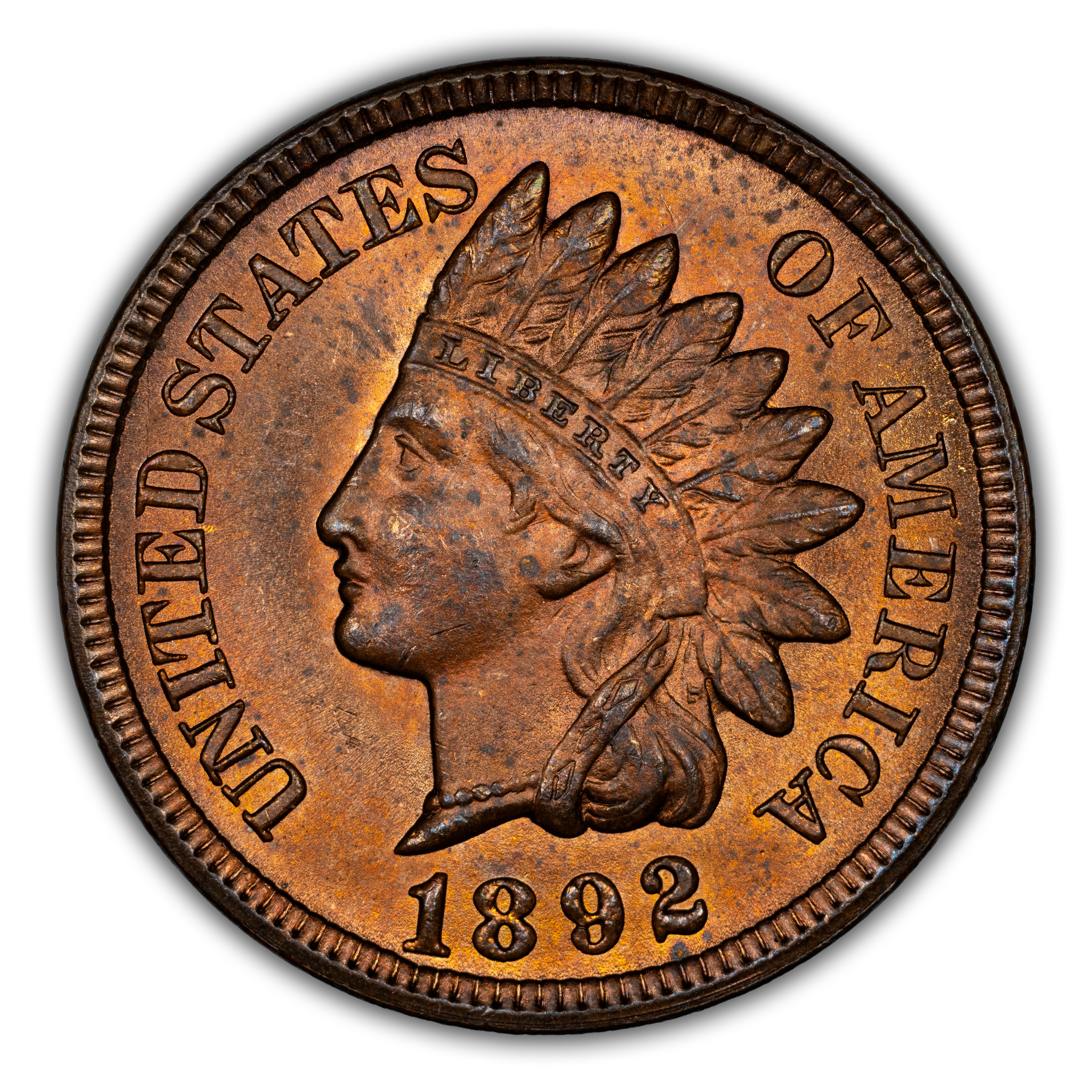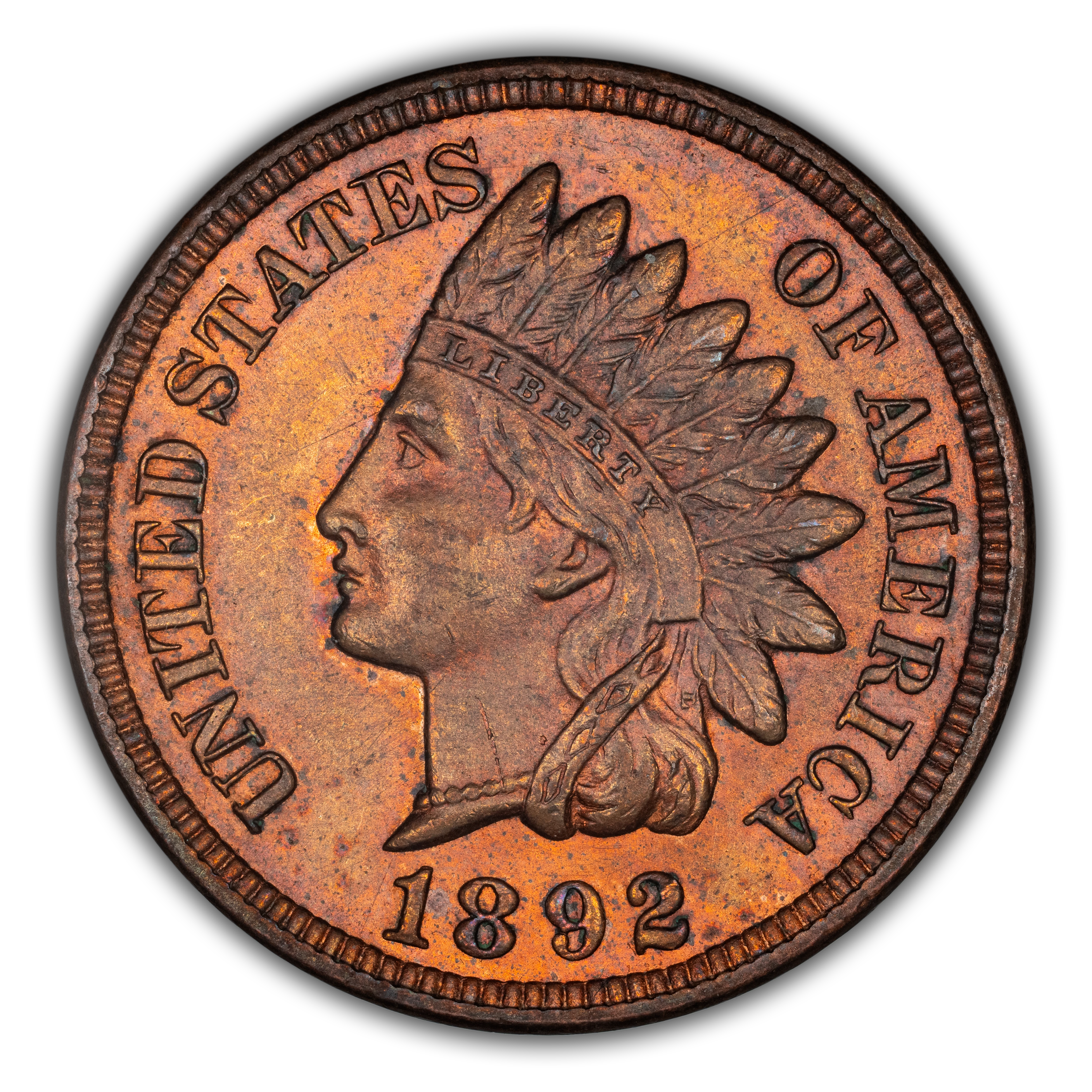 The 1892 Indian Cent is a common issue in the Indian Cent Series. Circulated coins are extremely common and accessible. In order for uncirculated coins to be scarce and valuable, the coins must have partial or complete red coloring. The finest gems can be very rare.