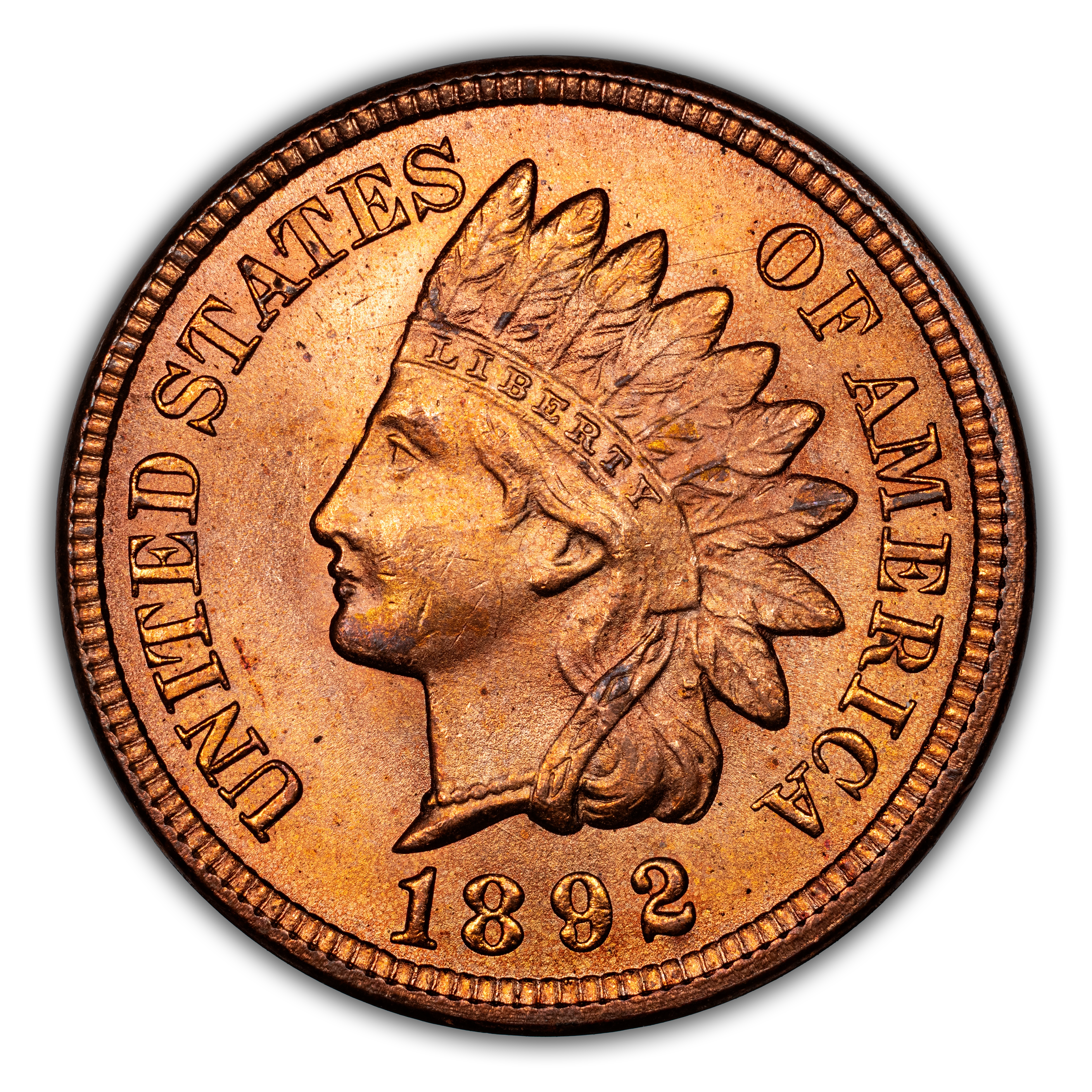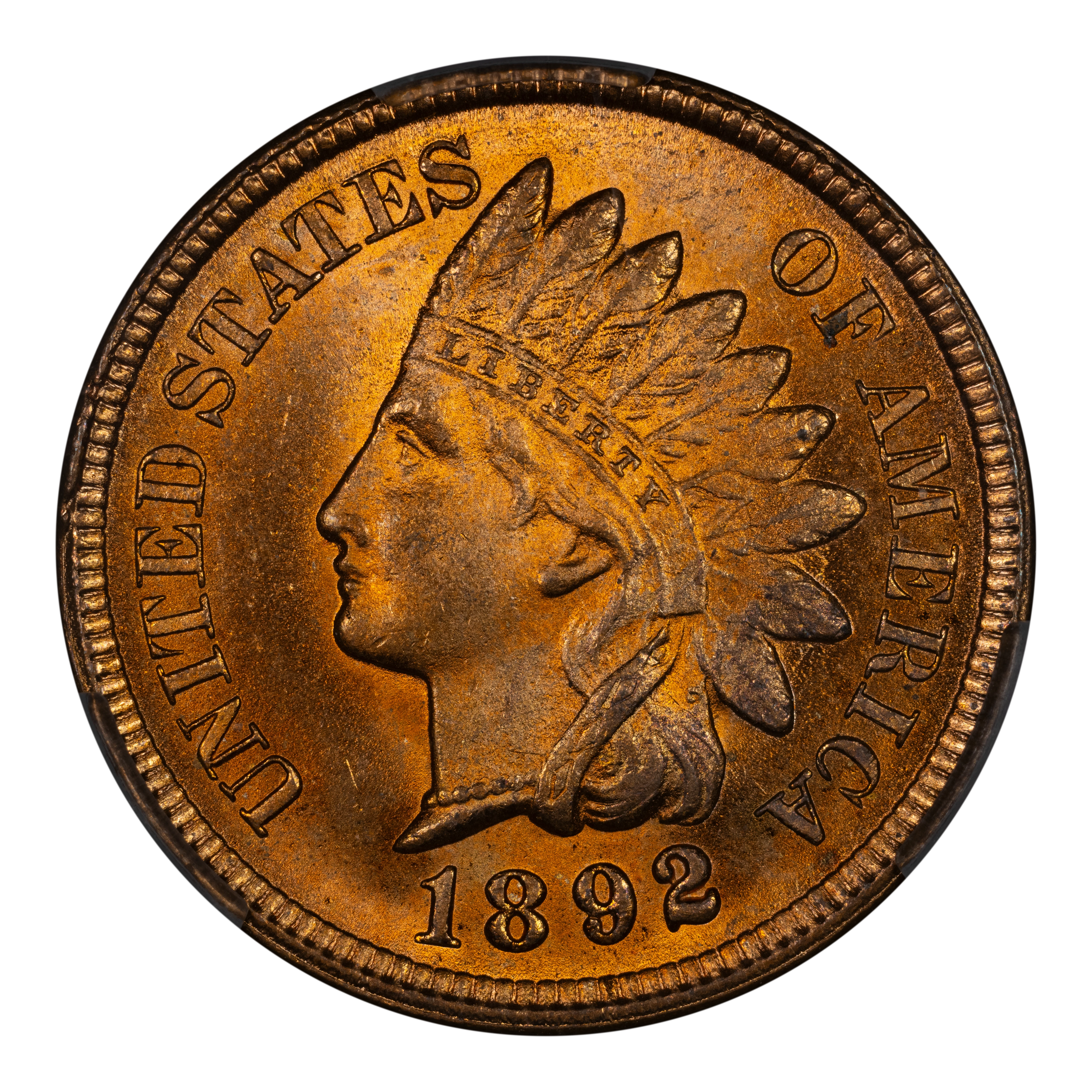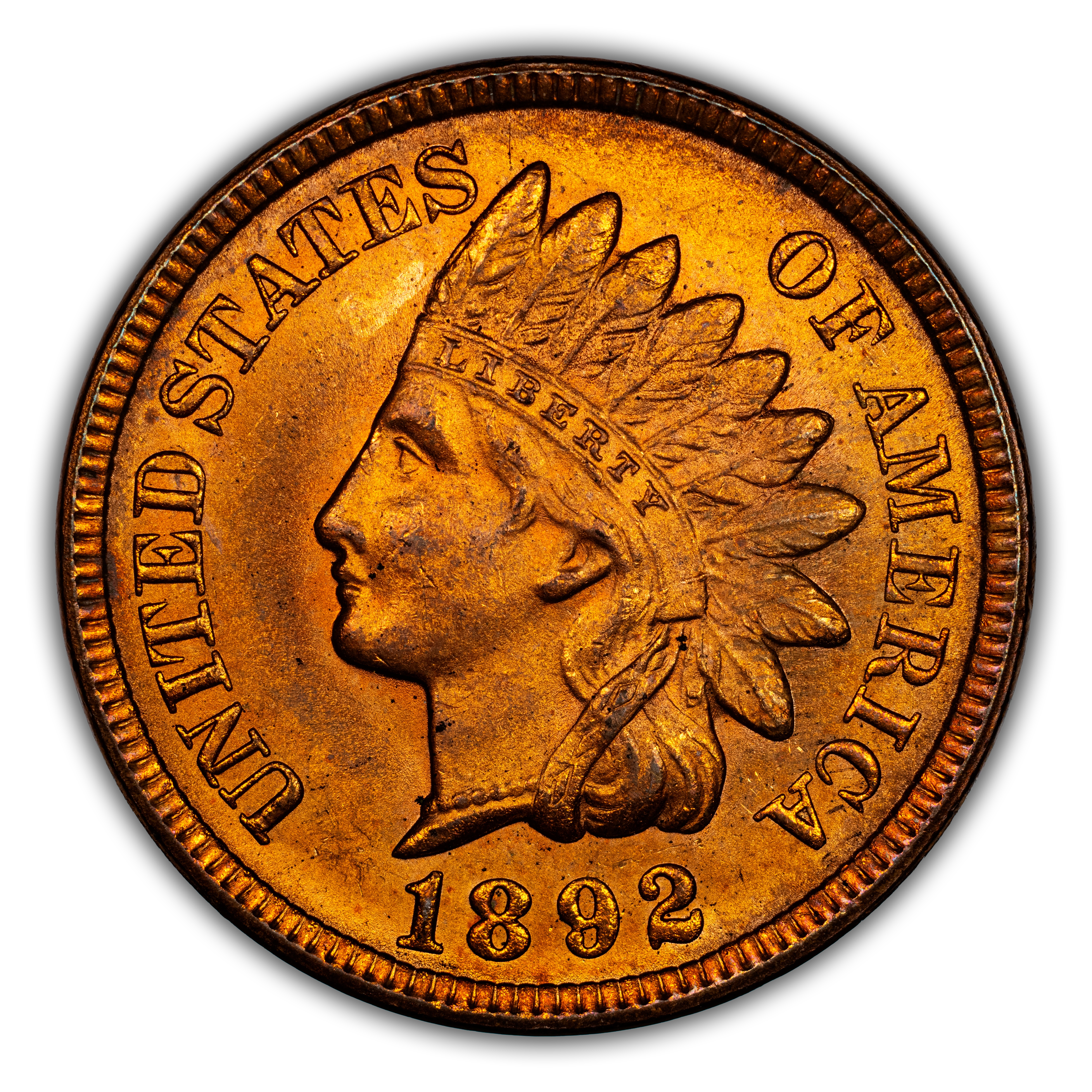 The 1892 Indian Cent is a common issue in the Indian Cent Series. Circulated coins are extremely common and accessible. In order for uncirculated coins to be scarce and valuable, the coins must have partial or complete red coloring. The finest gems can be very rare.