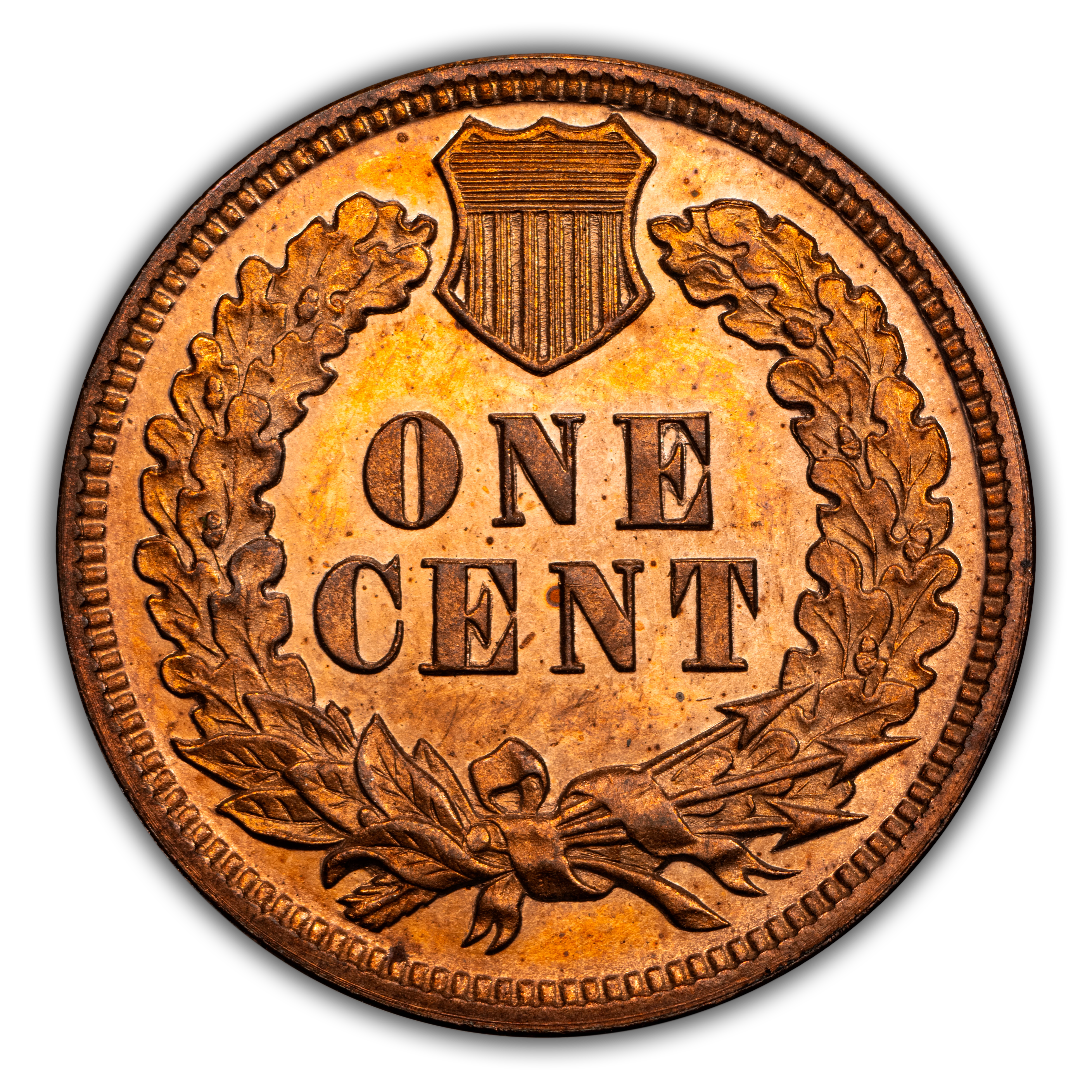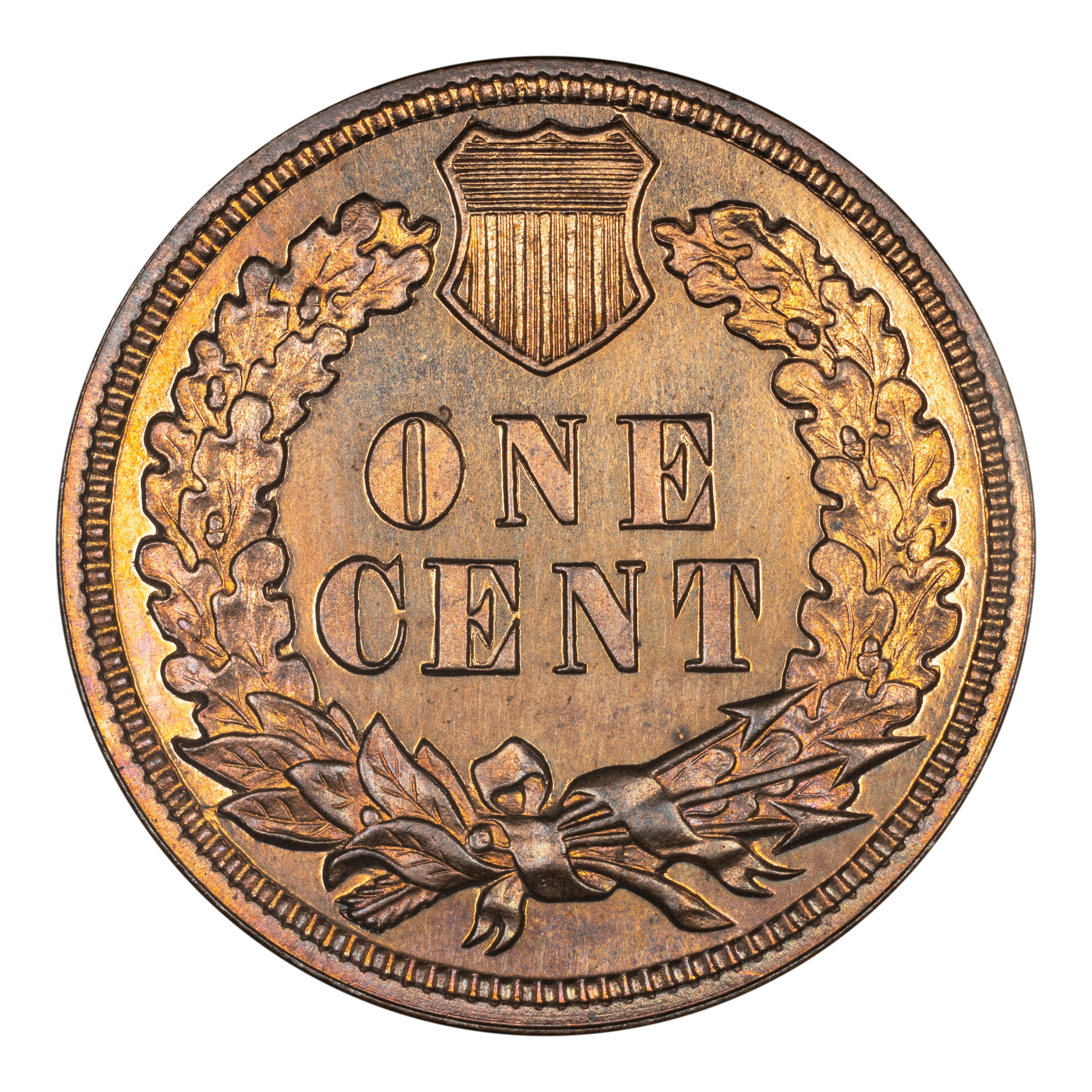 Reverse: The reverse bears the denomination of ONE CENT in the center surrounded by a wreath bearing a ribbon with arrows tied in at the bottom center.