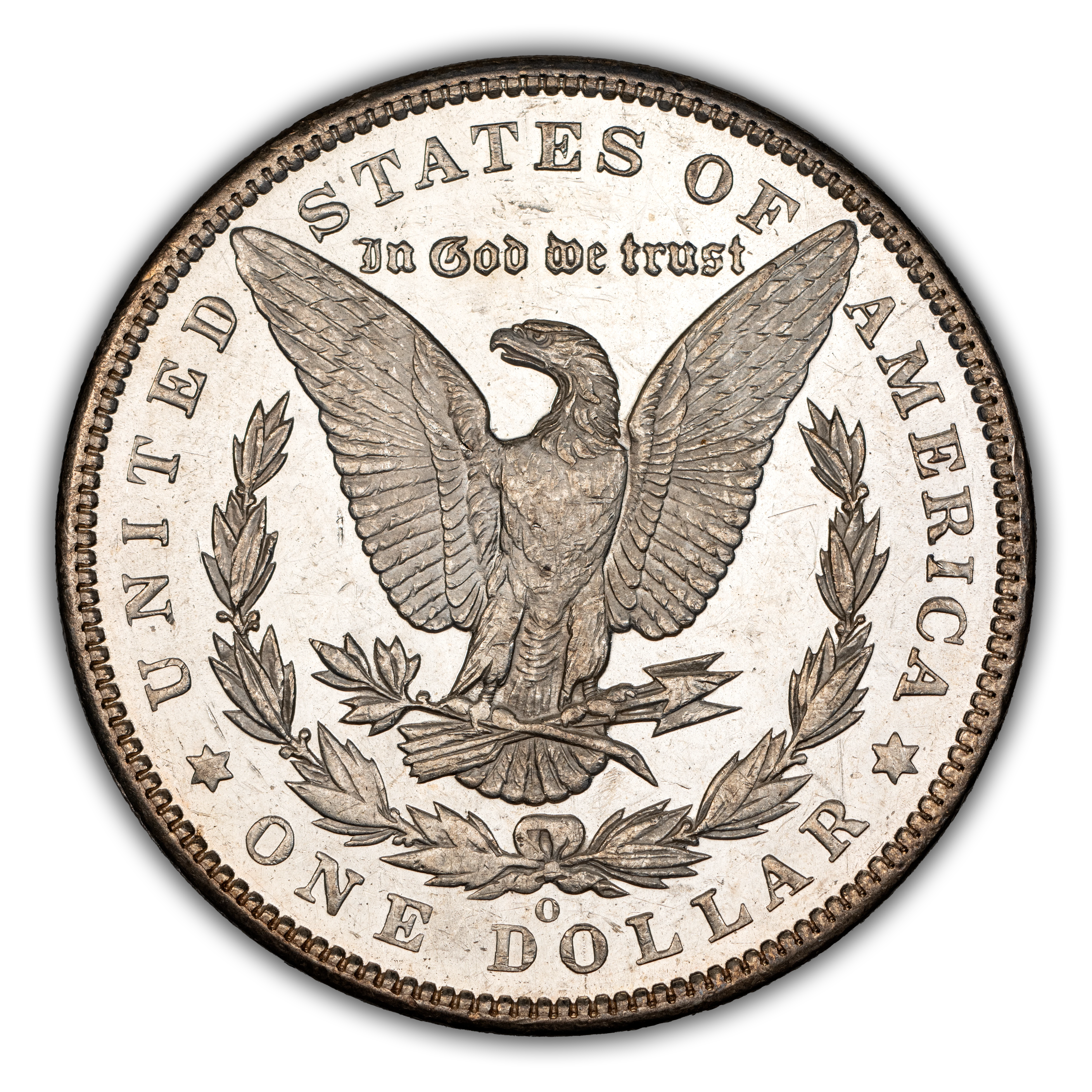 Reverse: The heraldic eagle is centered holding a bunch of arrows and branch surrounded by and olive leaves. The words UNITED STATES OF AMERICA * ONE DOLLAR frame the periphery. Mint mark, if any, appears above the letters DO of DOLLAR.