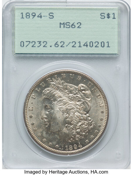 A better date through and through, the 1894-S Morgan dollar is common enough in the lower circulated grades to remain relatively affordable for many collectors. Prices begin leaping upward around the AU level and in the Gem grades, right above MS64, this piece becomes a real rarity. A very small number of examples are known in MS67. PLs and DMPLs are exceedingly scarce, with only a few PLs known in MS65 and none known for that grade among the DMPLs.