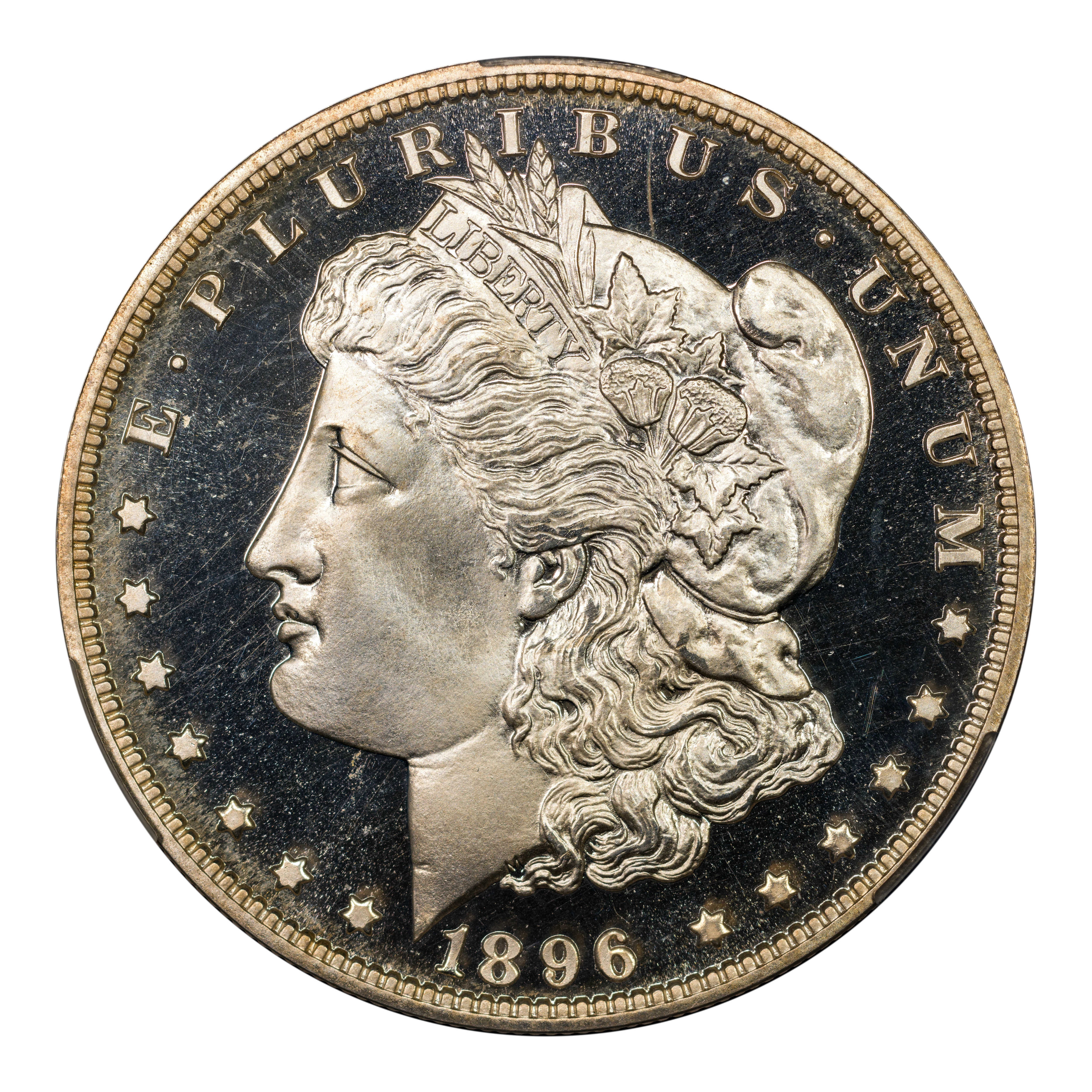 Most 1896 proof Morgan dollars exhibit exceptional strike and quality, with the majority showcasing either cameo or deep cameo contrast. Gems are scarce, but examples grading PR67 or higher are rare. A tiny number are found as high as PR69, and these higher-end pieces are coveted by registry set builders.