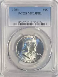 Reverse: The heraldic eagle holding the symbolic olive branches and arrows is centered in the design with the words UNITED STATES OF AMERICA and HALF DOLLAR around the periphery. A ribbon in the eagle's beak bears the motto E PLURIBUS UNUM. 13 stars appear in the field above the eagle's head. Mintmark, if any, is positioned under the eagles tail feathers, above the D in DOLLAR.