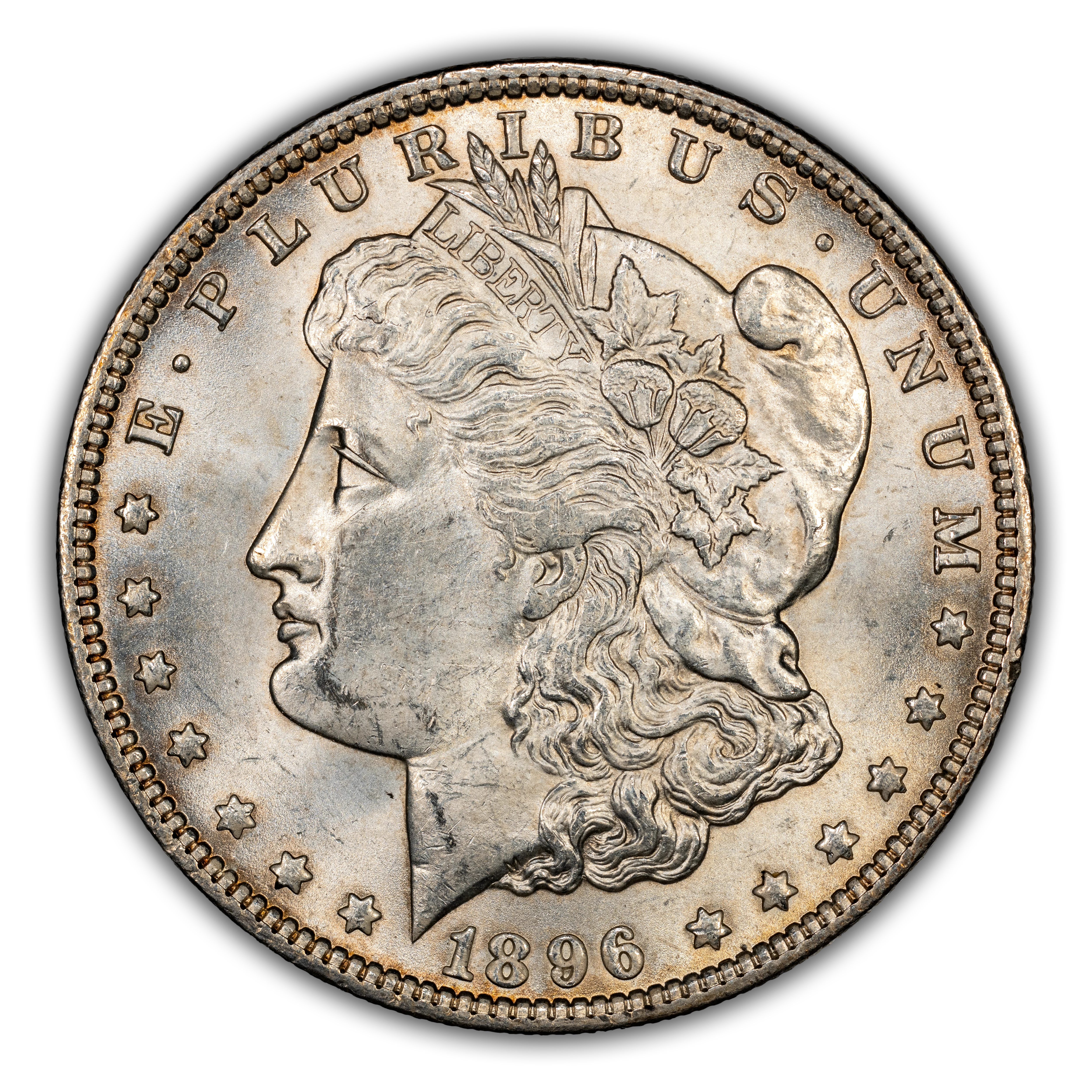 The 1896 Morgan dollar from the Philadelphia Mint is extremely common in all grades through about MS66, scarce in MS67, and extremely rare in MS68. PLs and DMPLs are scarcer than their typical MS counterparts but are by no means rare as a group for this date. The 1896 Morgan dollar is generally found well struck though often with less-than-frosty luster.