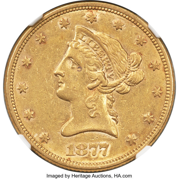Reverse: Heraldic eagle holding arrows and branch in its claws is centered in the design with the words UNITED STATES OF AMERICA * TEN D. around the periphery.