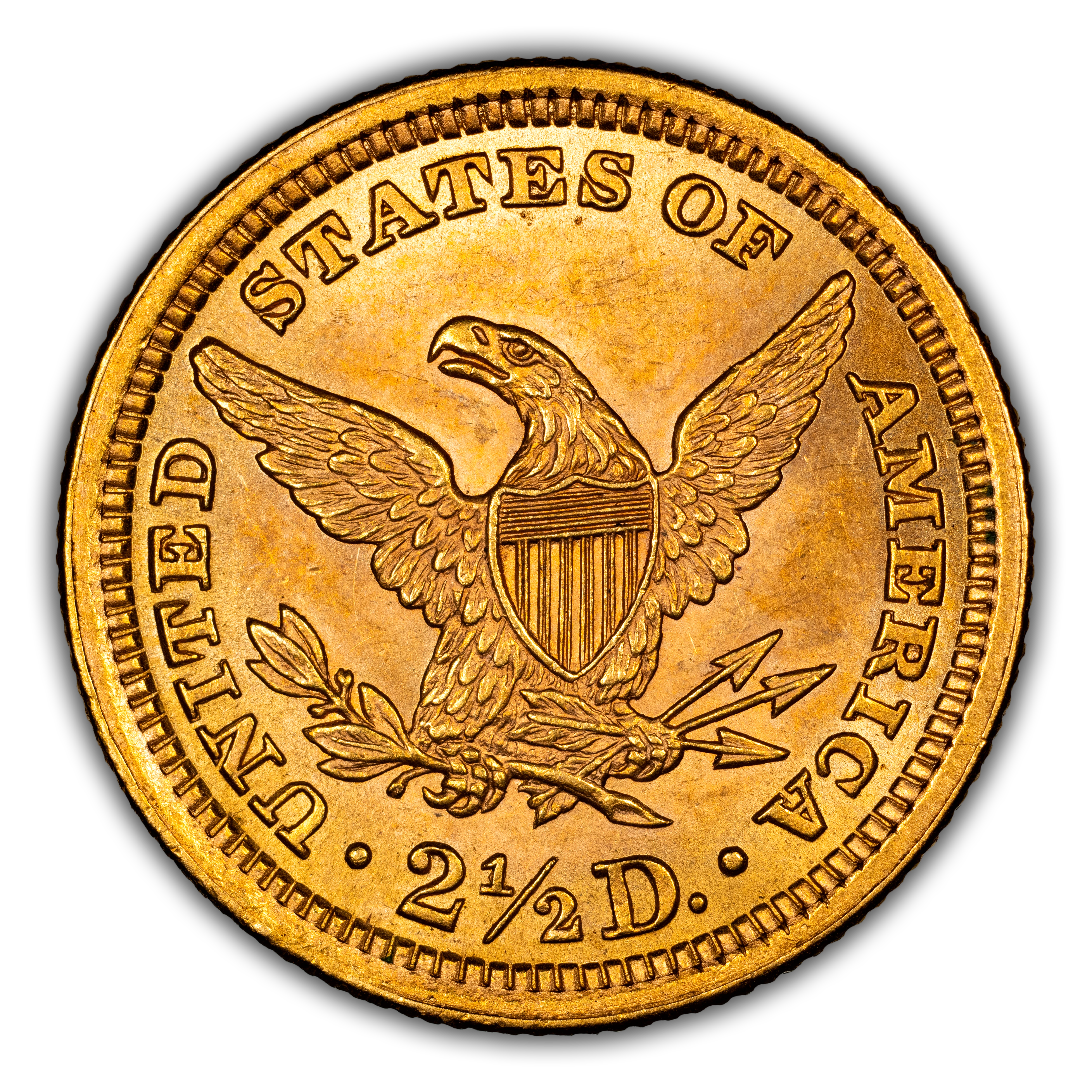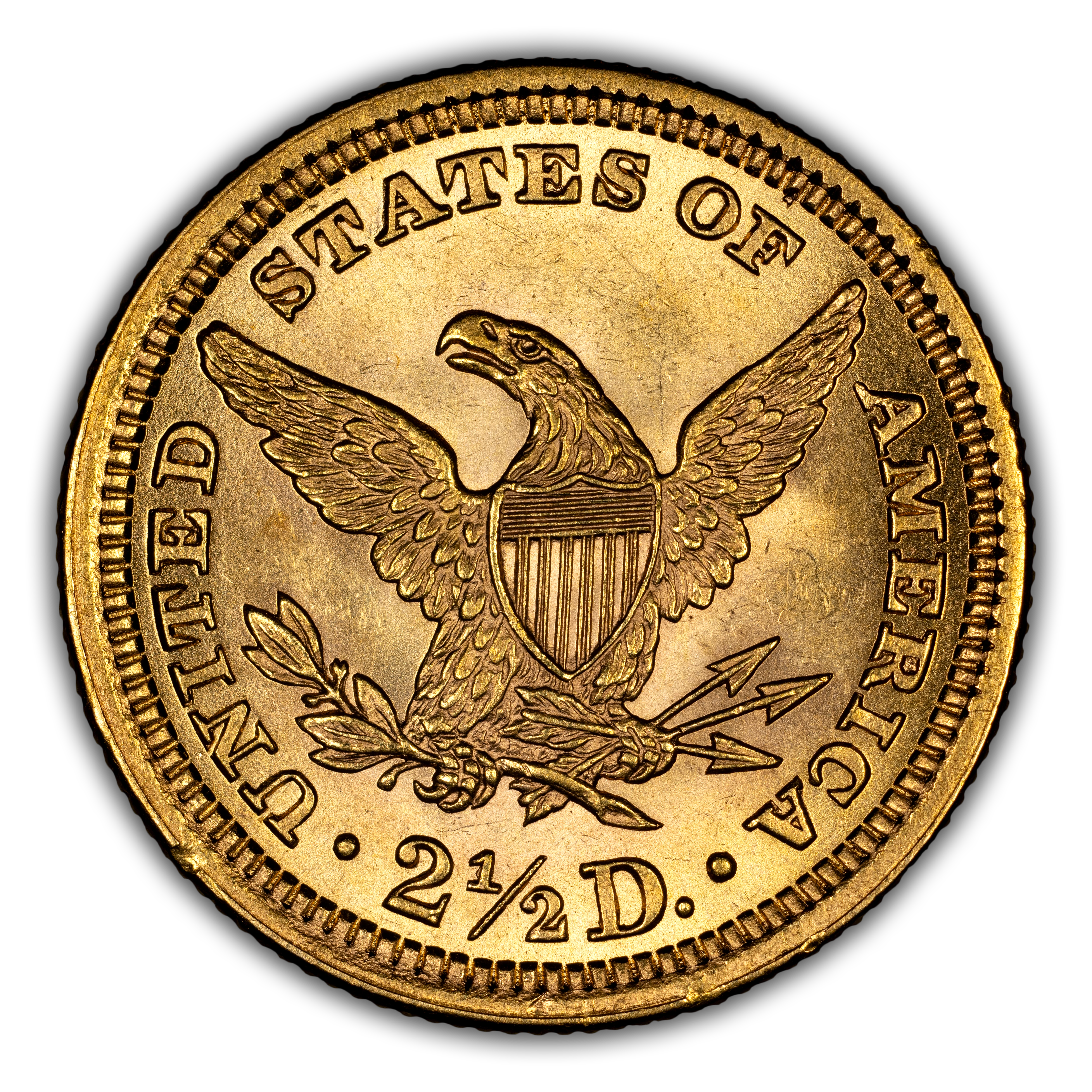 Reverse: Heraldic eagle holding arrows and branch in its claws is centered in the design with the words UNITED STATES OF AMERICA * @ 2 1/2 D. around the periphery. Mintmark (if any) is located under the eagle's claws.