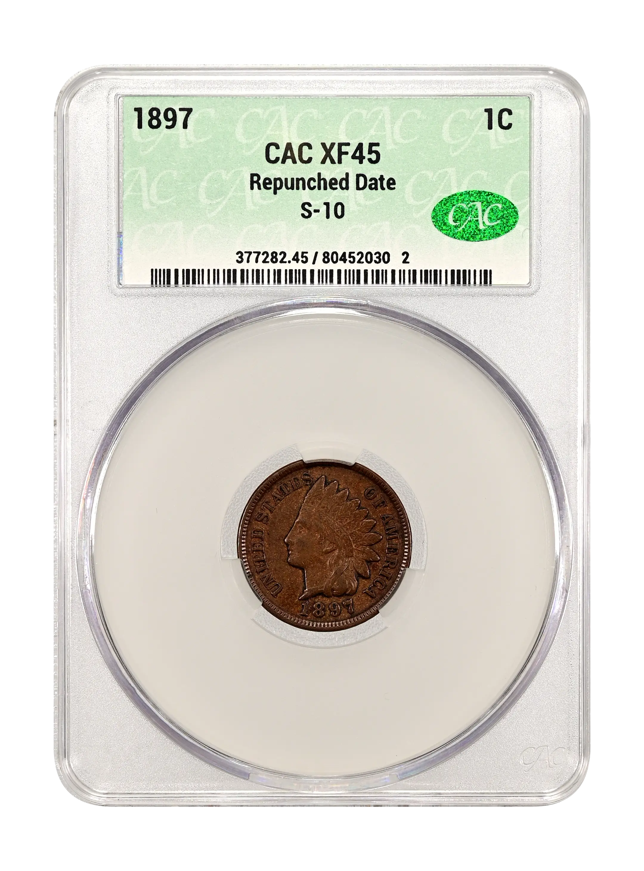 1897 Repunched Date 1c S-10 BN CAC XF45BN