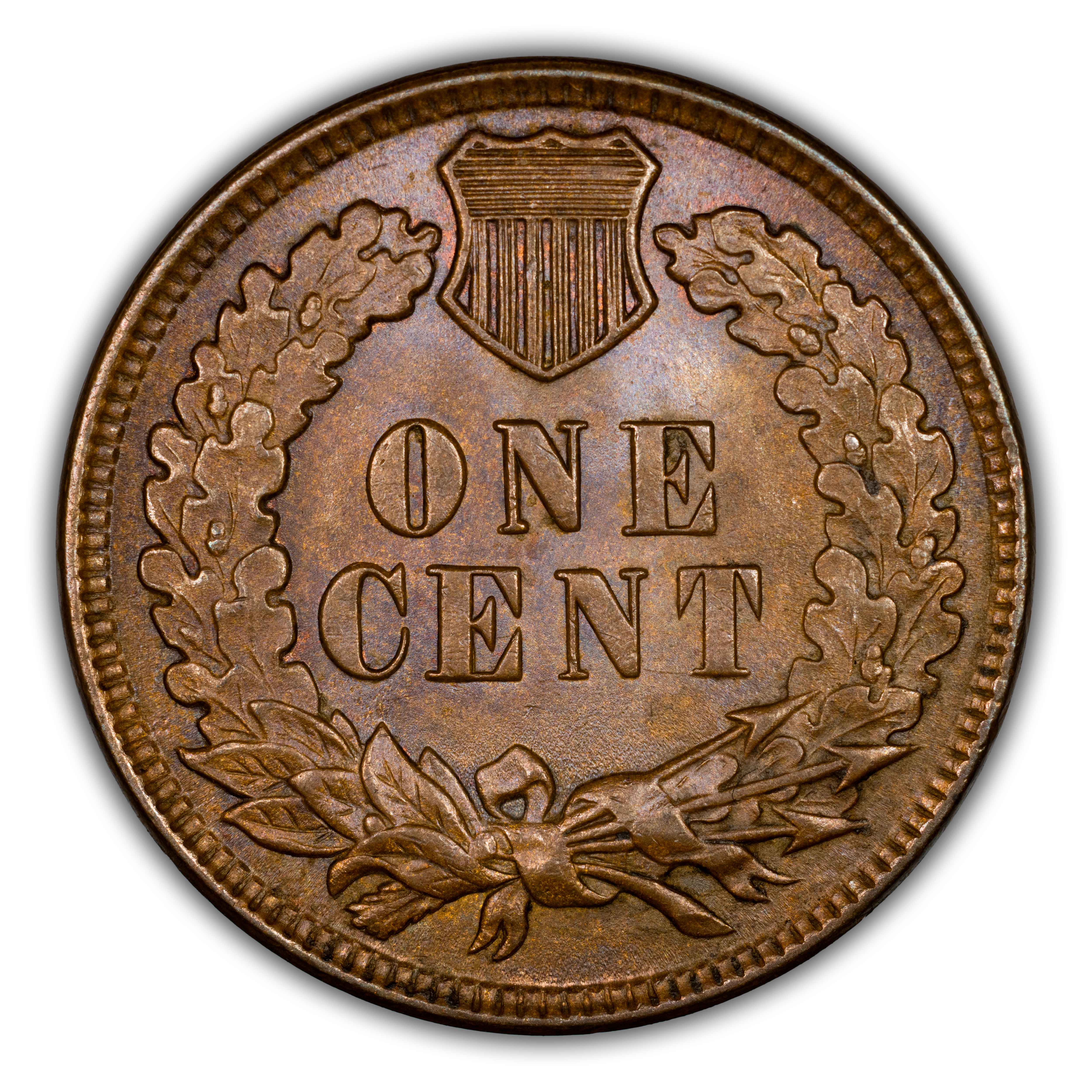 Reverse: The reverse bears the denomination of ONE CENT in the center surrounded by a wreath bearing a ribbon with arrows tied in at the bottom center.