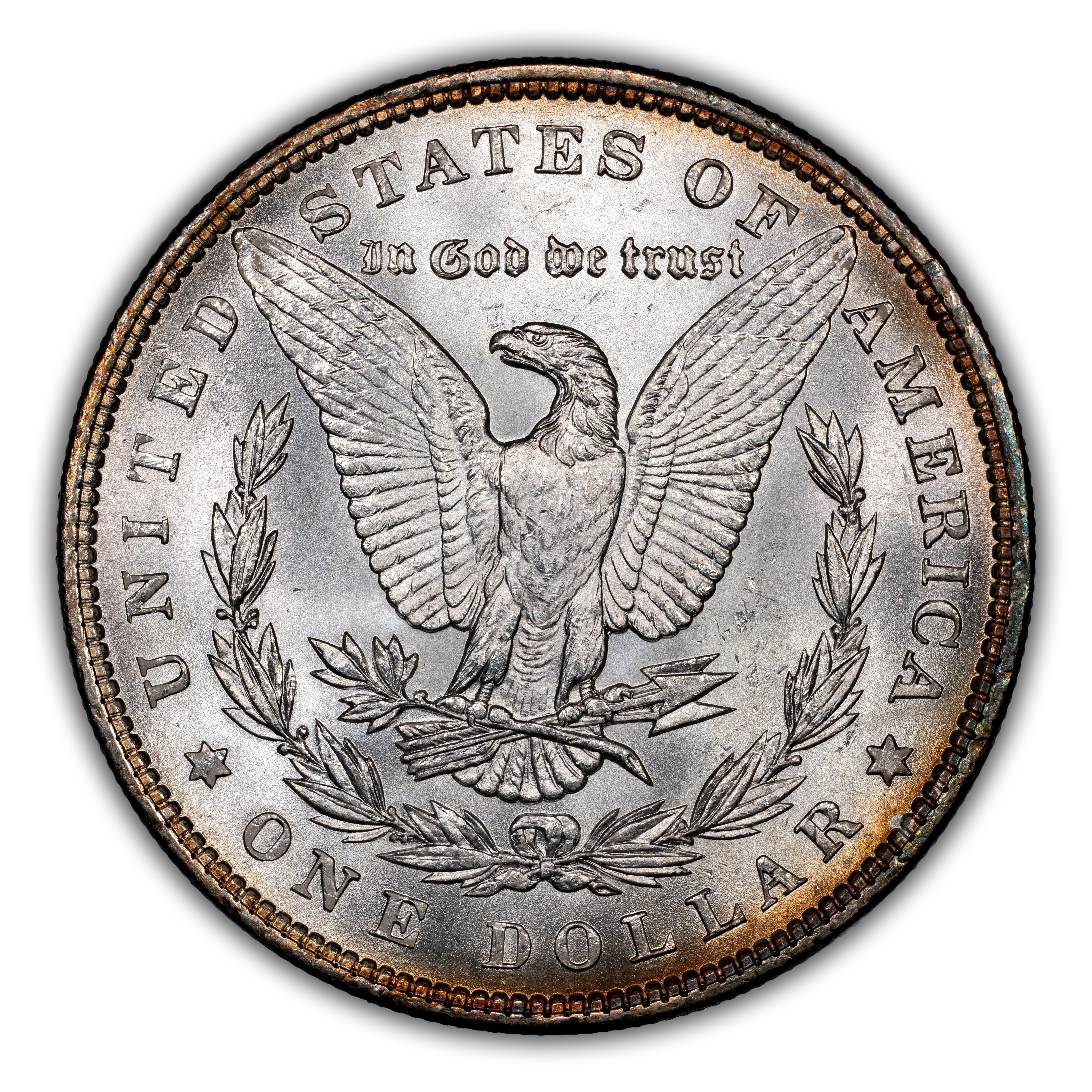 Reverse: The heraldic eagle is centered holding a bunch of arrows and branch surrounded by and olive leaves. The words UNITED STATES OF AMERICA * ONE DOLLAR frame the periphery. Mint mark, if any, appears above the letters DO of DOLLAR.