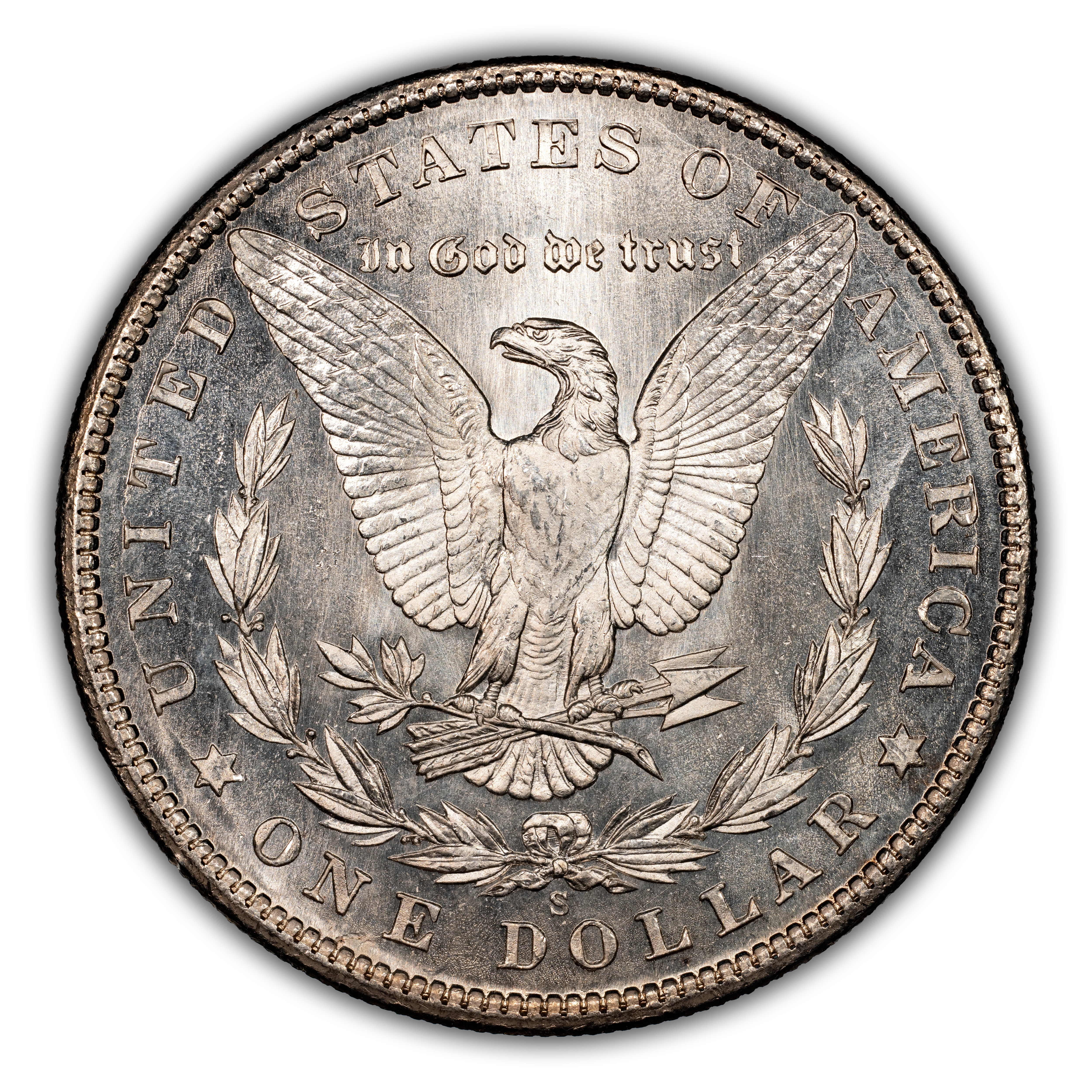 Reverse: The heraldic eagle is centered holding a bunch of arrows and branch surrounded by and olive leaves. The words UNITED STATES OF AMERICA * ONE DOLLAR frame the periphery. Mint mark, if any, appears above the letters DO of DOLLAR.