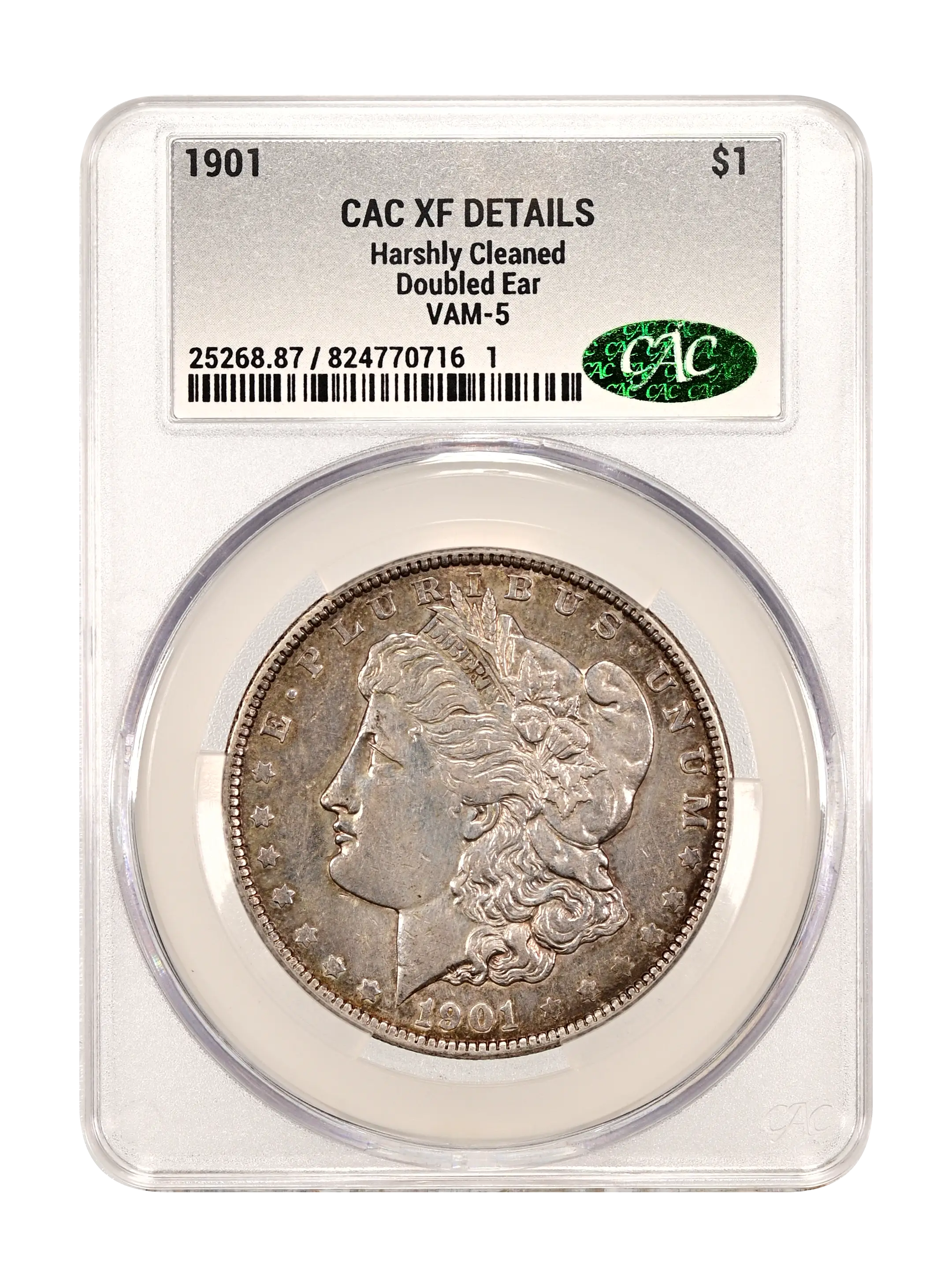 1901 Doubled Ear $1 VAM-5 CAC XF DETAILS