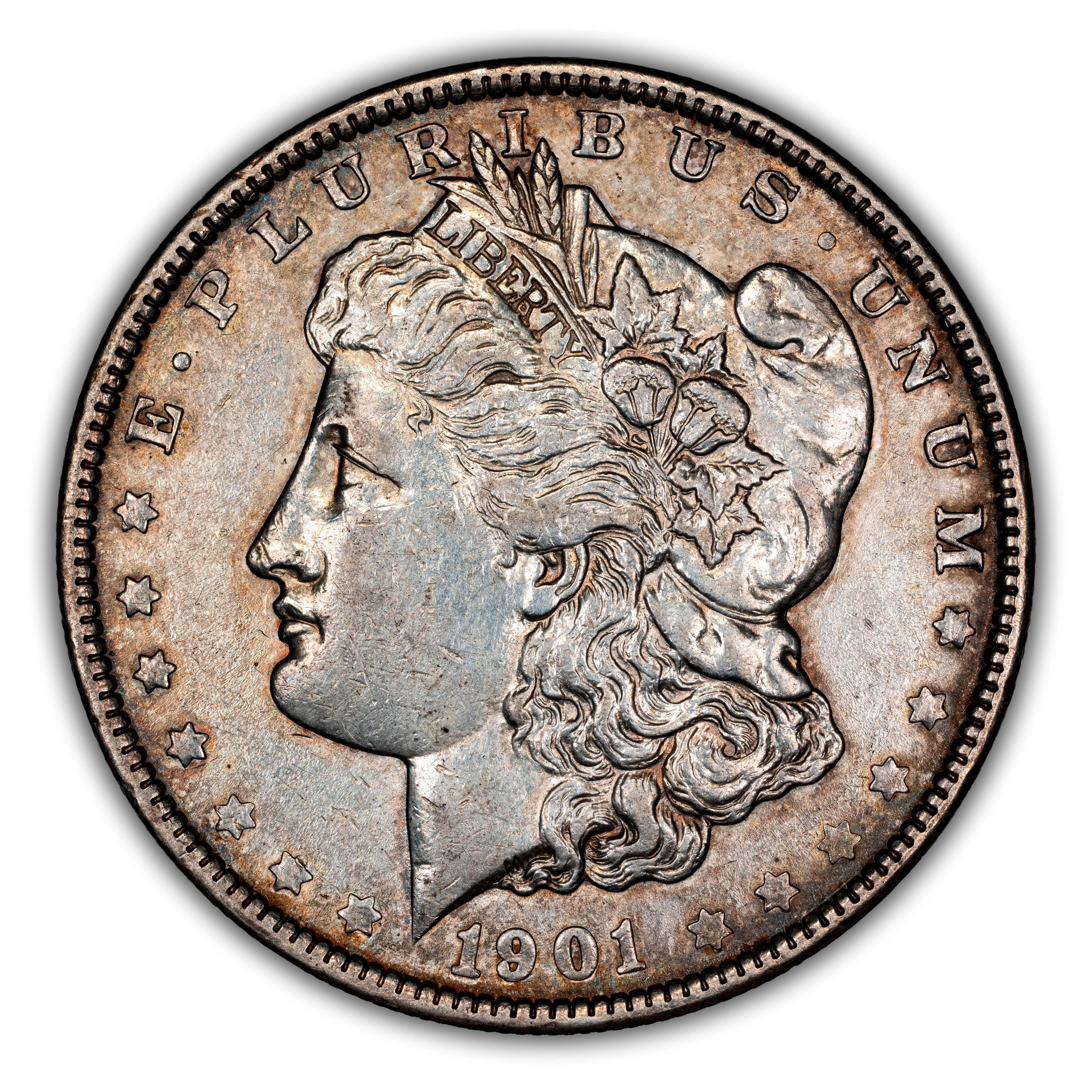 1901 Morgan Silver Dollar. VAM-5. Hot 50 Variety. Doubled Die Obverse, Ear, Doubled Die Reverse, Olive. MS-61 (PCGS). CAC.
