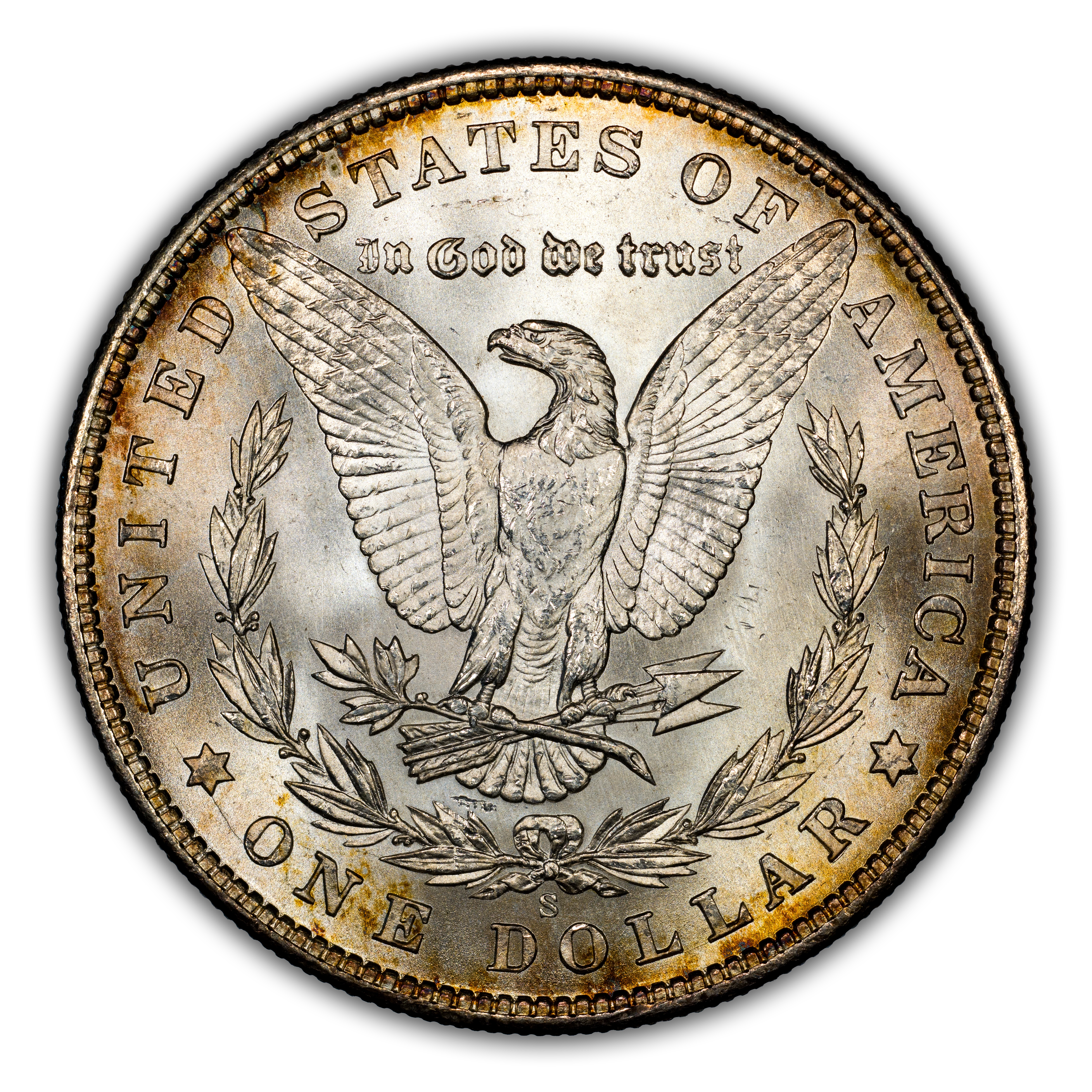 Reverse: The heraldic eagle is centered holding a bunch of arrows and branch surrounded by and olive leaves. The words UNITED STATES OF AMERICA * ONE DOLLAR frame the periphery. Mint mark, if any, appears above the letters DO of DOLLAR.
