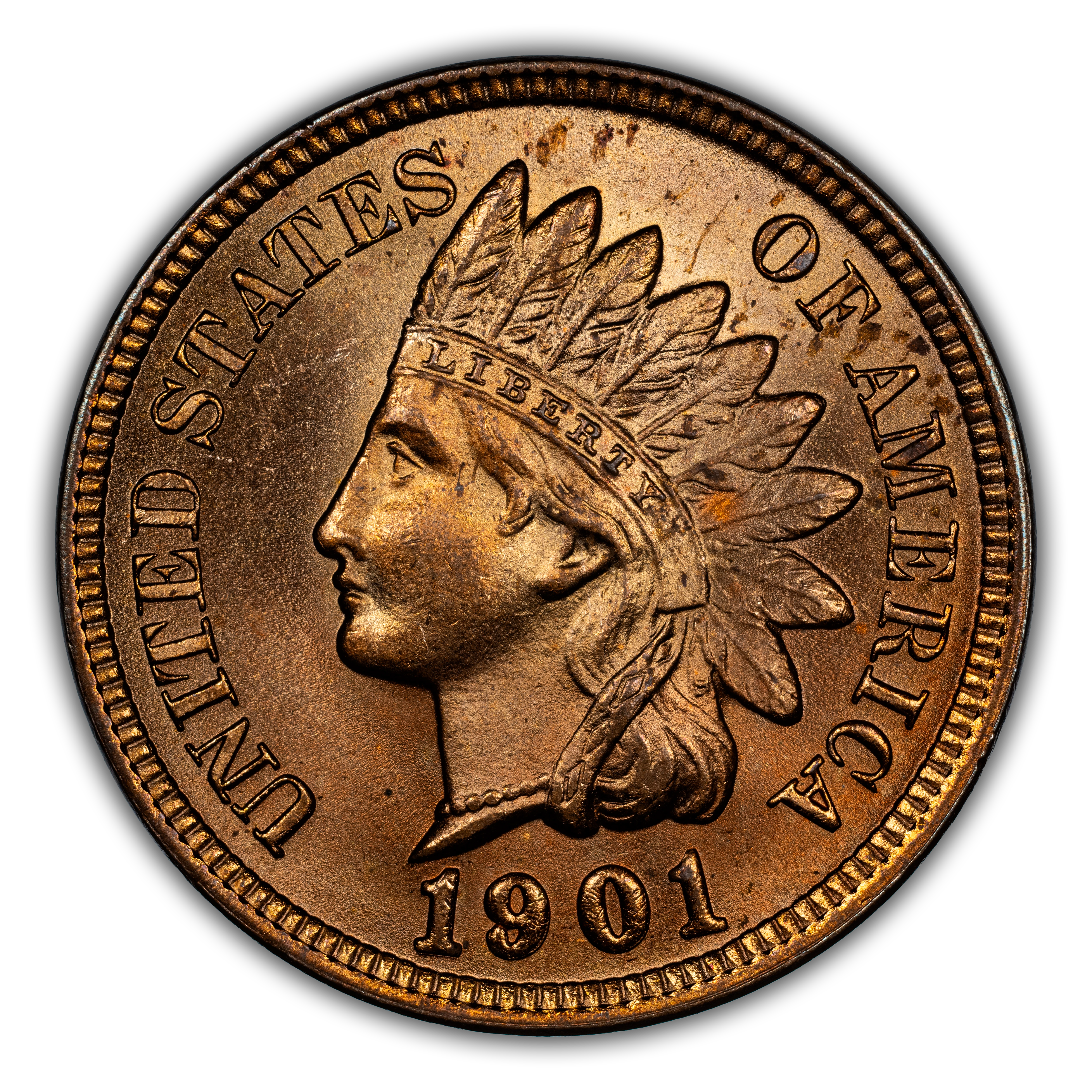 The 1901 Indian Cent is a common issue in the Indian Cent Series that would make a great type coin because of its high mintage, accessibility and affordability. Circulated coins are extremely common and accessible. In order for uncirculated coins to be scarce and valuable there must be some, if not complete, red coloring and in gem condition.