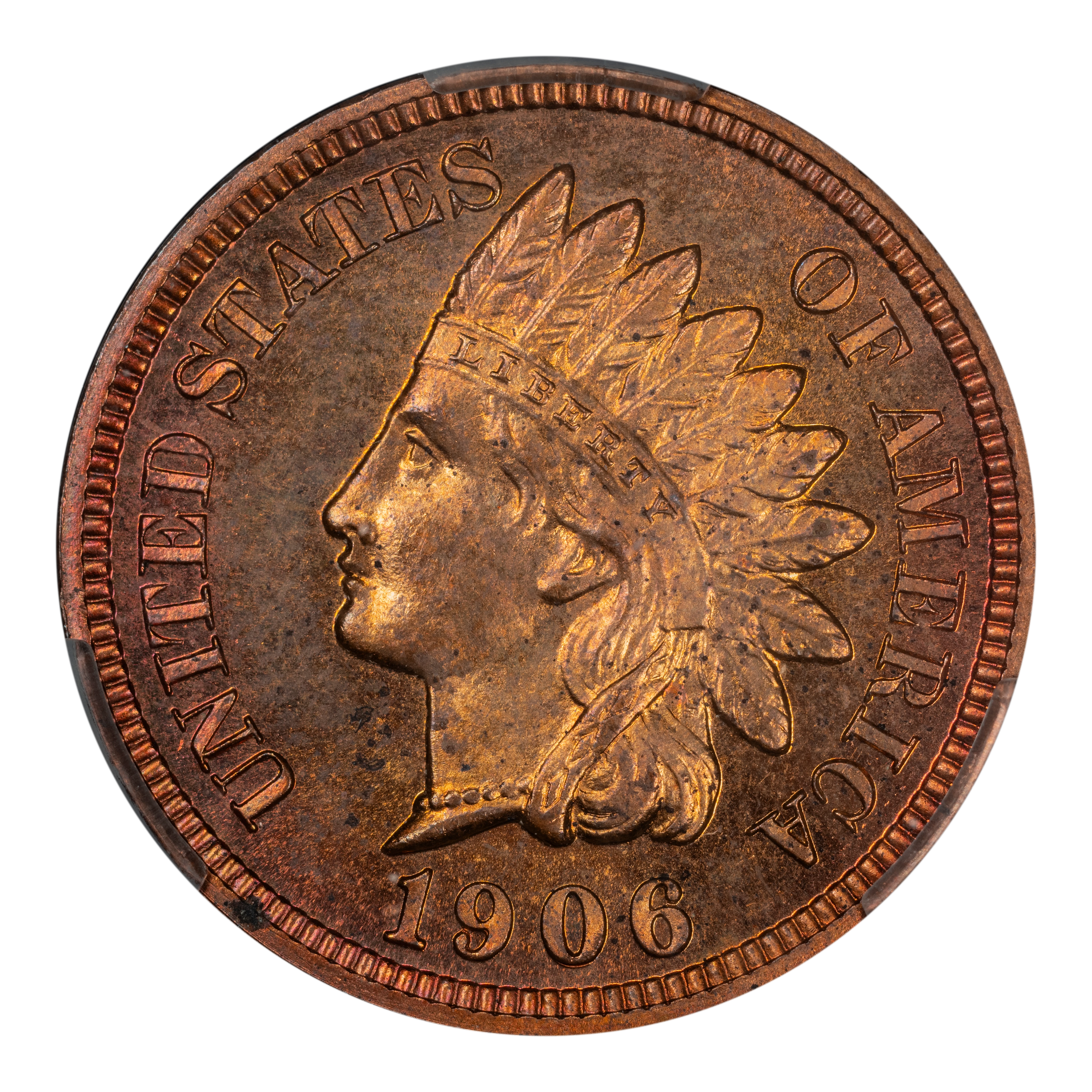 The mintage drops a little bit to 1,725 for the 1906 proof Indian Cent; yet, it is still too high to be anything more than a type coin. Very common with the brown color designation. Gradually more scarce in red-brown especially in PR66 or finer. Red gems are rare and any cameo is rare as well. Look for attractively toned brown pieces or blazing red surfaces as those are the most desirable and are not too tough to find.