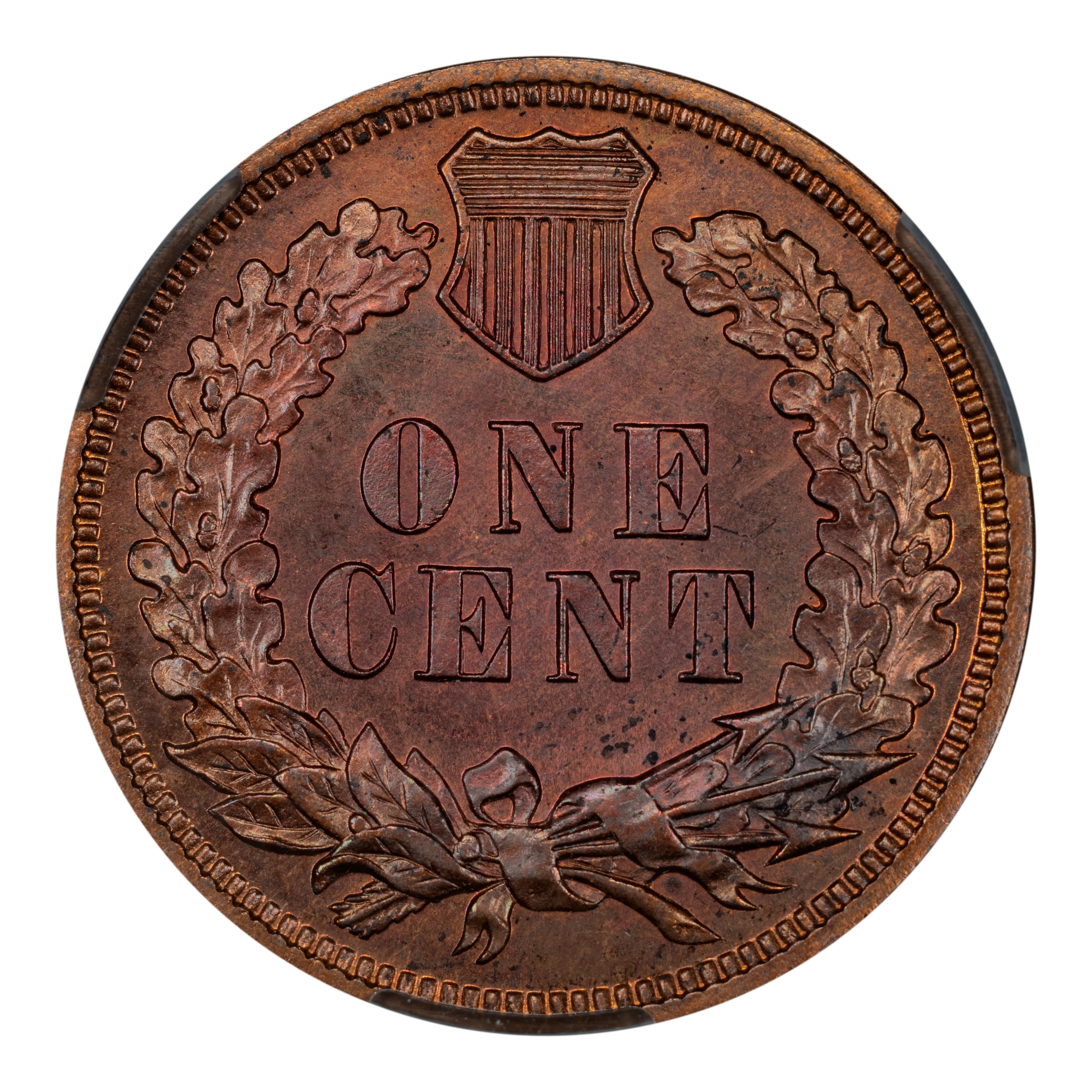 Reverse: The reverse bears the denomination of ONE CENT in the center surrounded by a wreath bearing a ribbon with arrows tied in at the bottom center.