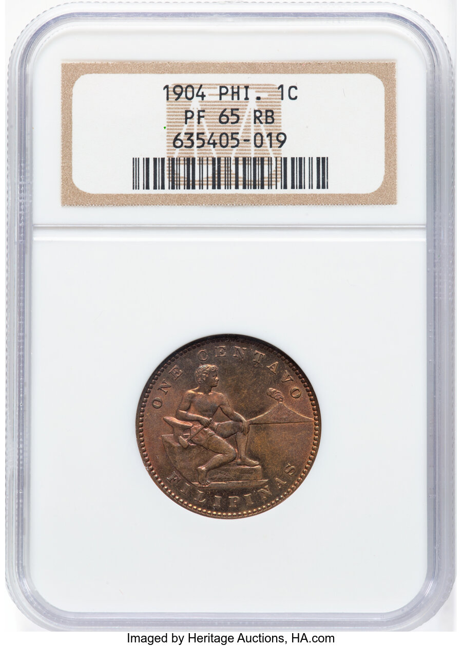 PHILIPPINES. Mint Error -- Double Struck Reverse -- Centavo, 1906. Philadelphia Mint. PCGS PROOF-65 Brown Gold Shield.