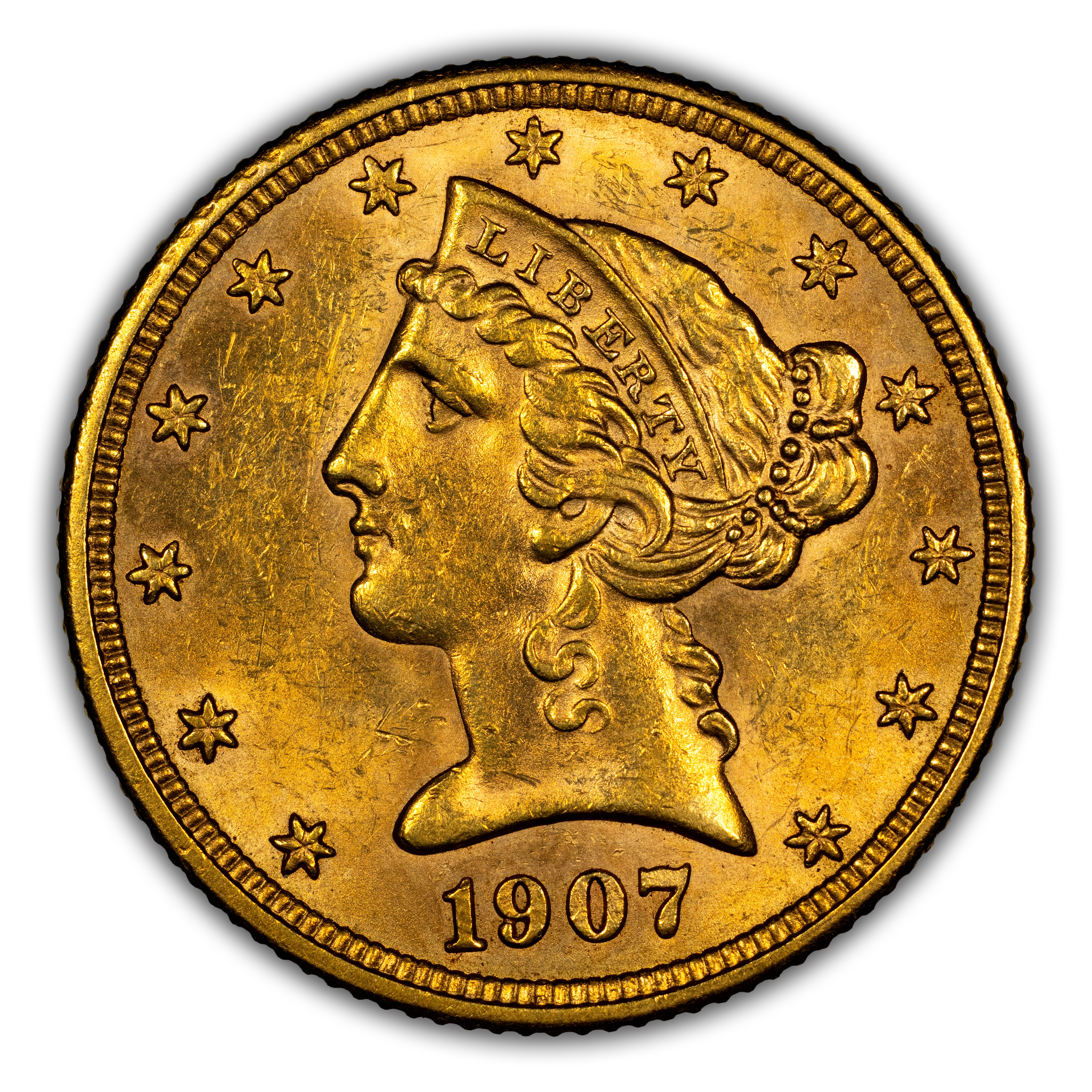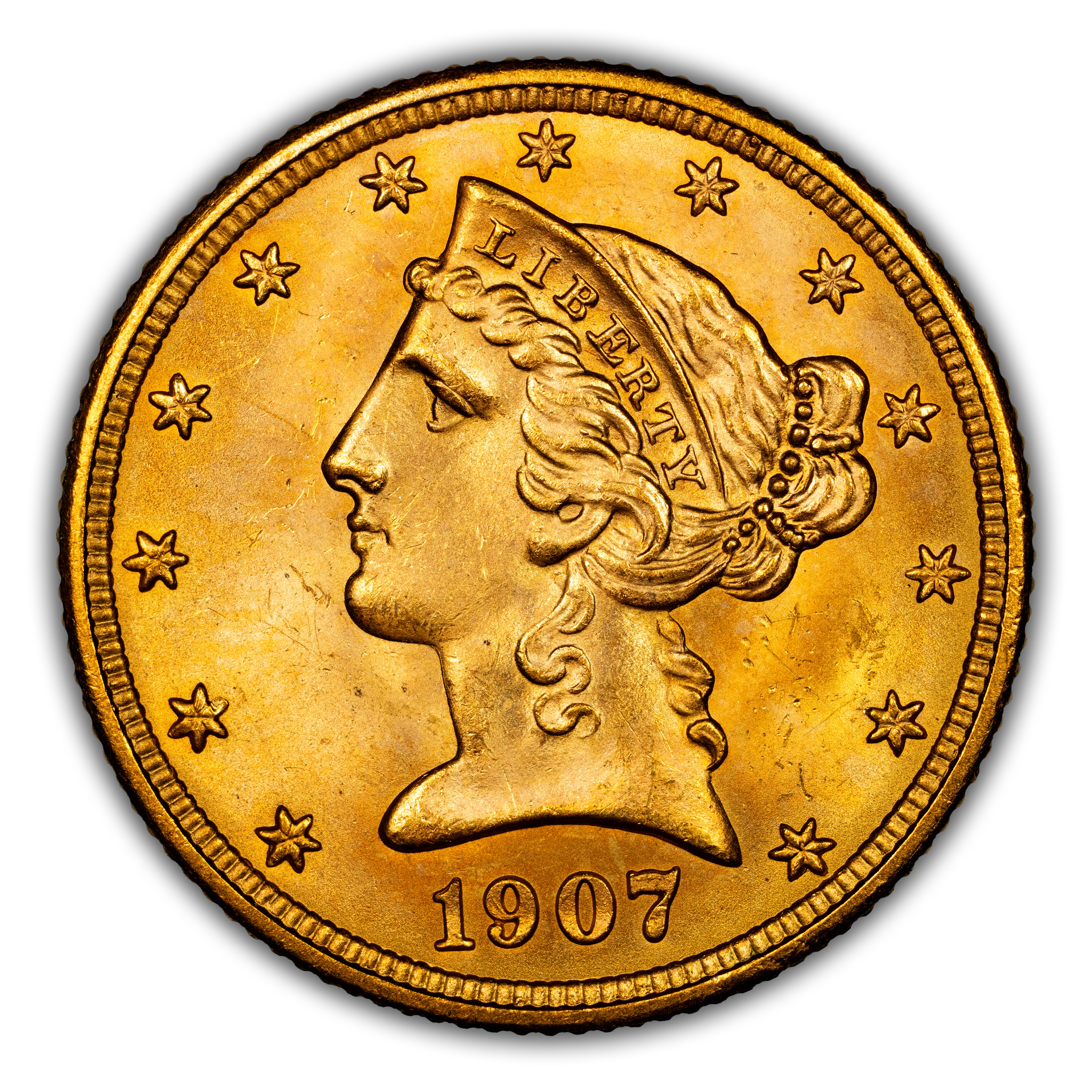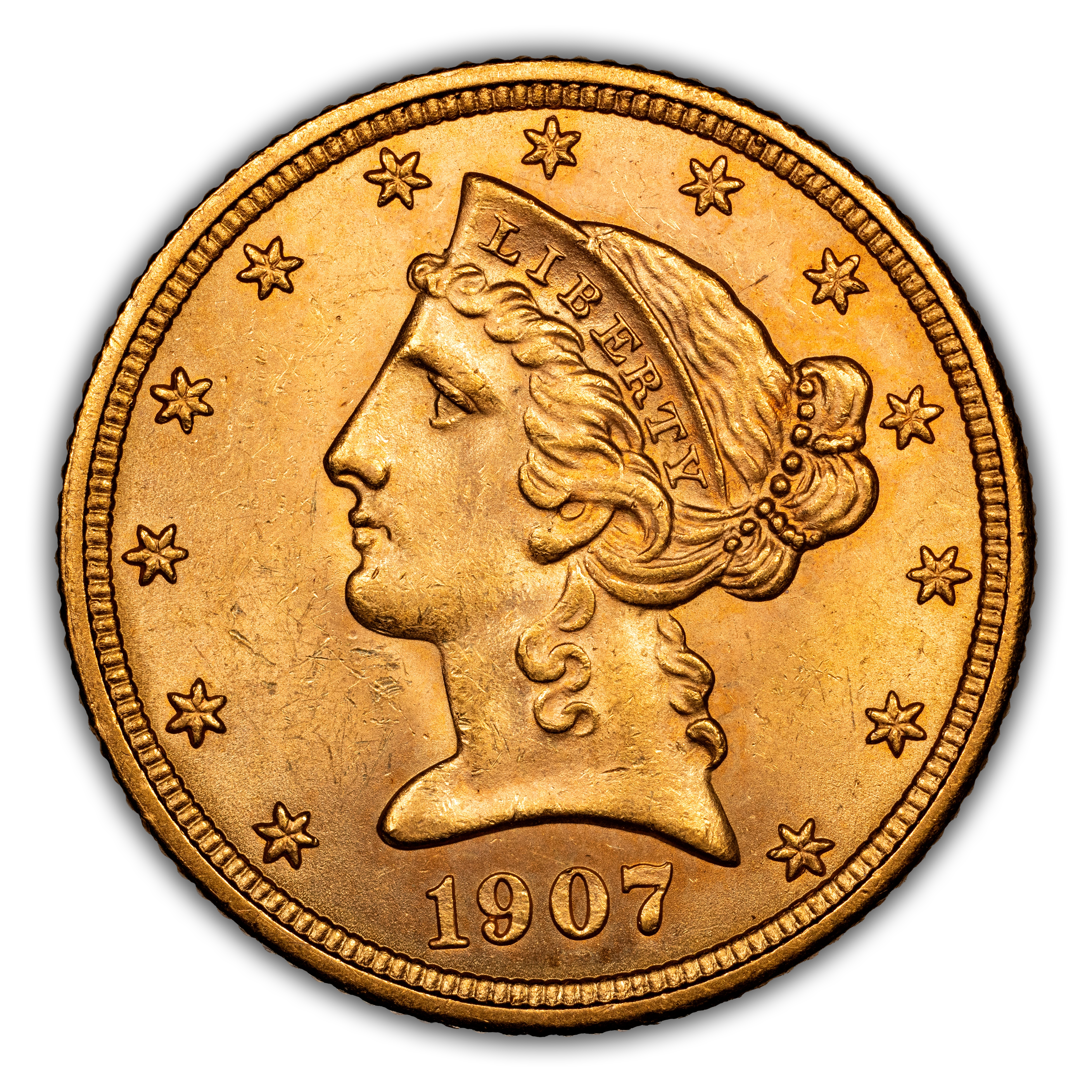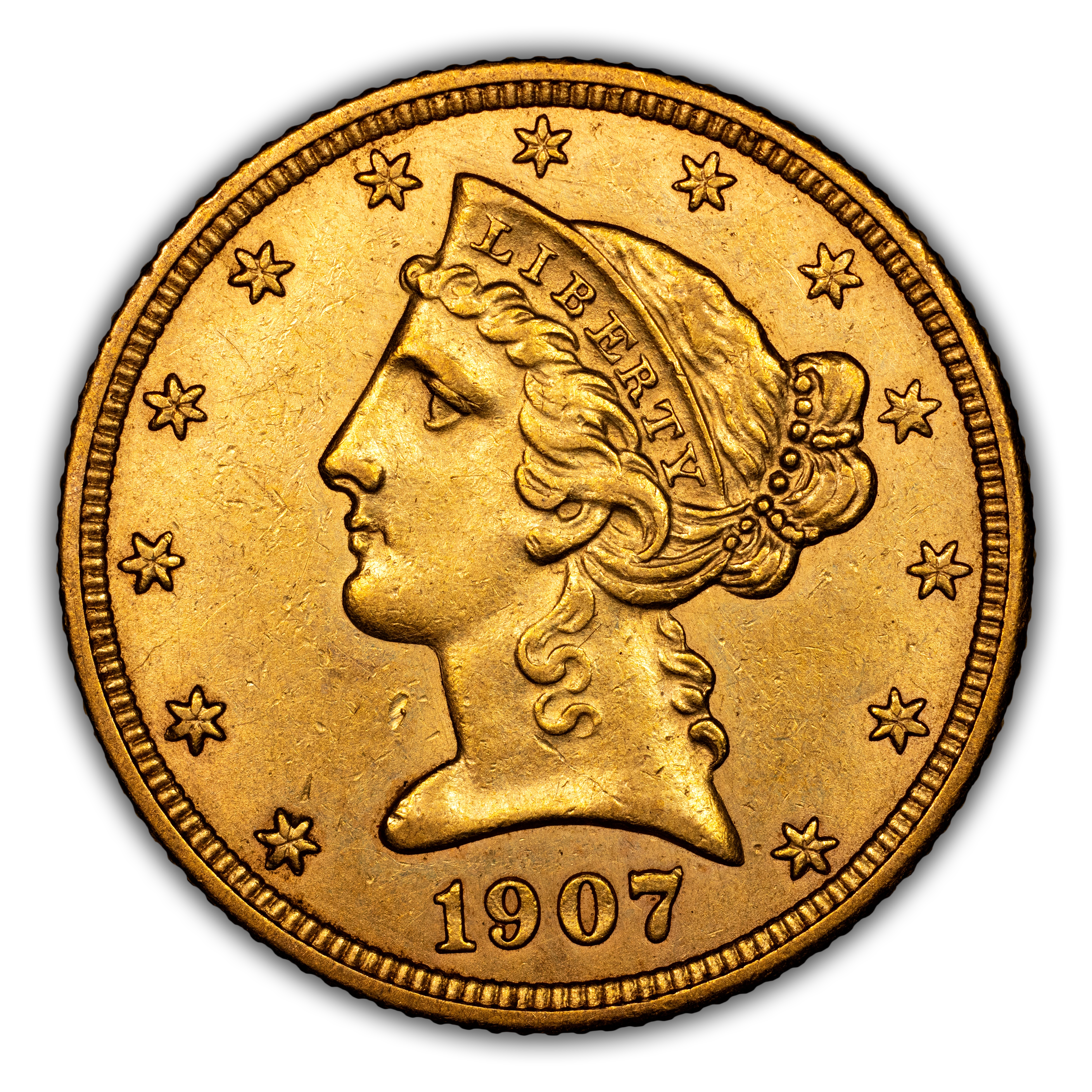 Reverse: Heraldic eagle holding arrows and branch in its claws is centered in the design with the words UNITED STATES OF AMERICA * FIVE D. around the periphery. Mintmark (if any) is located under the eagle's claws.