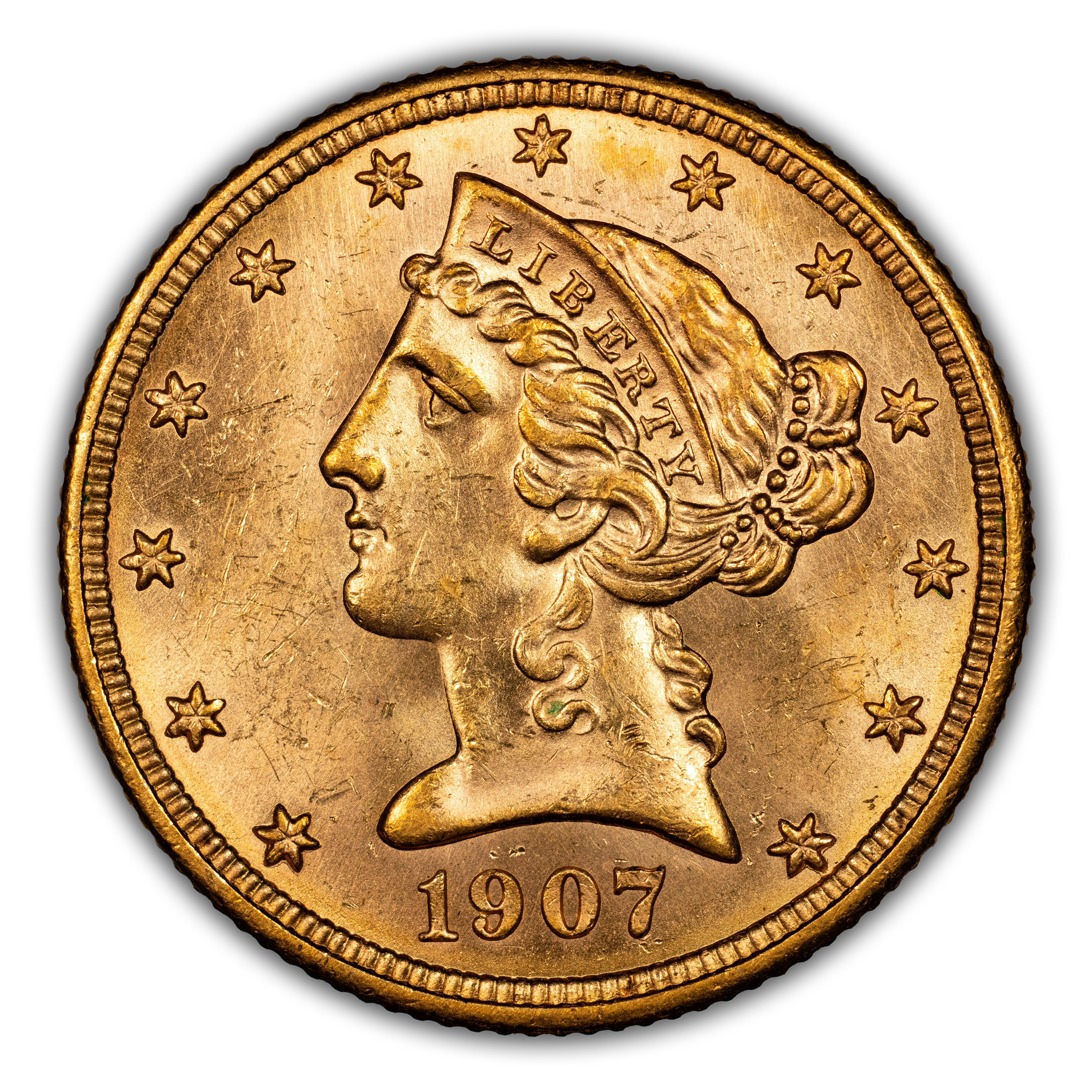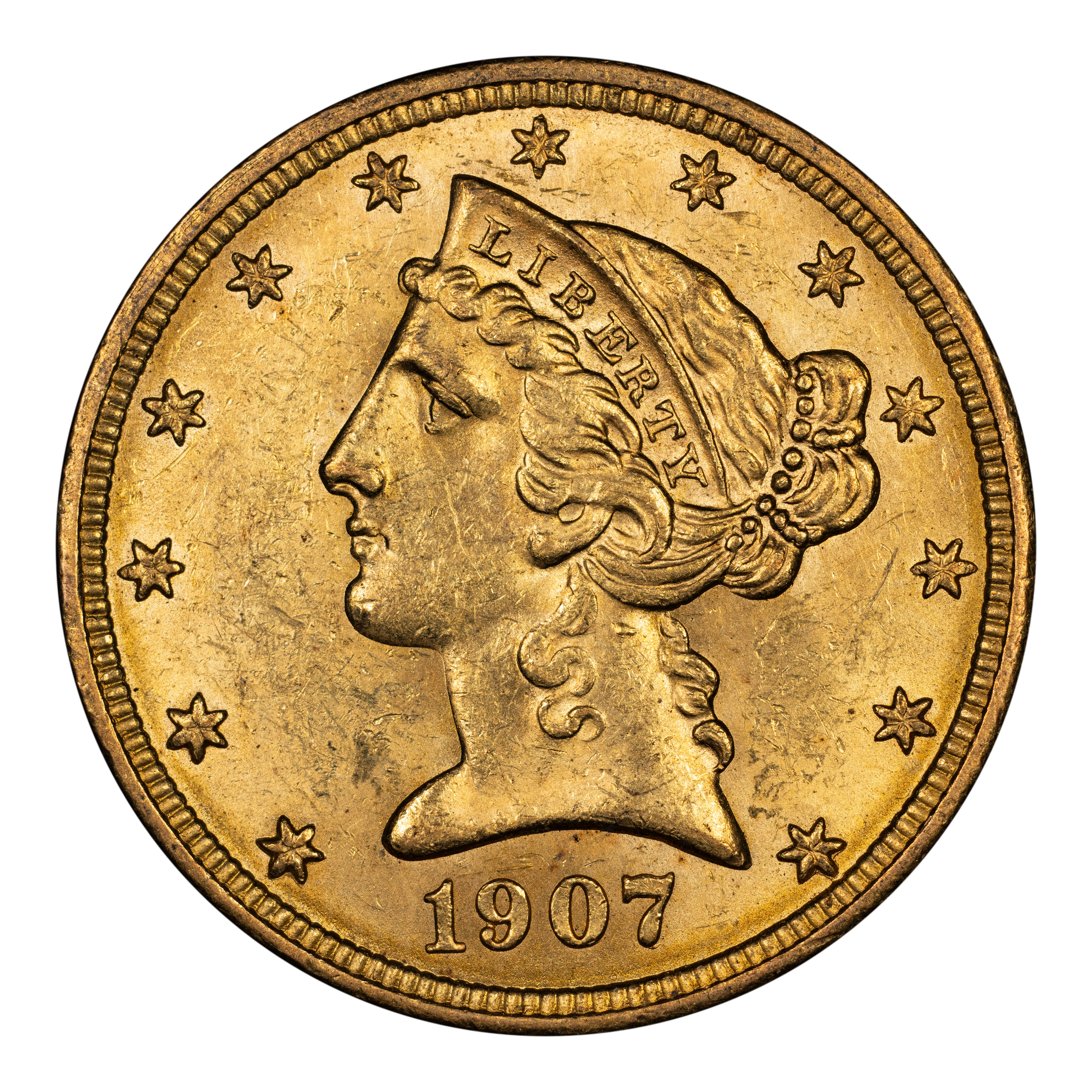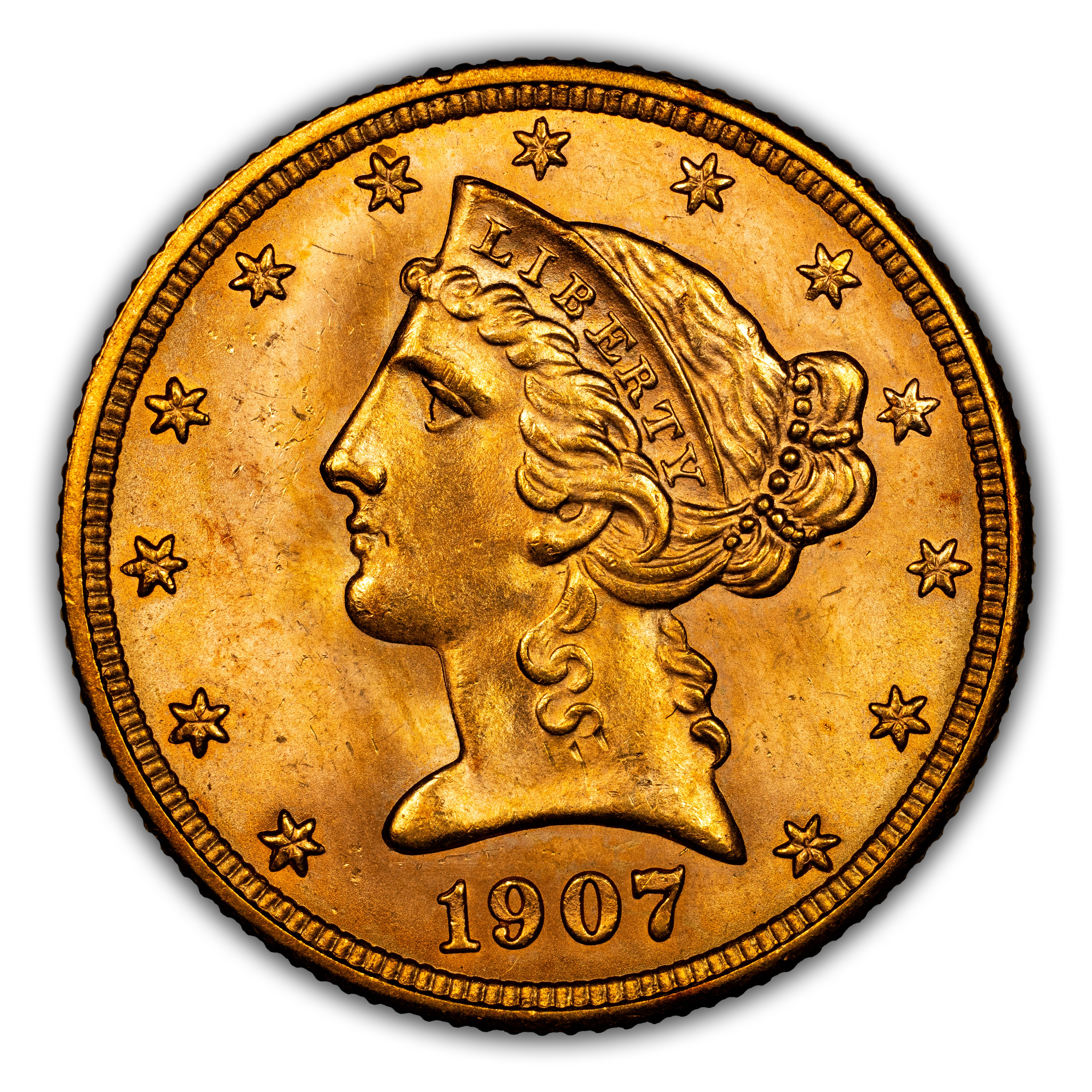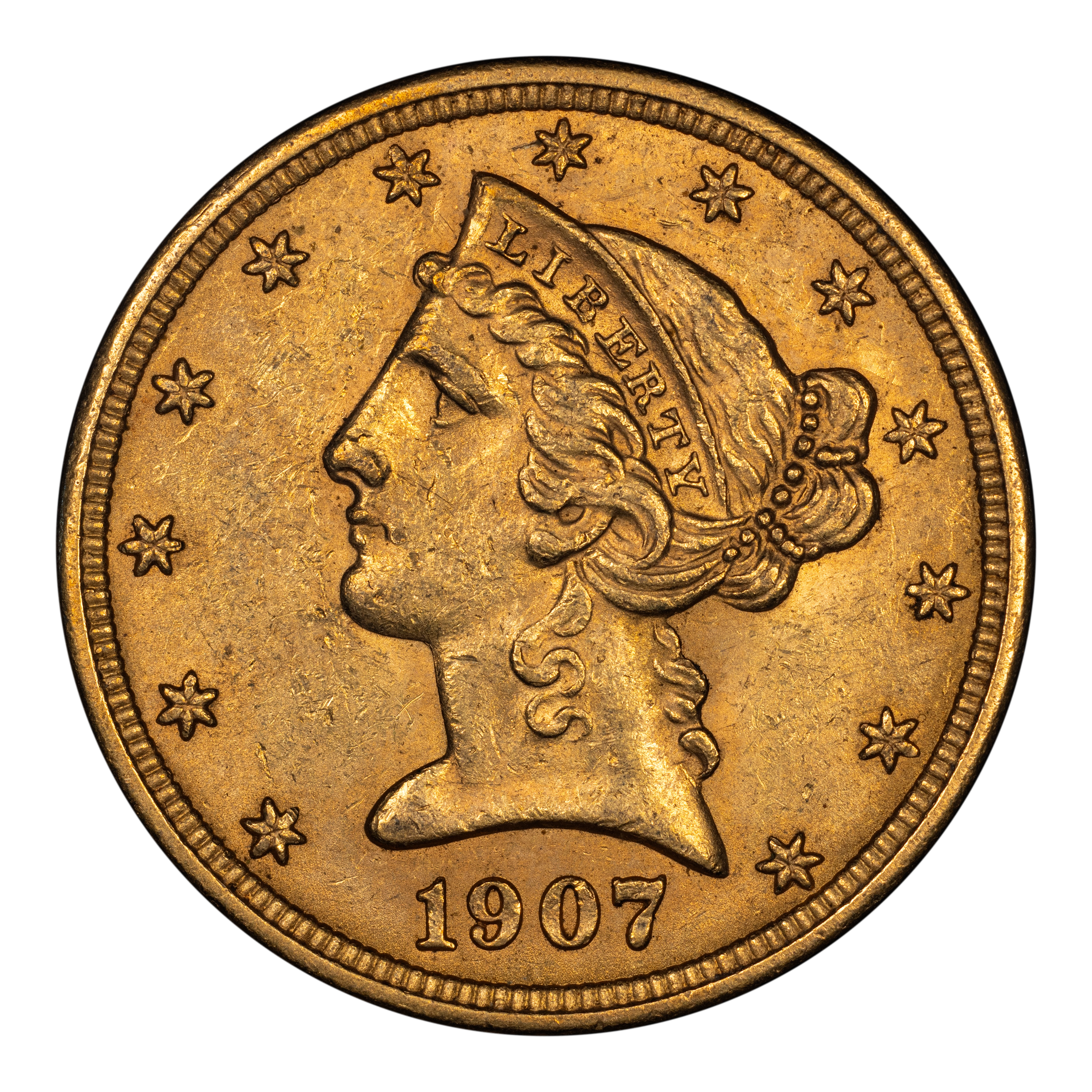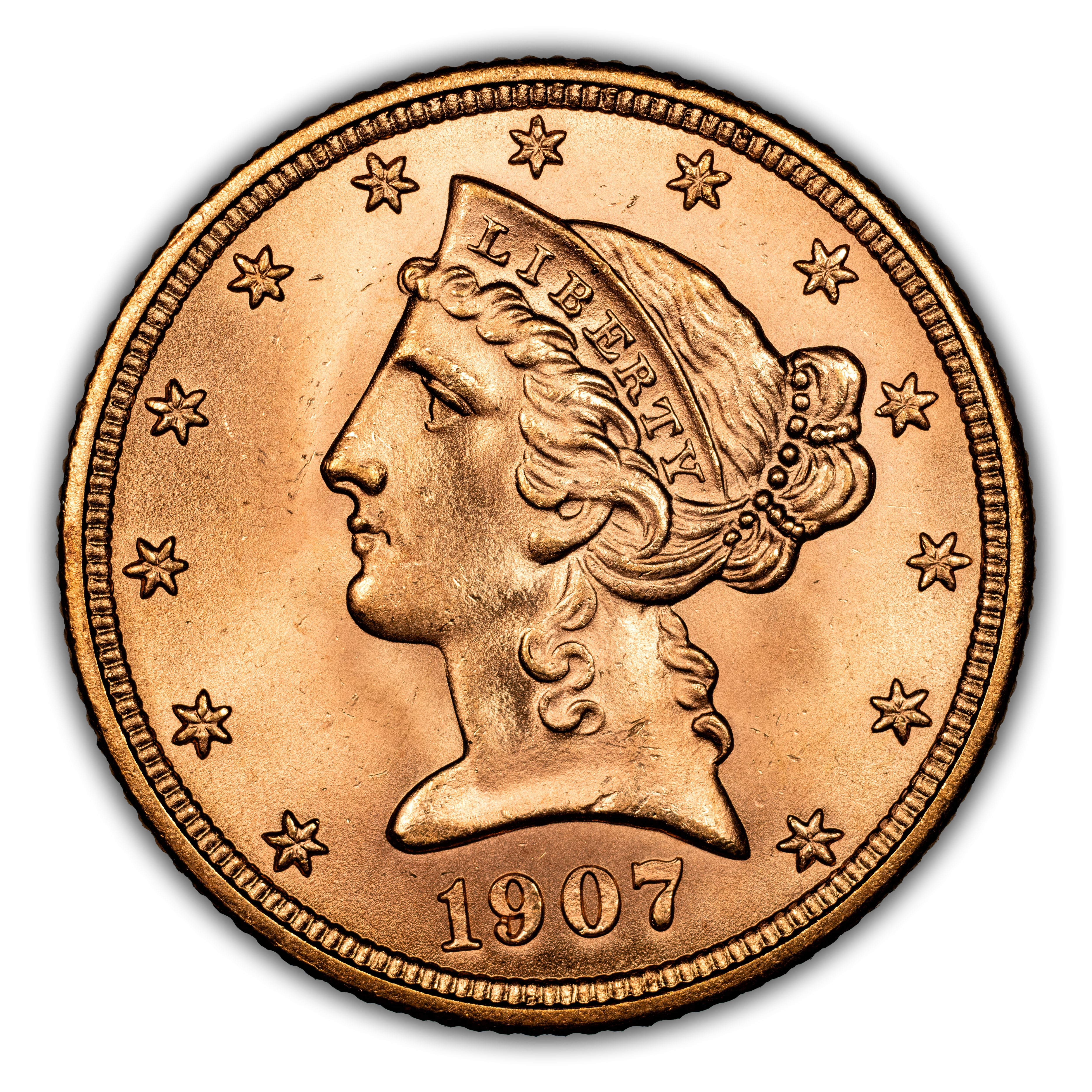 Reverse: Heraldic eagle holding arrows and branch in its claws is centered in the design with the words UNITED STATES OF AMERICA * FIVE D. around the periphery. Mintmark (if any) is located under the eagle's claws.