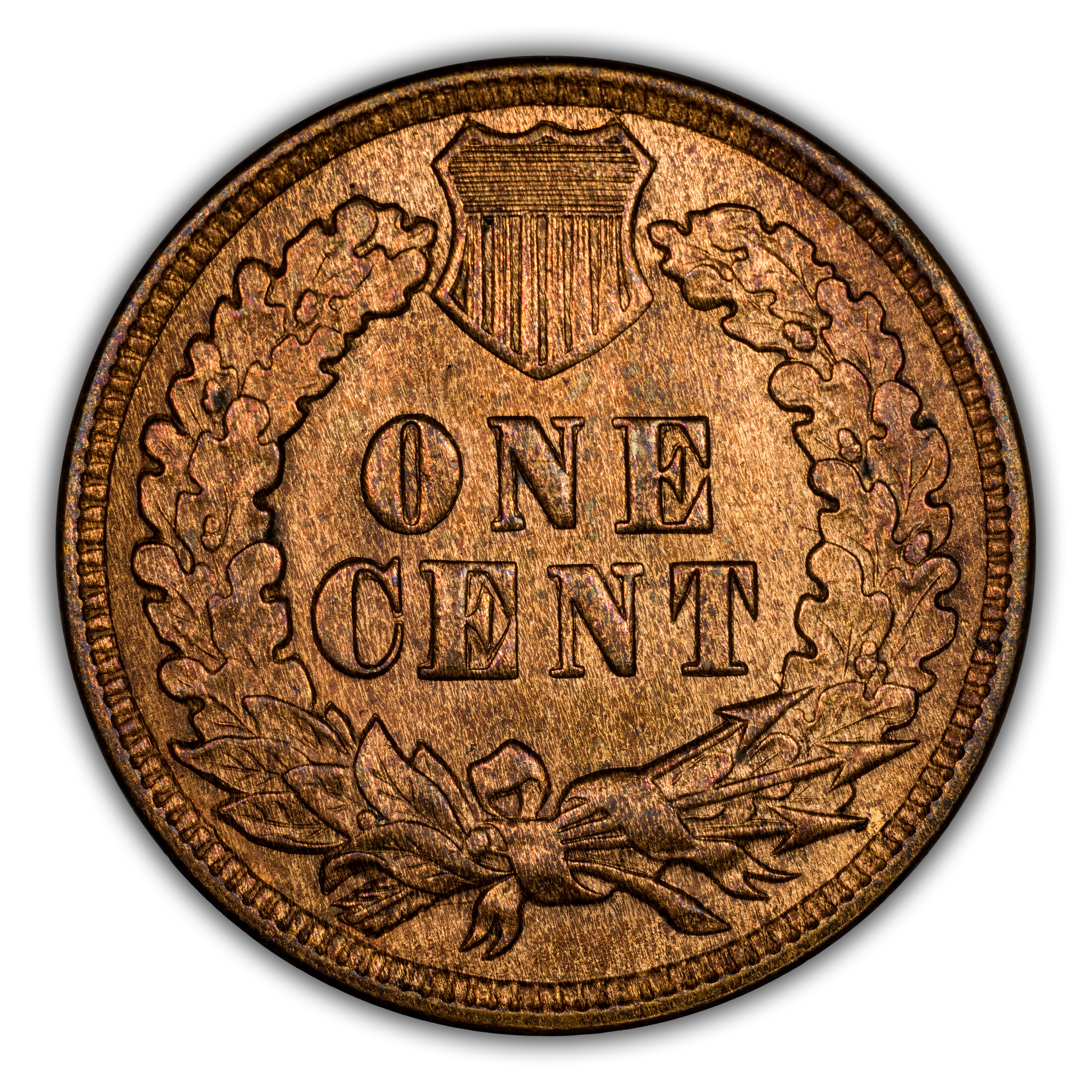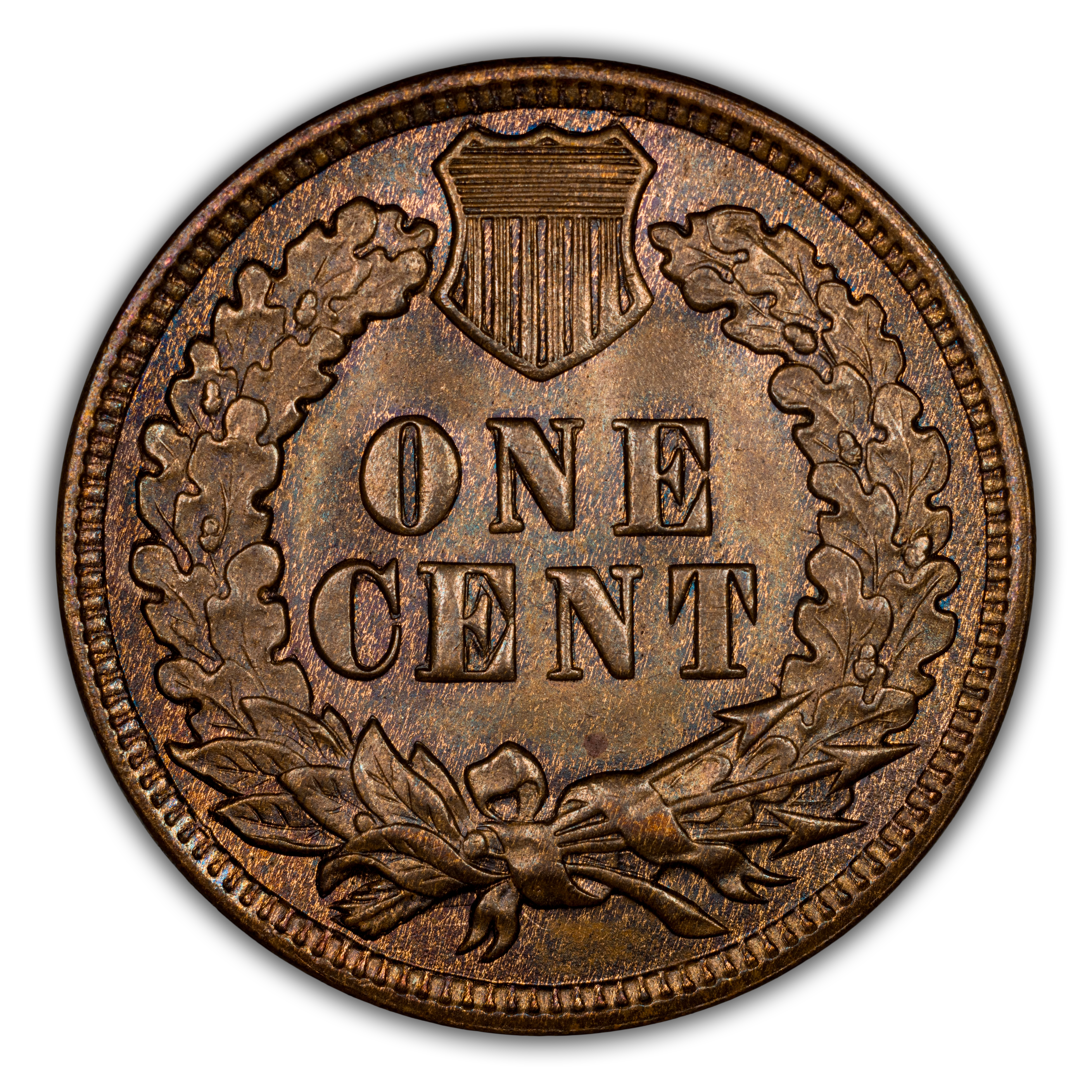 Reverse: The reverse bears the denomination of ONE CENT in the center surrounded by a wreath bearing a ribbon with arrows tied in at the bottom center.