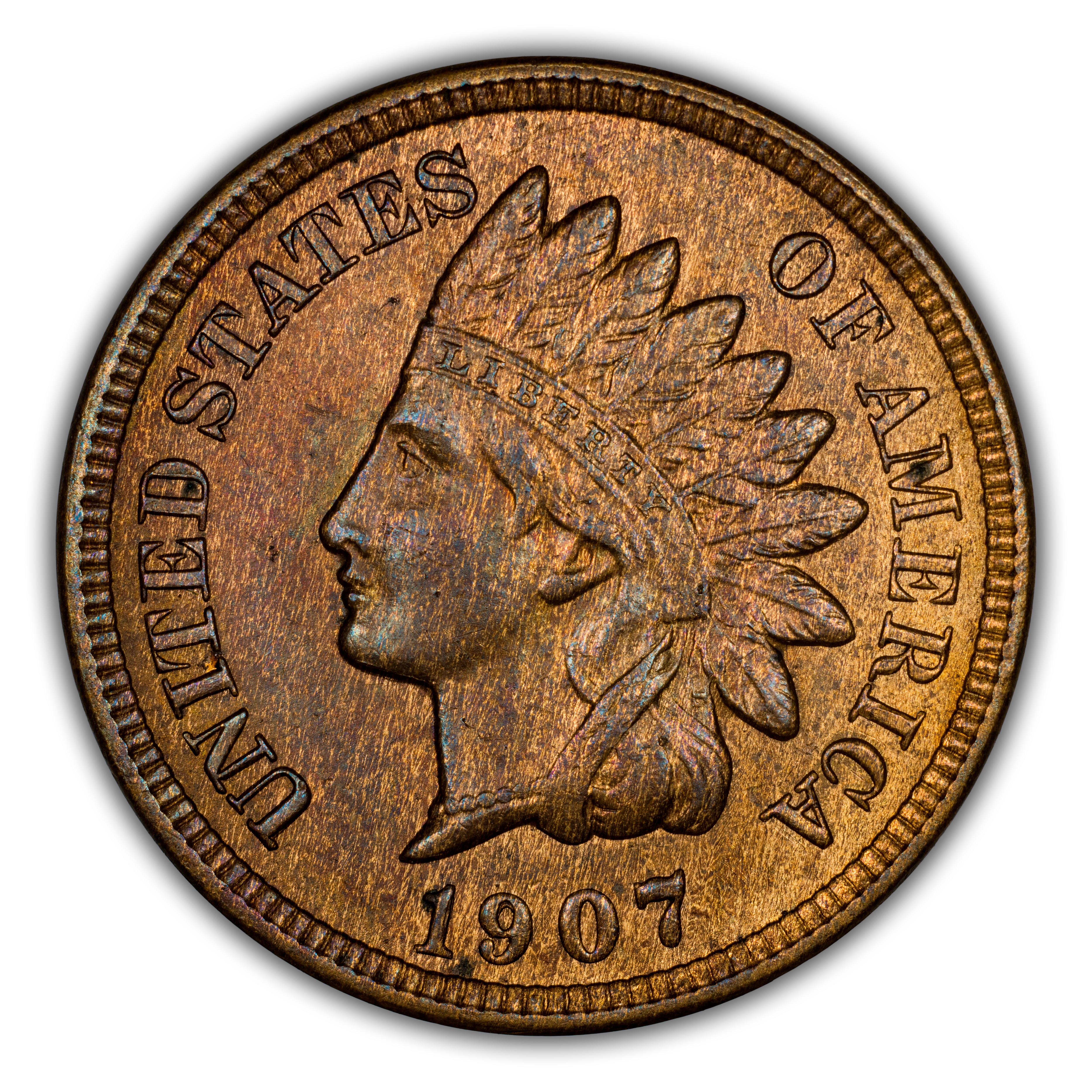 The 1907 Indian Cent is a common issue in the Indian Cent Series that would make the ultimate type coin because of its high mintage (over 100 million), accessibility and affordability. Circulated coins are extremely common and accessible. In order for uncirculated coins to be scarce and valuable there must be some, if not complete, red coloring and be in gem condition.