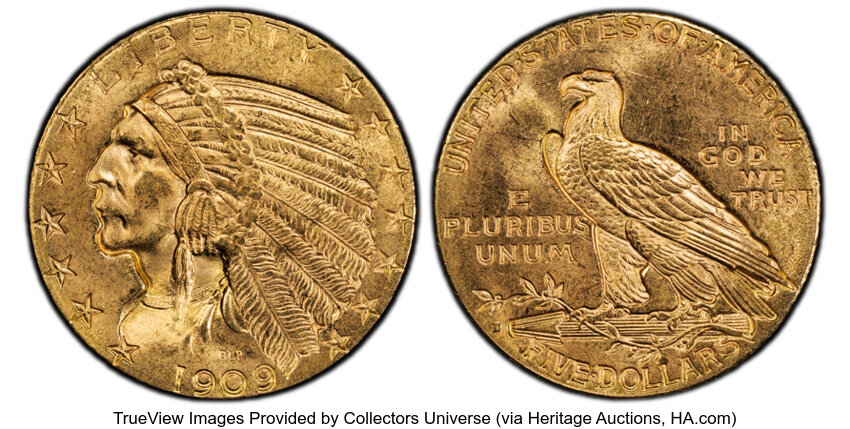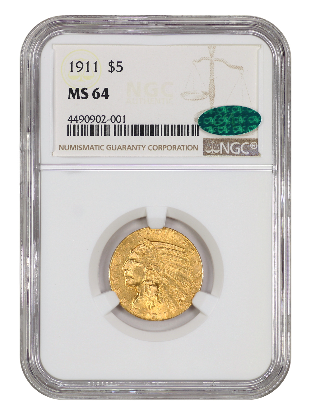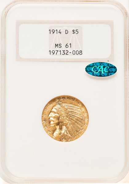 1908-D $5 PCGS/CAC MS63 - No Reserve!